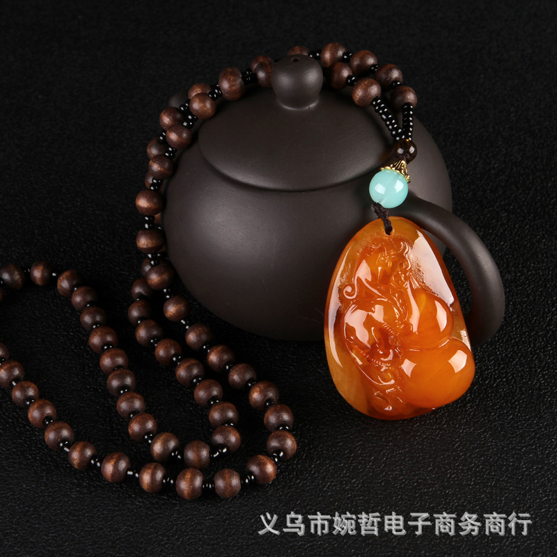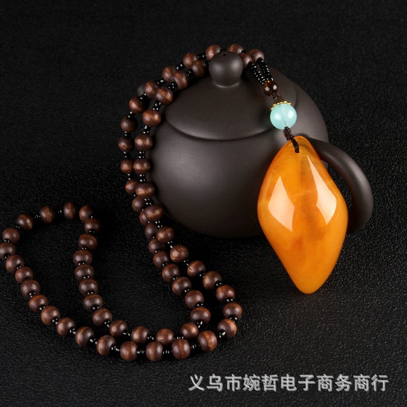 2020新款木珠链双色橘黄蜜蜡吊坠挂件毛衣链复古民族风长款项链女