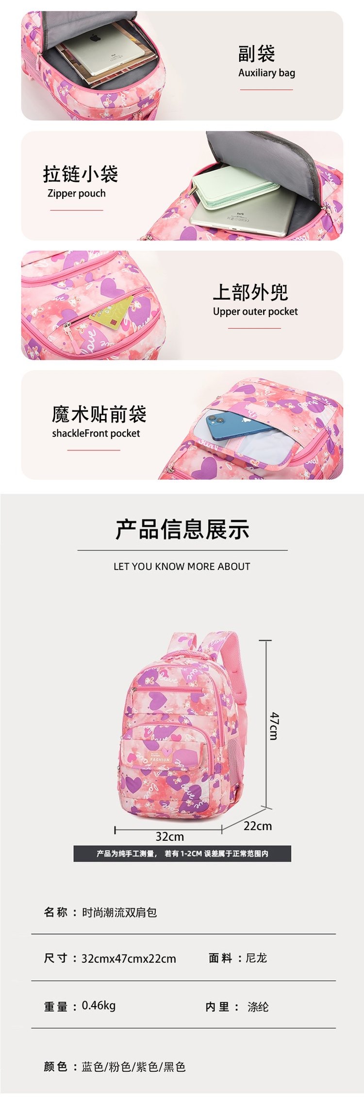 时尚潮流,双肩包让你更有型黑色均码紫色蓝色粉色男商务出行