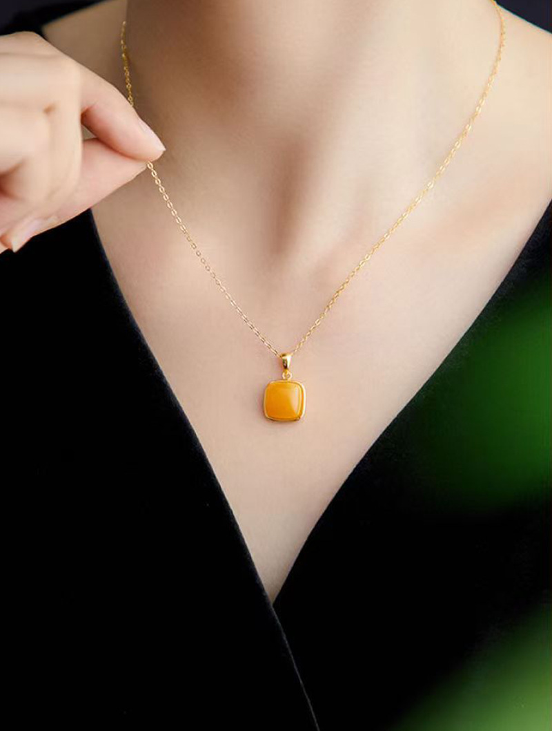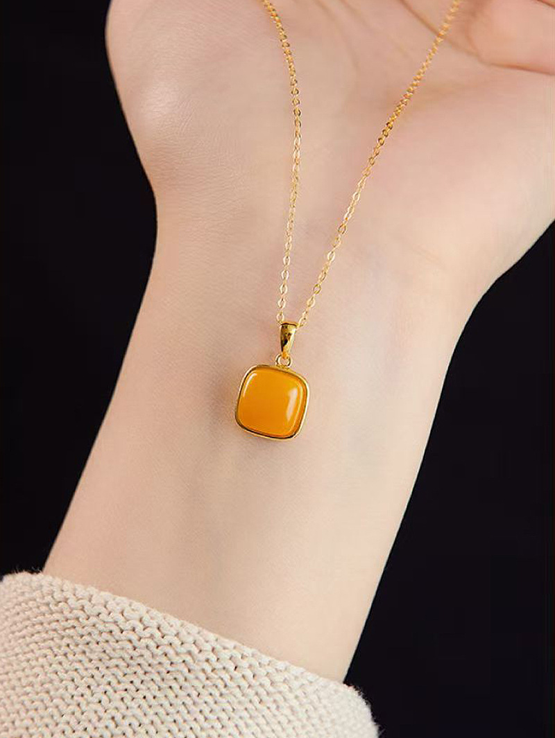 小红书爆款蜜蜡小方糖项链女复古轻奢简约几何方形吊坠一件代发
