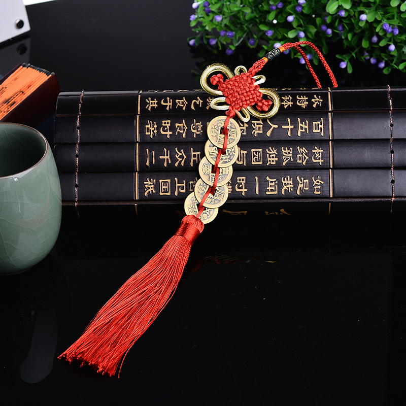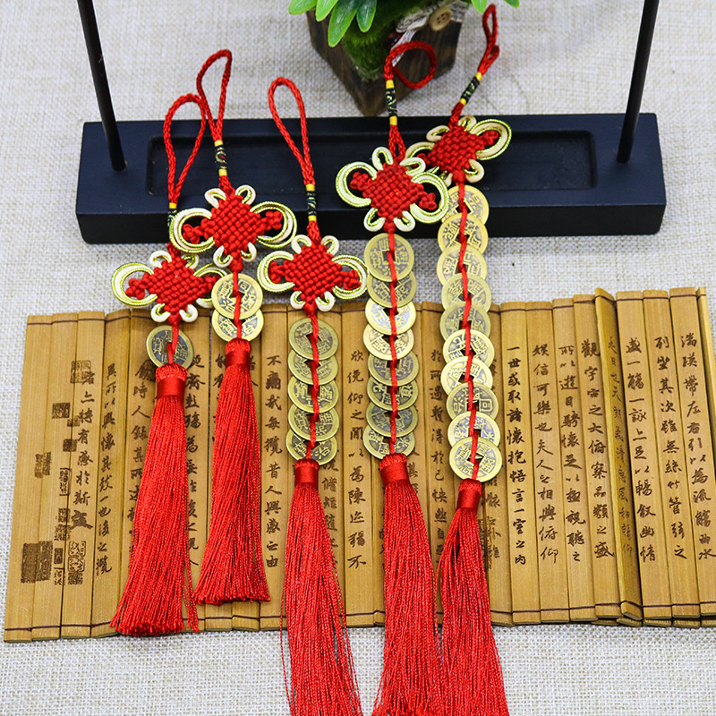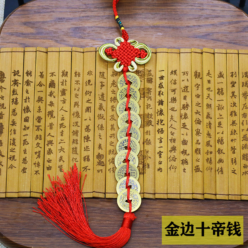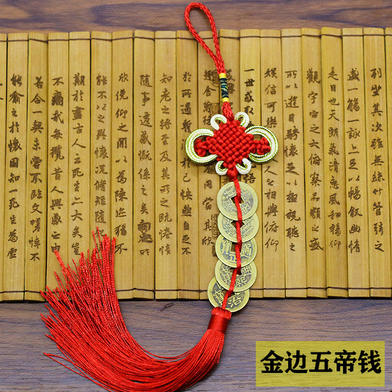 八盘金边结带五帝复刻真铜钱中国结古铜钱民间编汽车挂件饰品批发