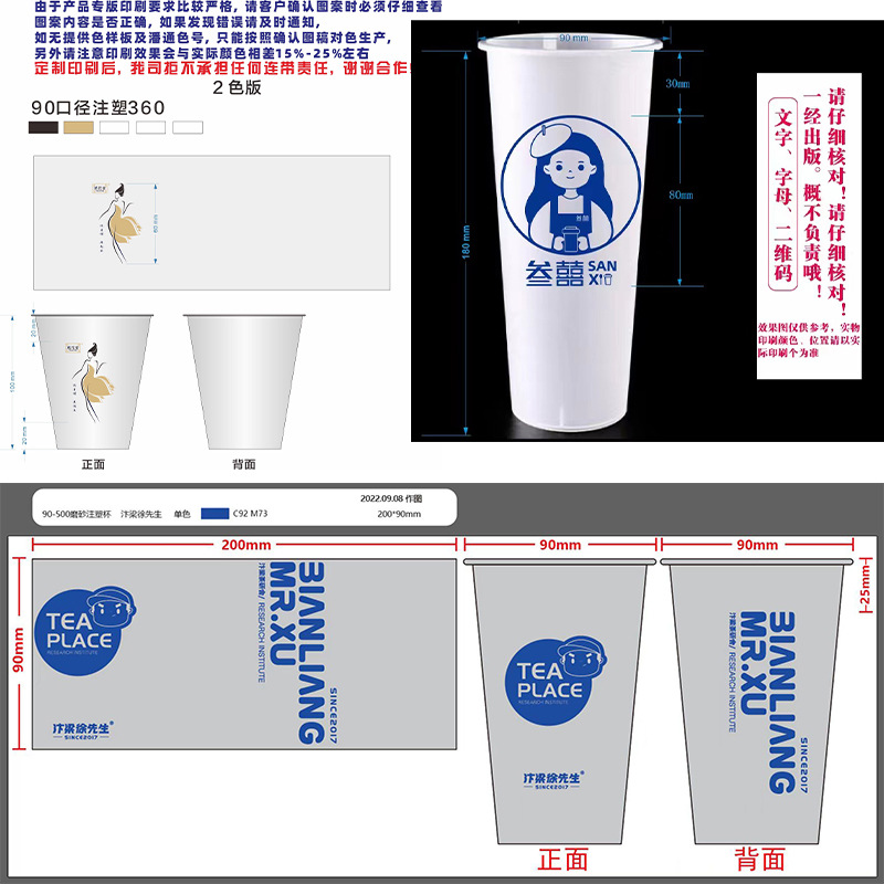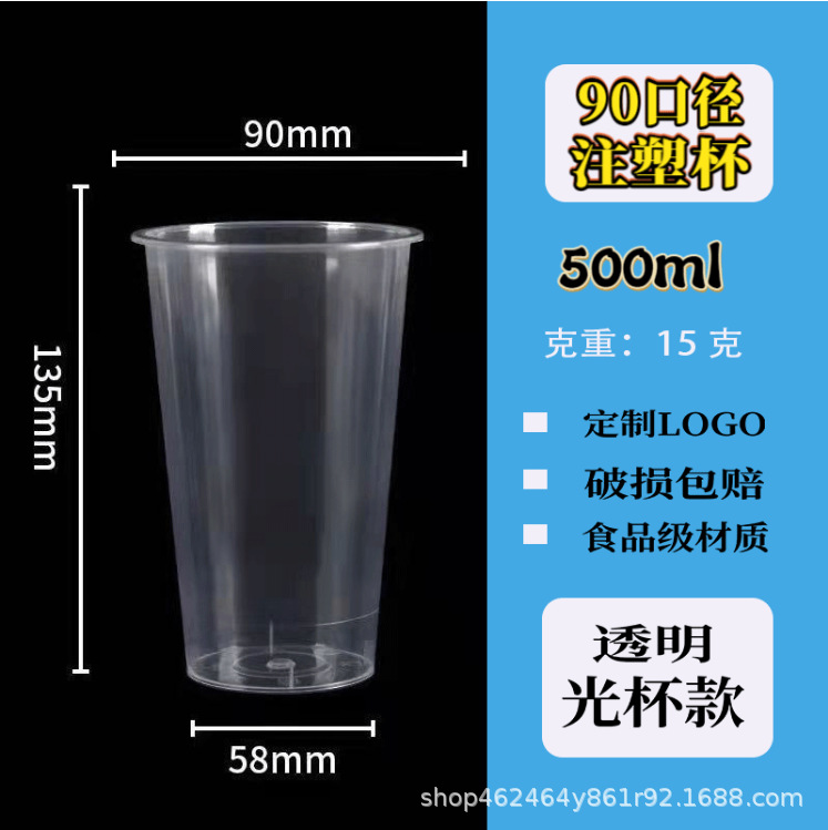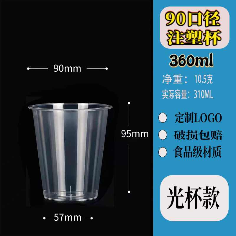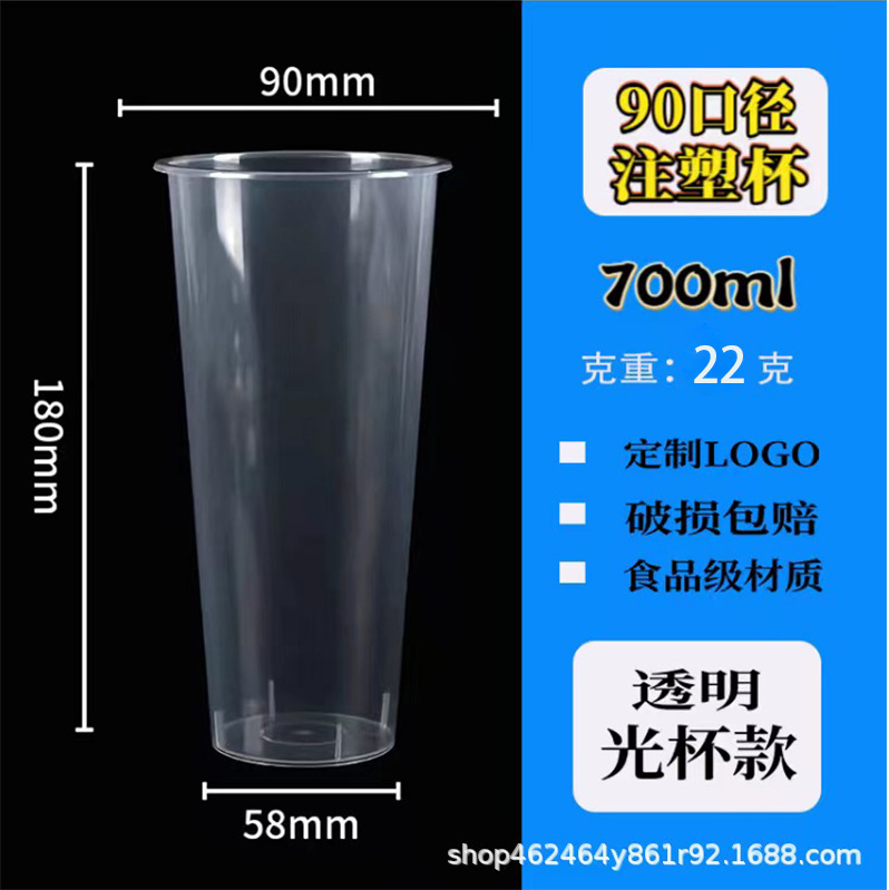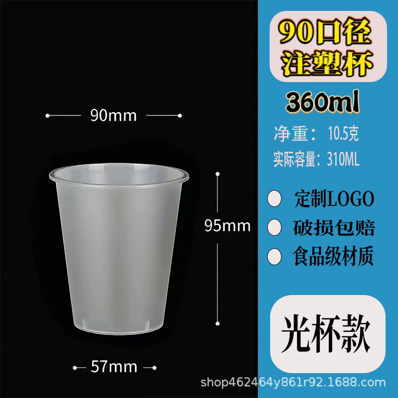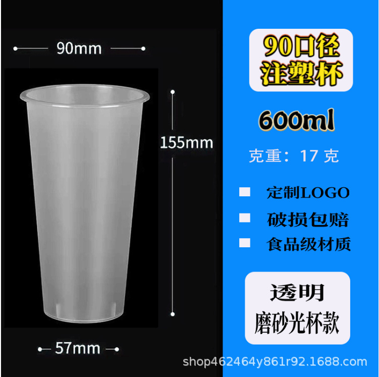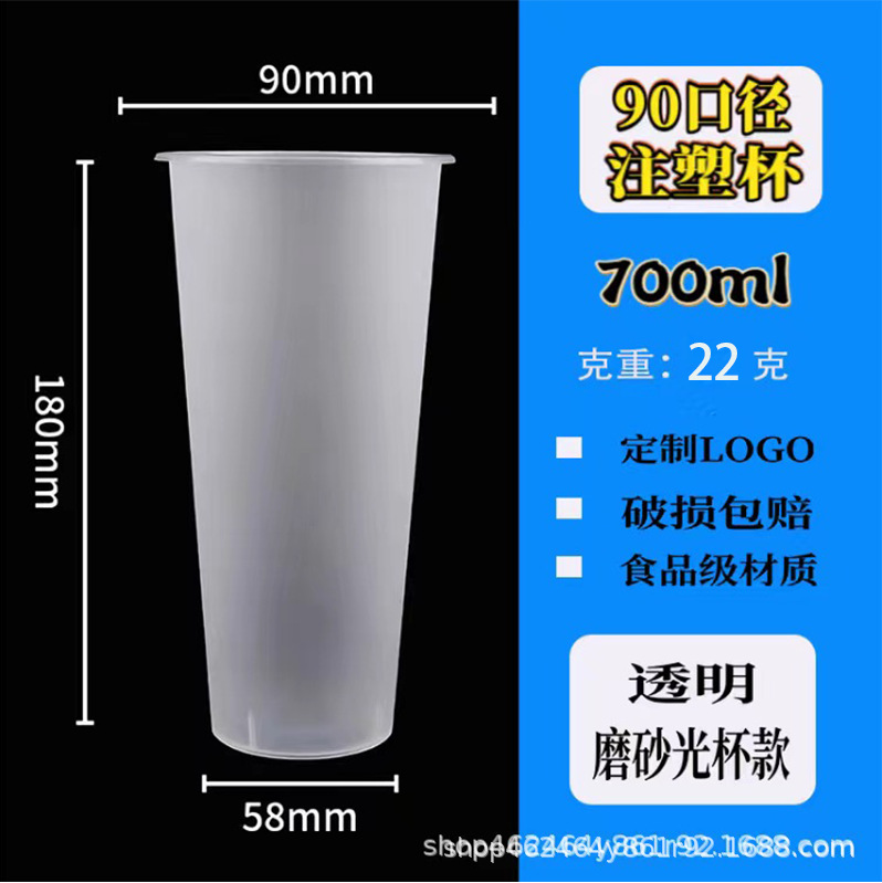 90口径注塑磨砂一次性饮料饮品奶茶杯塑料果汁打包杯子定制印logo