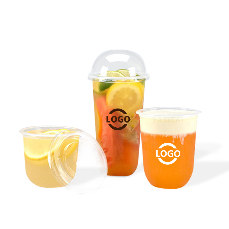 工厂pet89U胖胖冷饮杯一次性咖啡杯带盖子塑料高透圆底奶茶杯现货