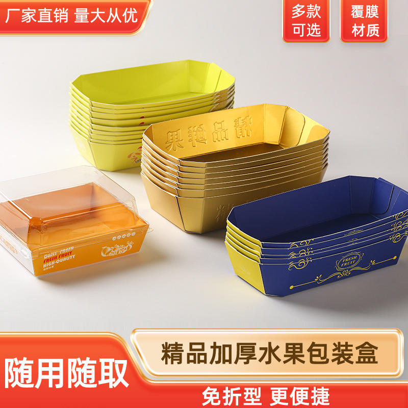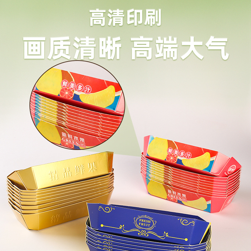 一次性水果盒精品船型水果托盘金色打包盒车厘子葡萄陈列包装纸盒