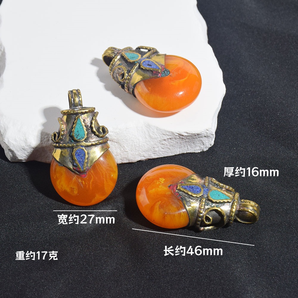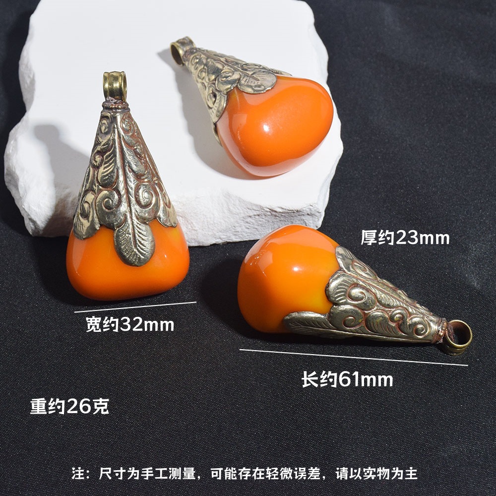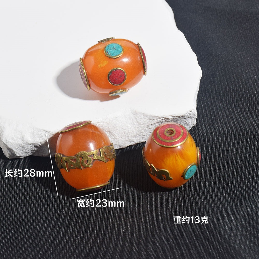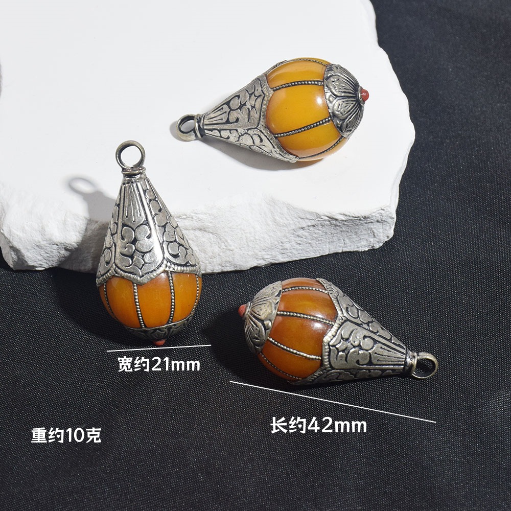 复古尼泊尔老蜜蜡吊坠单坠配件女 DIY蜜蜡桶珠散珠子文玩手串配珠