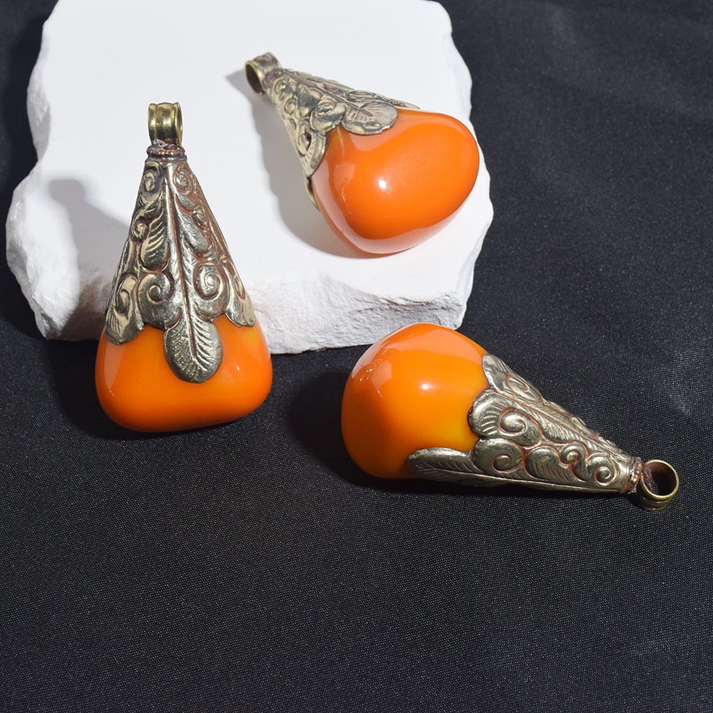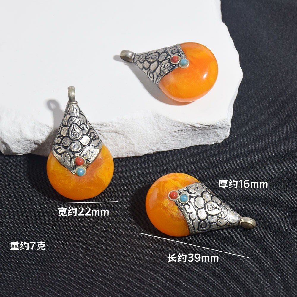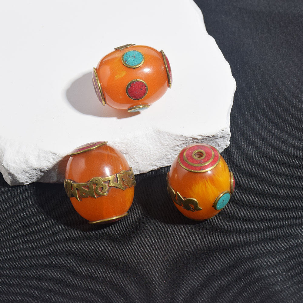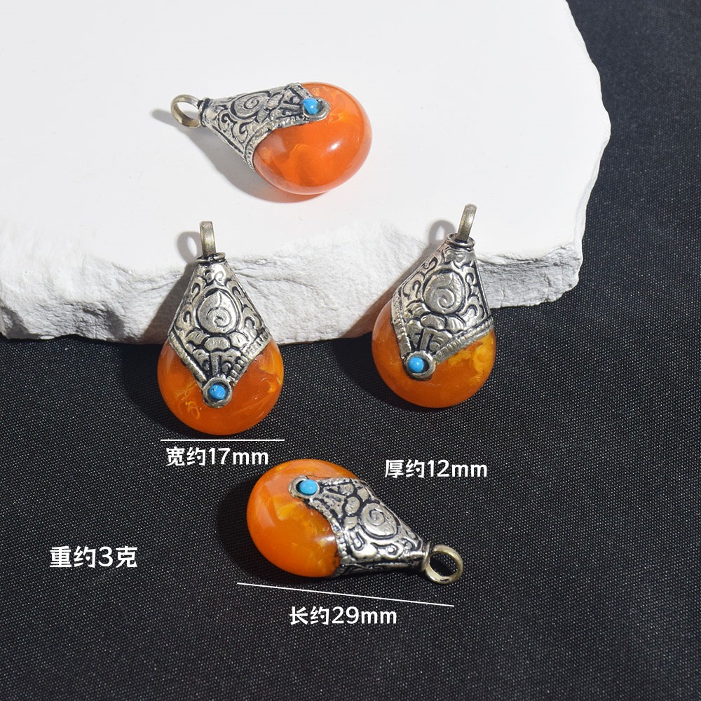 复古尼泊尔老蜜蜡吊坠单坠配件女 DIY蜜蜡桶珠散珠子文玩手串配珠