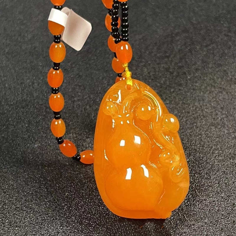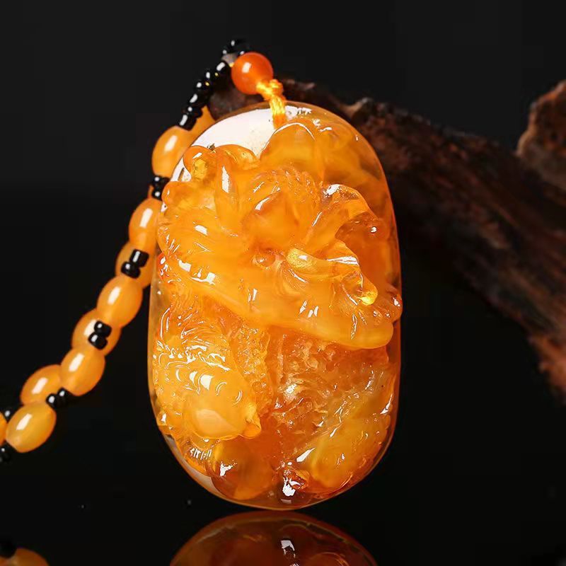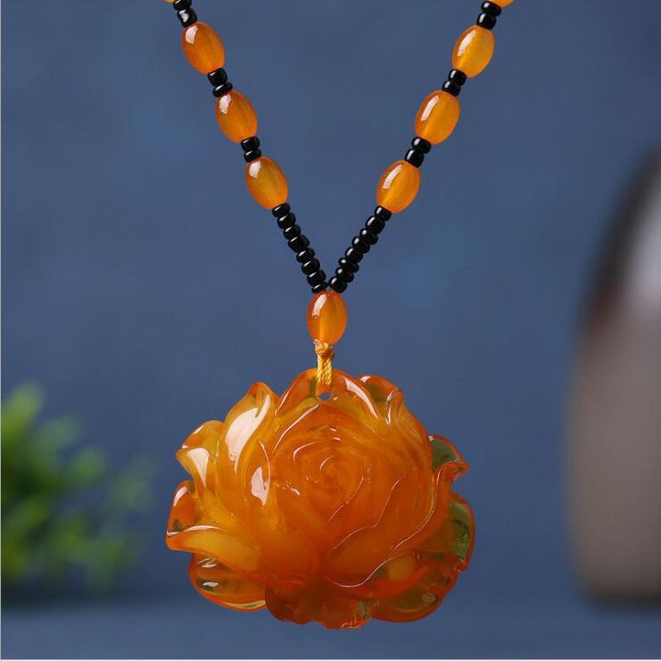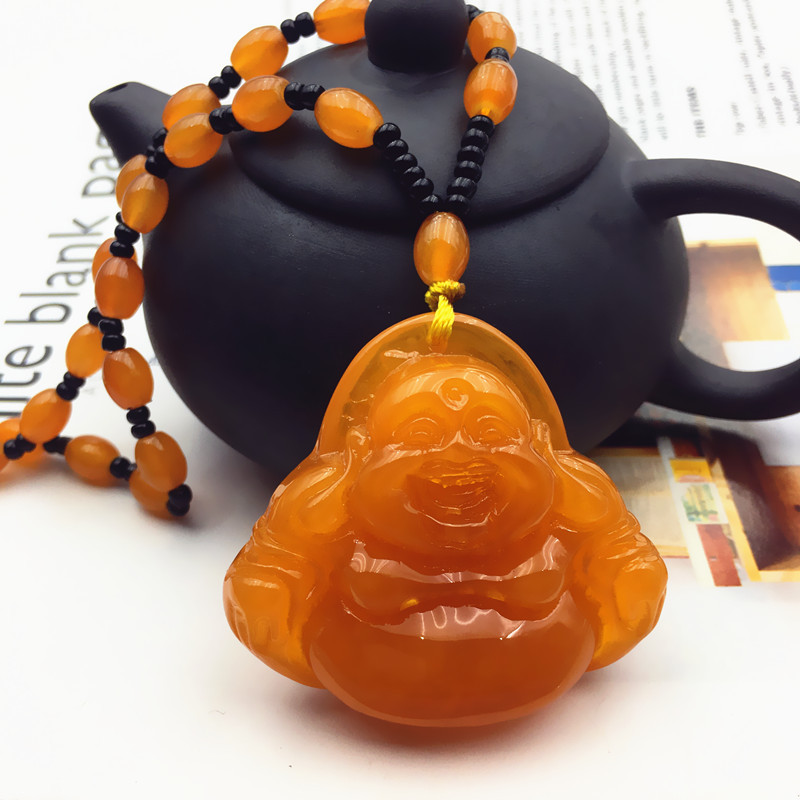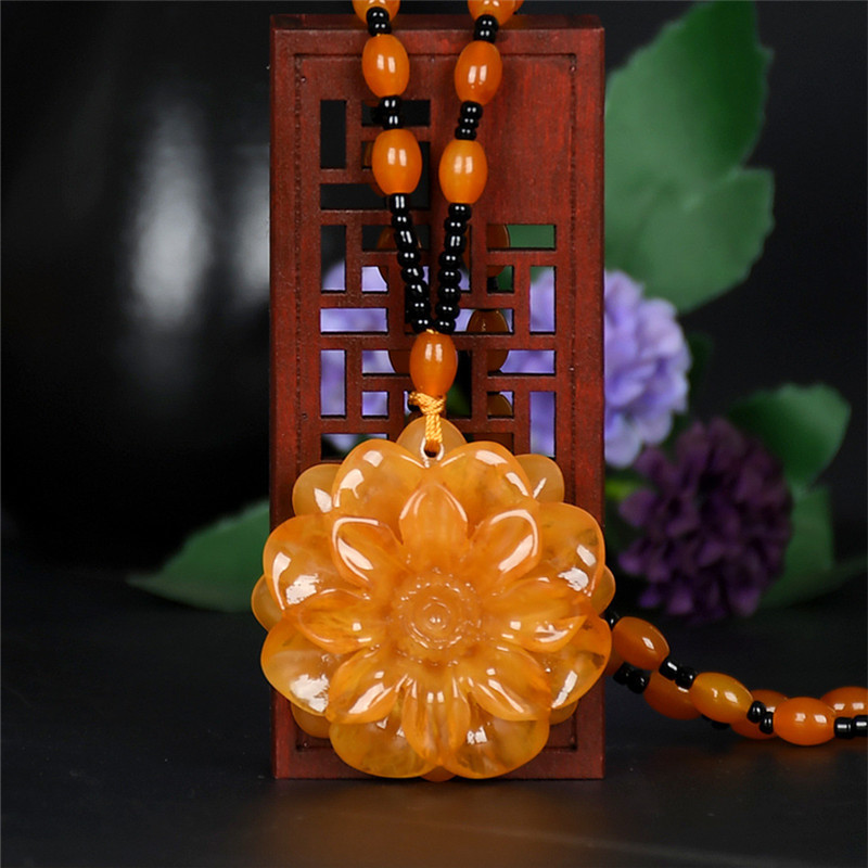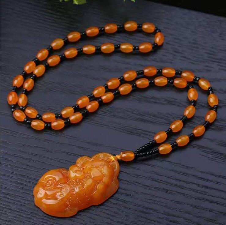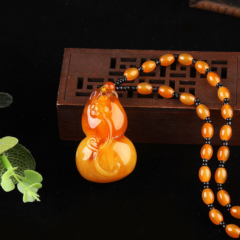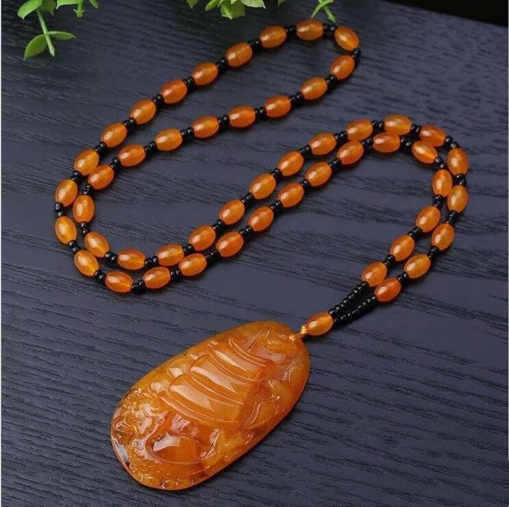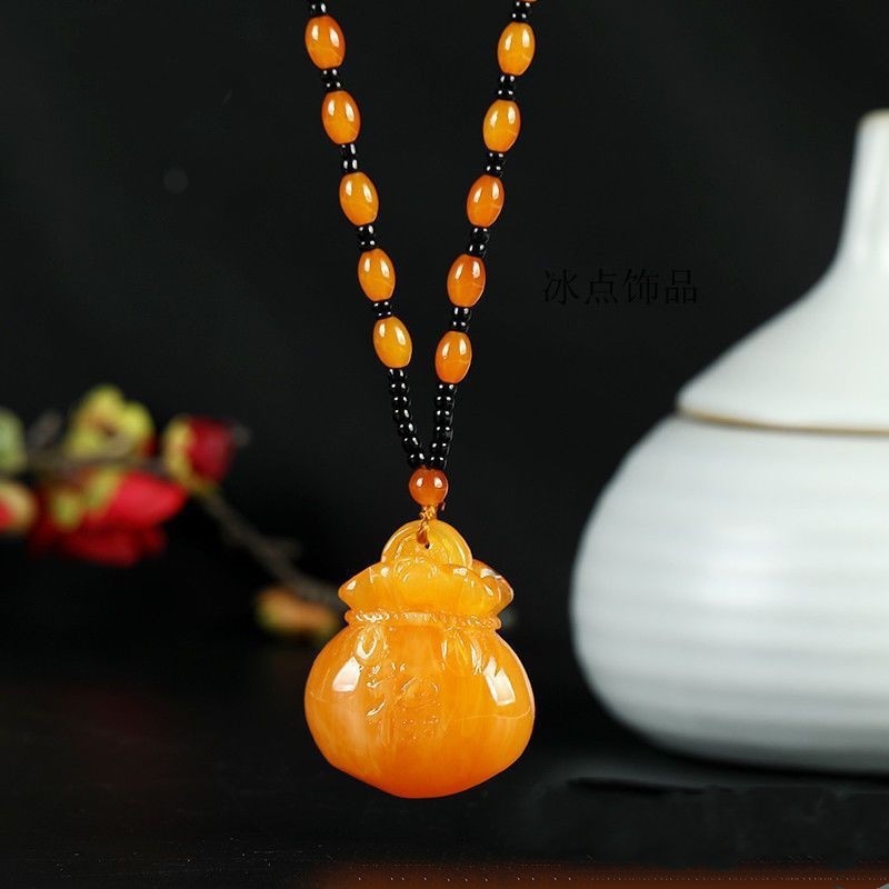 仿蜜蜡吊坠长款水滴民族风复古琥珀老蜡项链百搭配饰品毛衣链挂坠