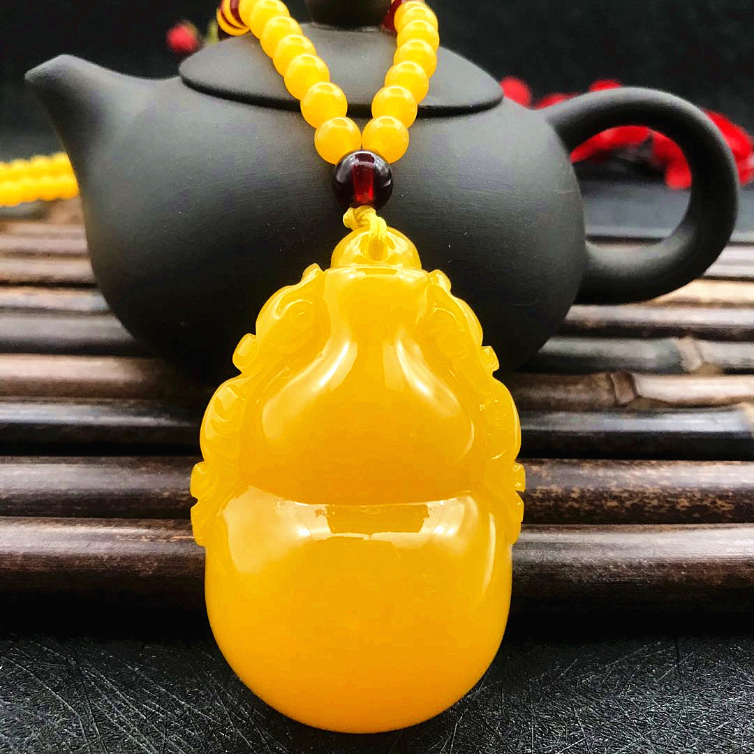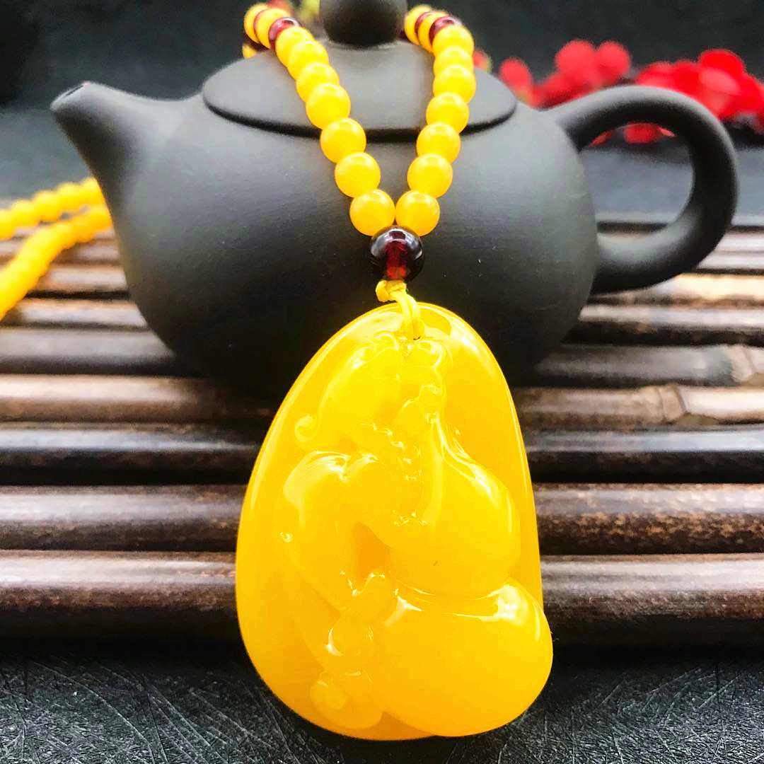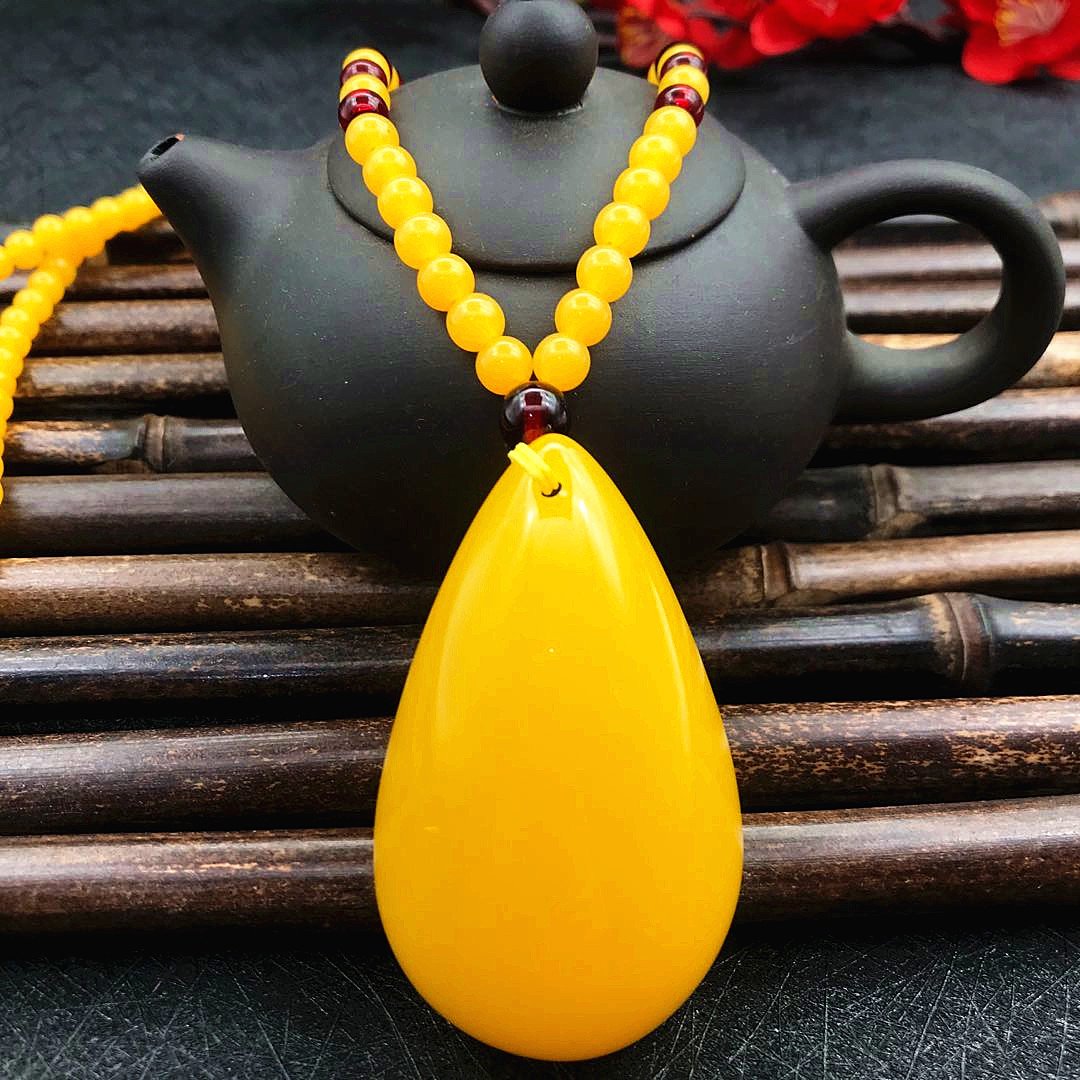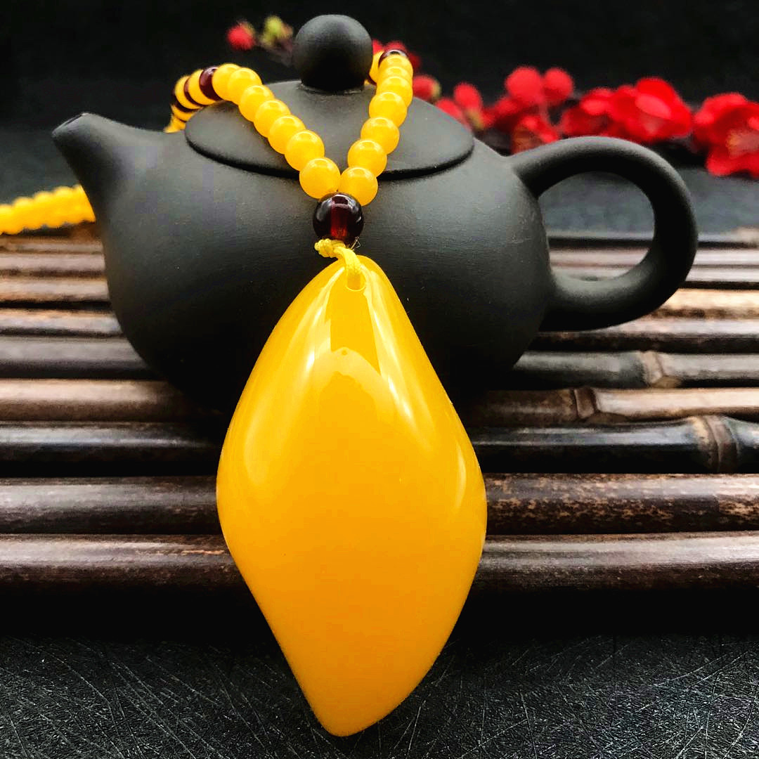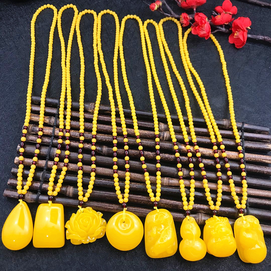 厂家直供鸡油黄二代蜜蜡原创百搭多款式吊坠项链毛衣链厂家批发