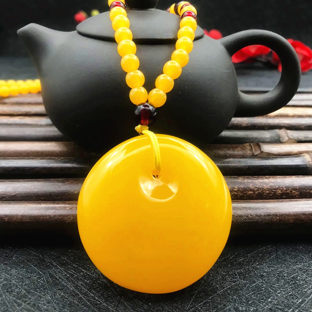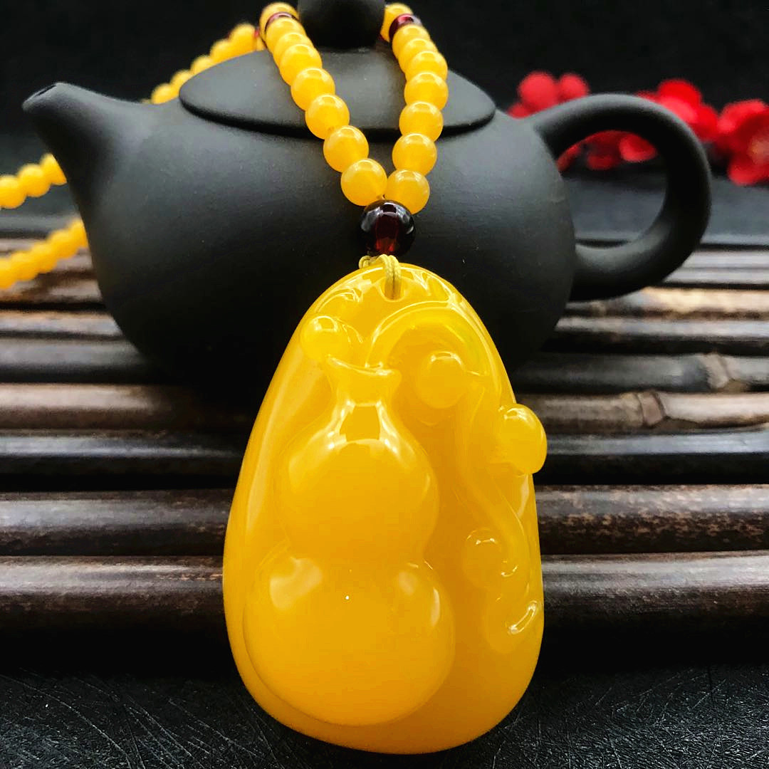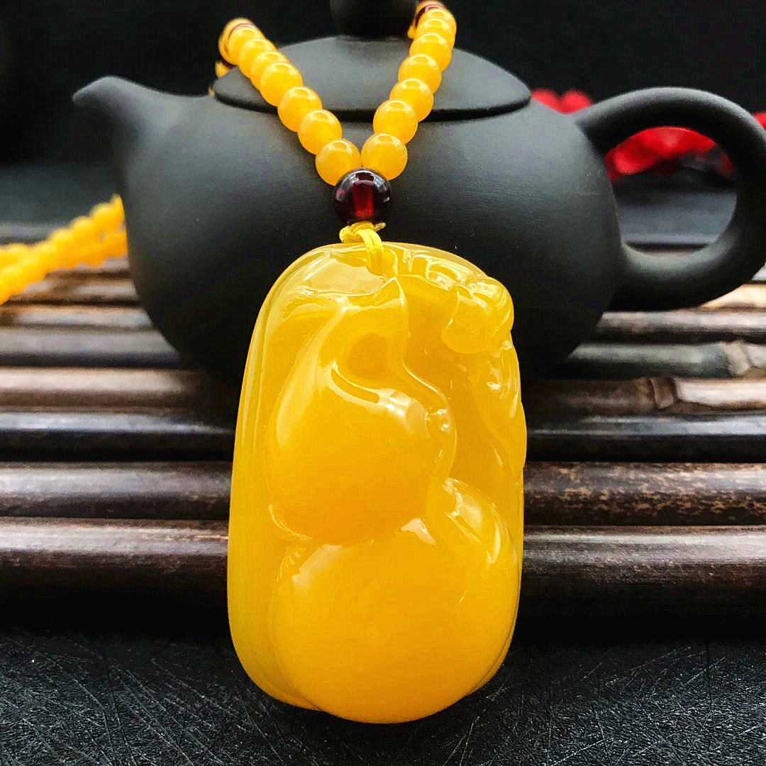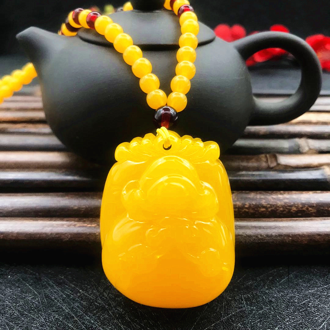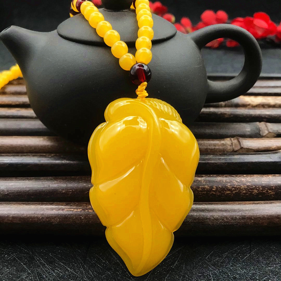 厂家直供鸡油黄二代蜜蜡原创百搭多款式吊坠项链毛衣链厂家批发