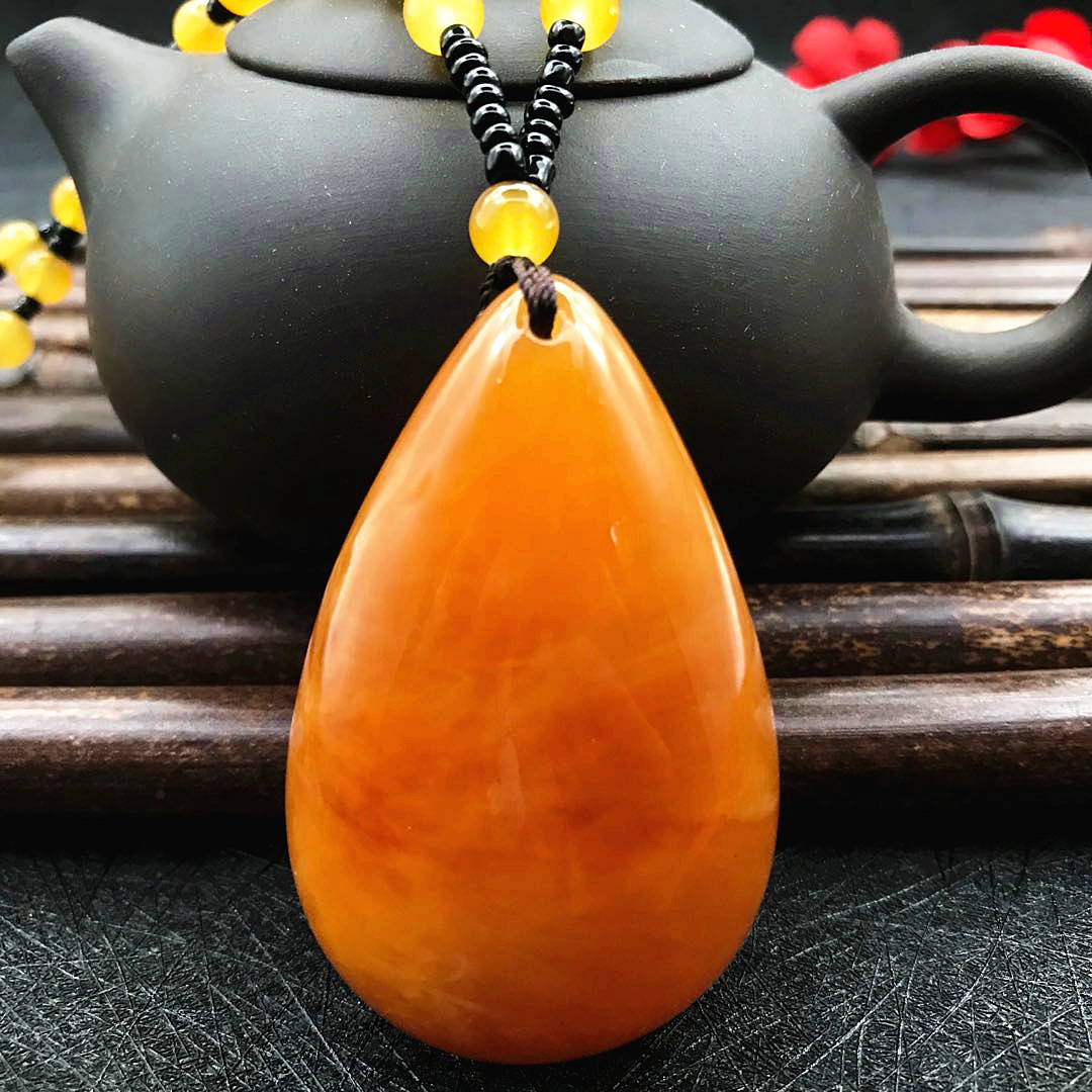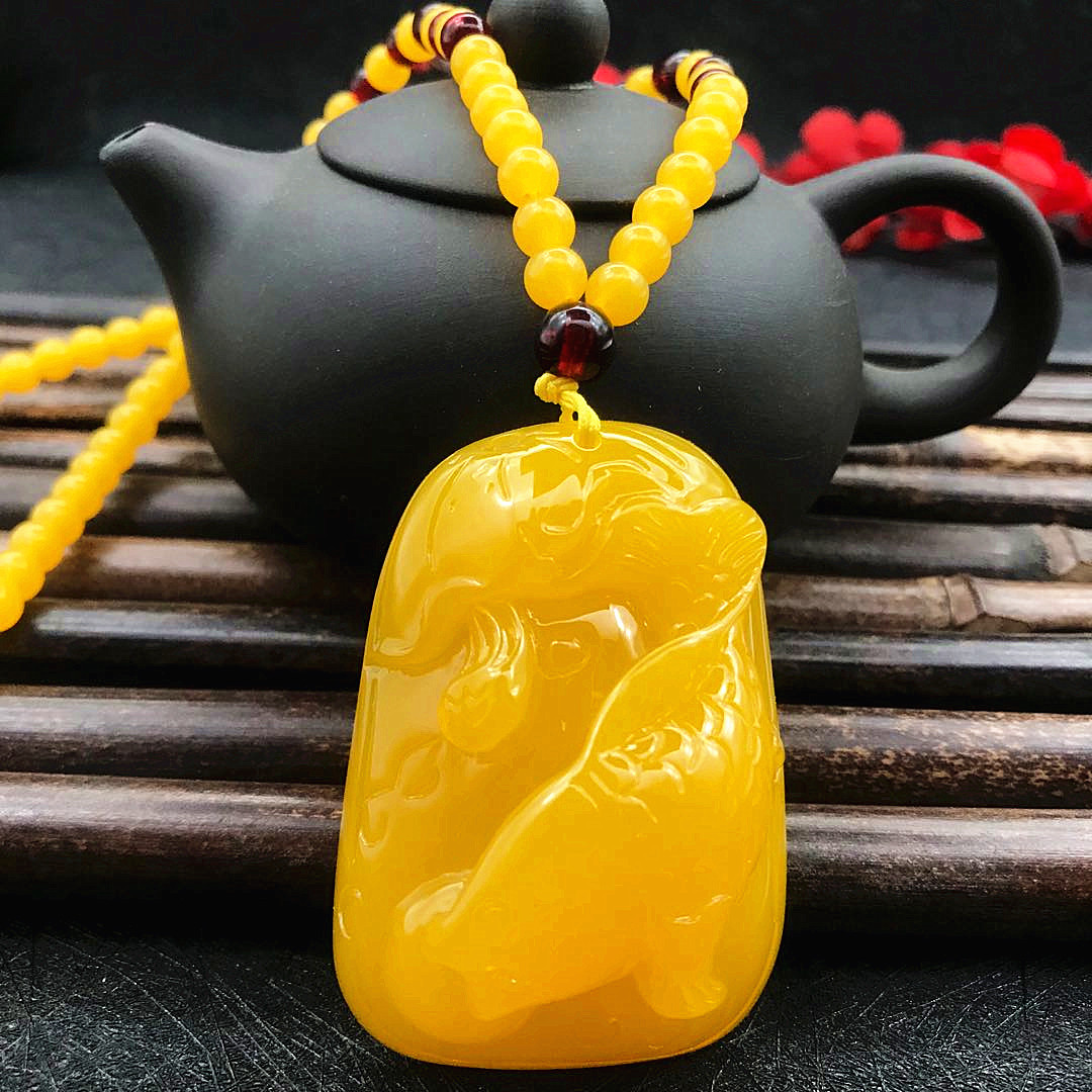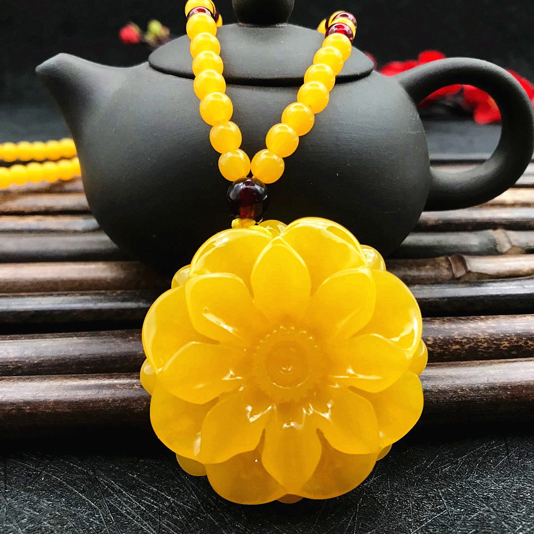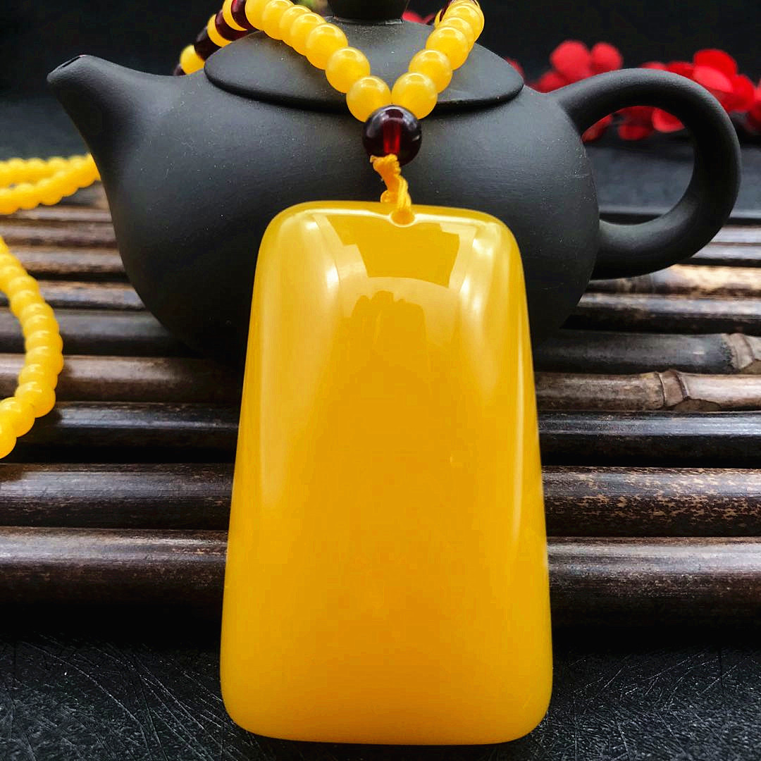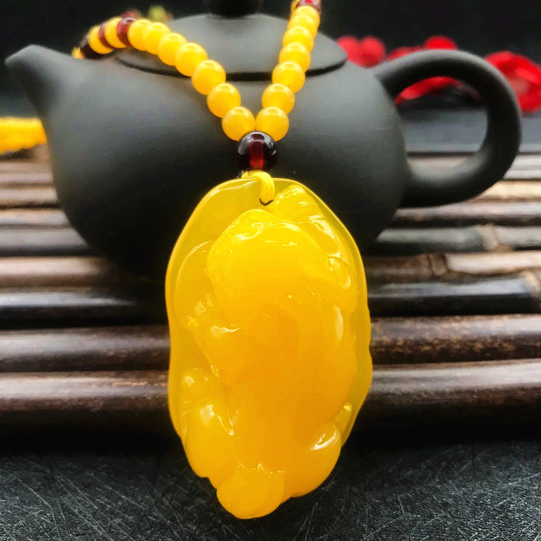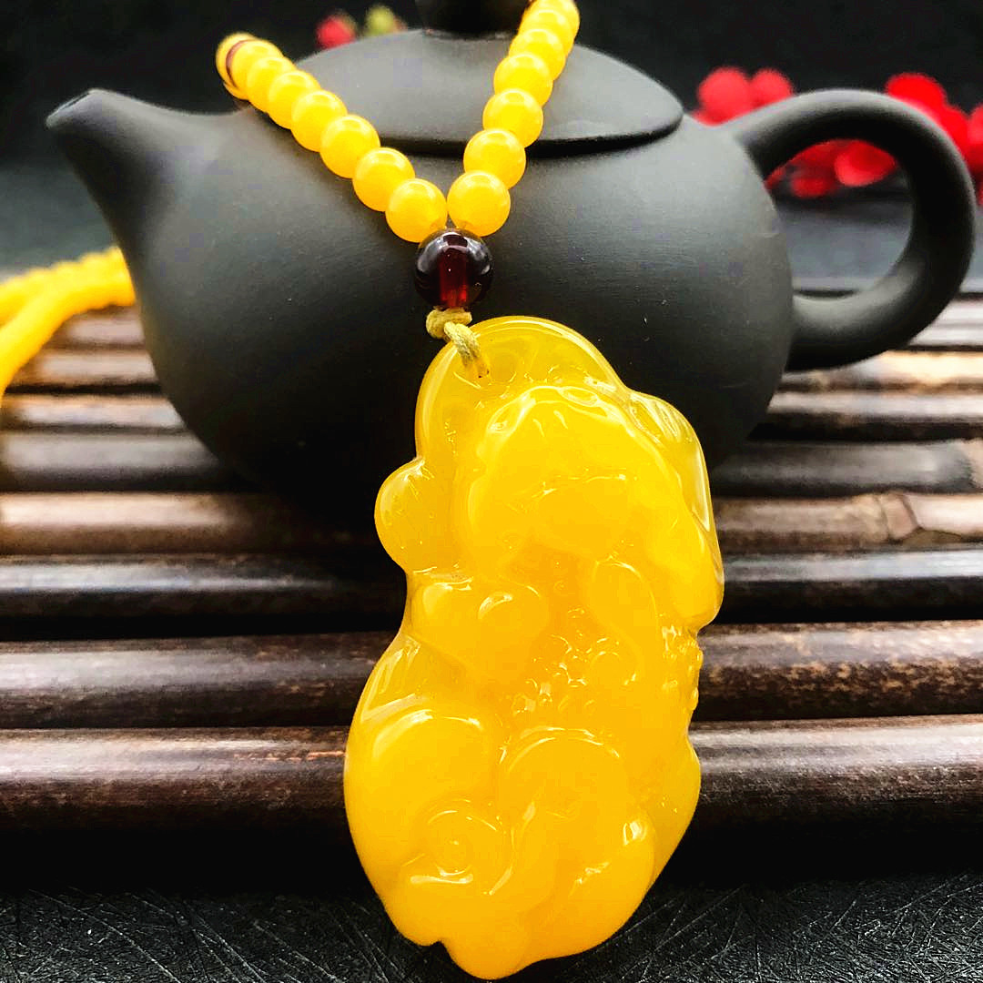 厂家直供鸡油黄二代蜜蜡原创百搭多款式吊坠项链毛衣链厂家批发