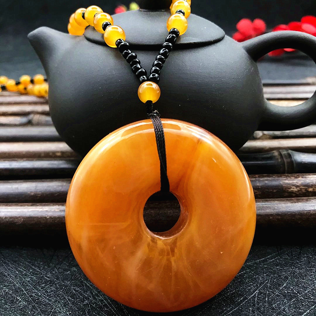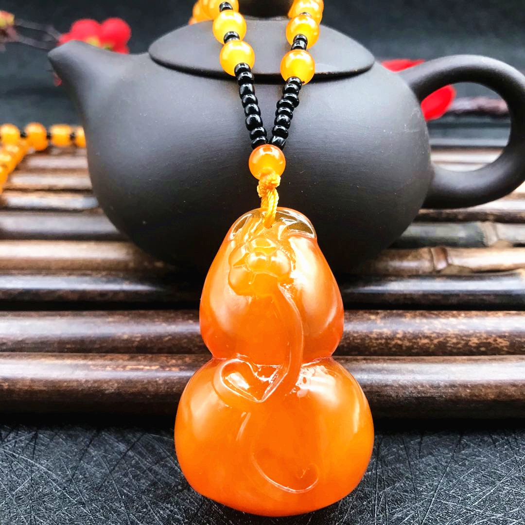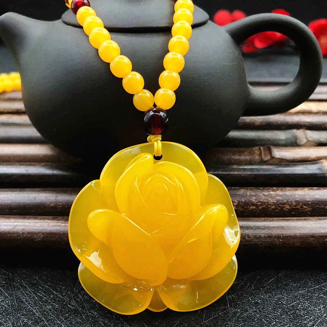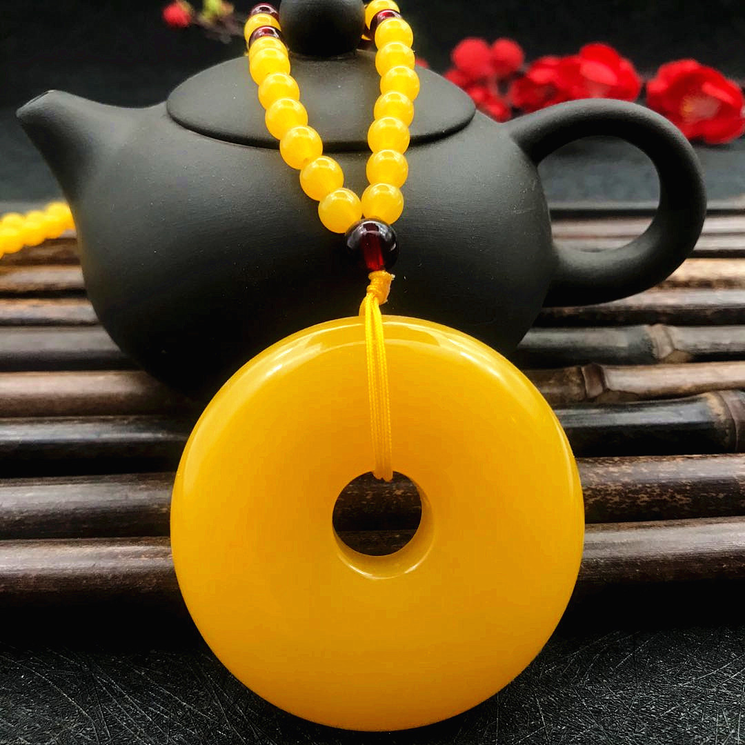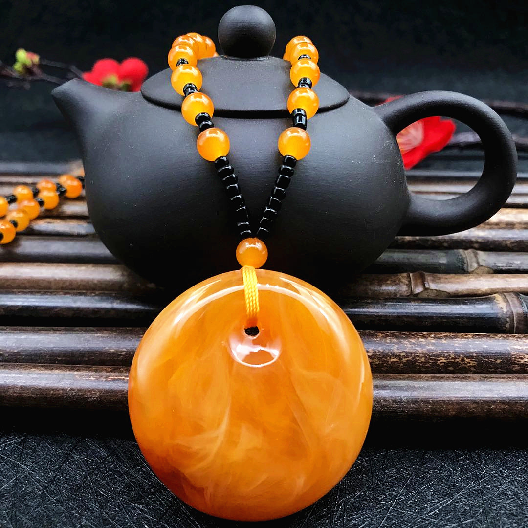 厂家直供鸡油黄二代蜜蜡原创百搭多款式吊坠项链毛衣链厂家批发