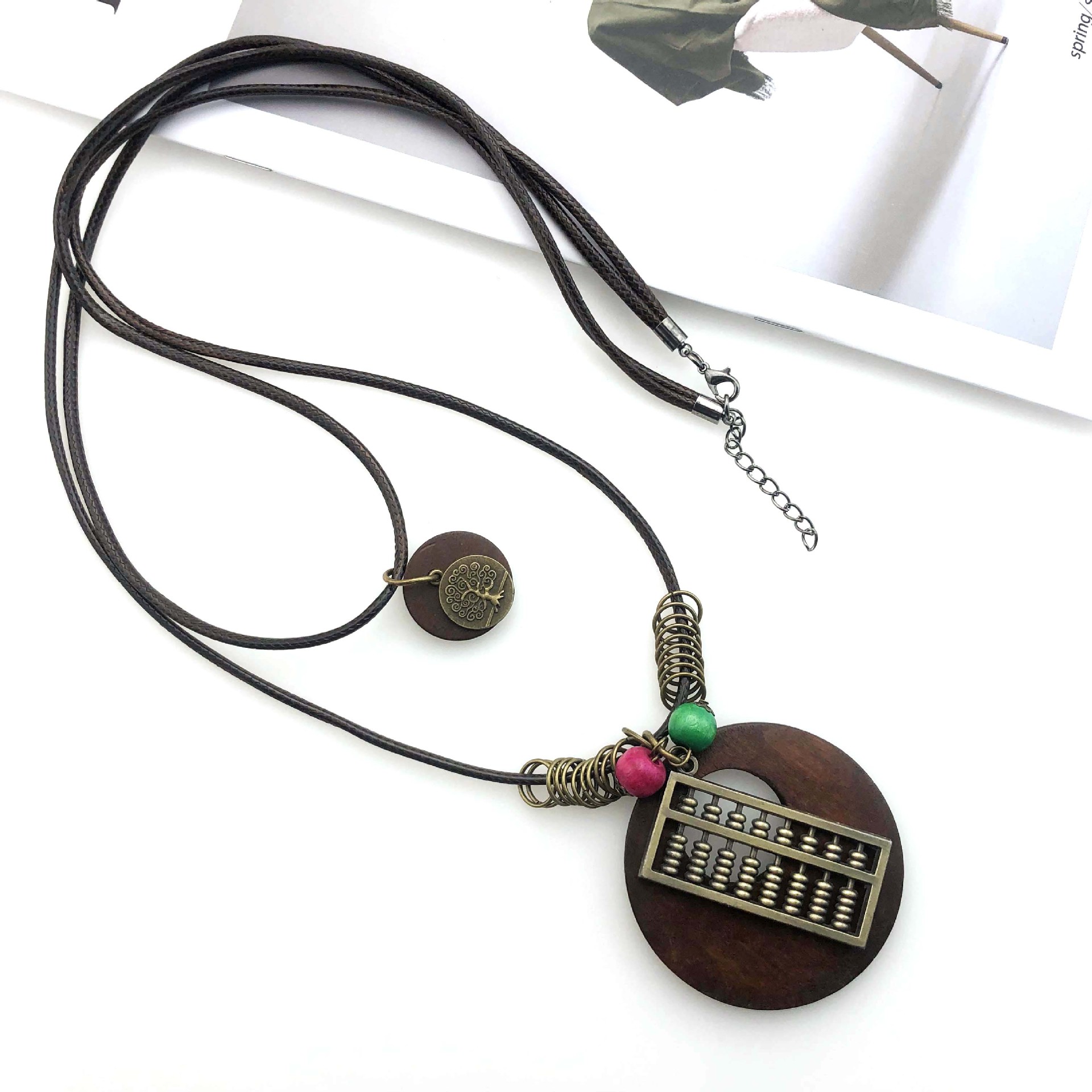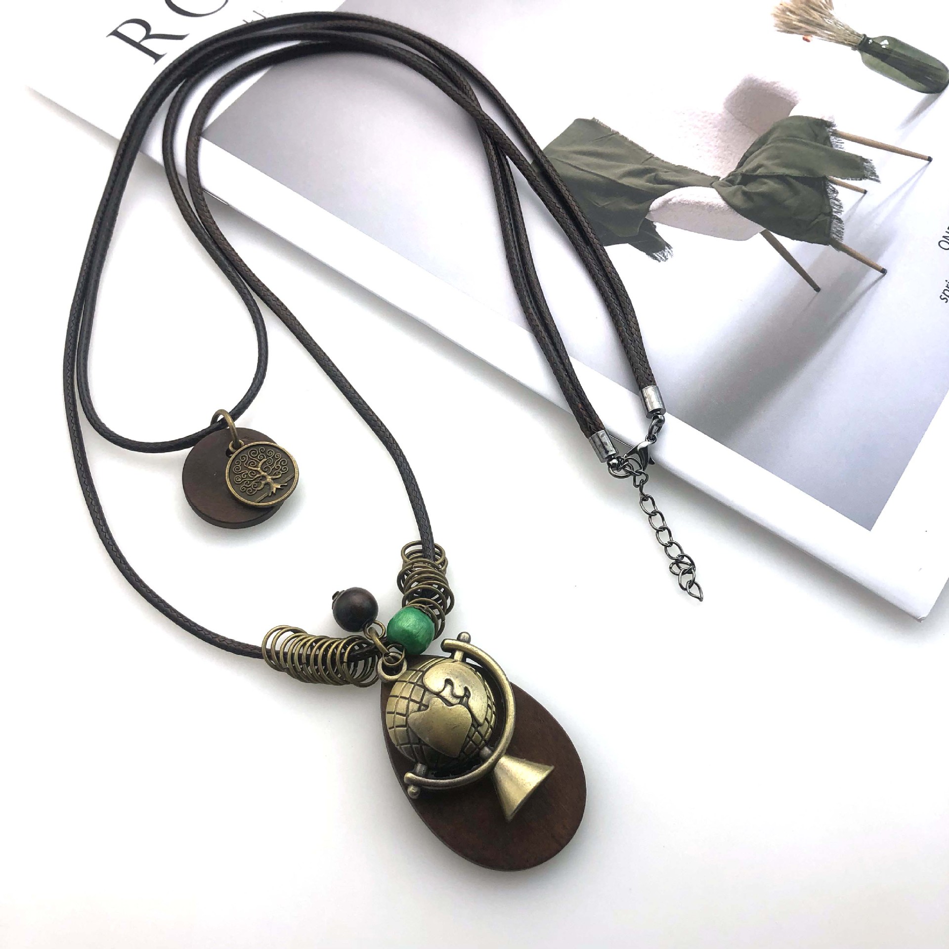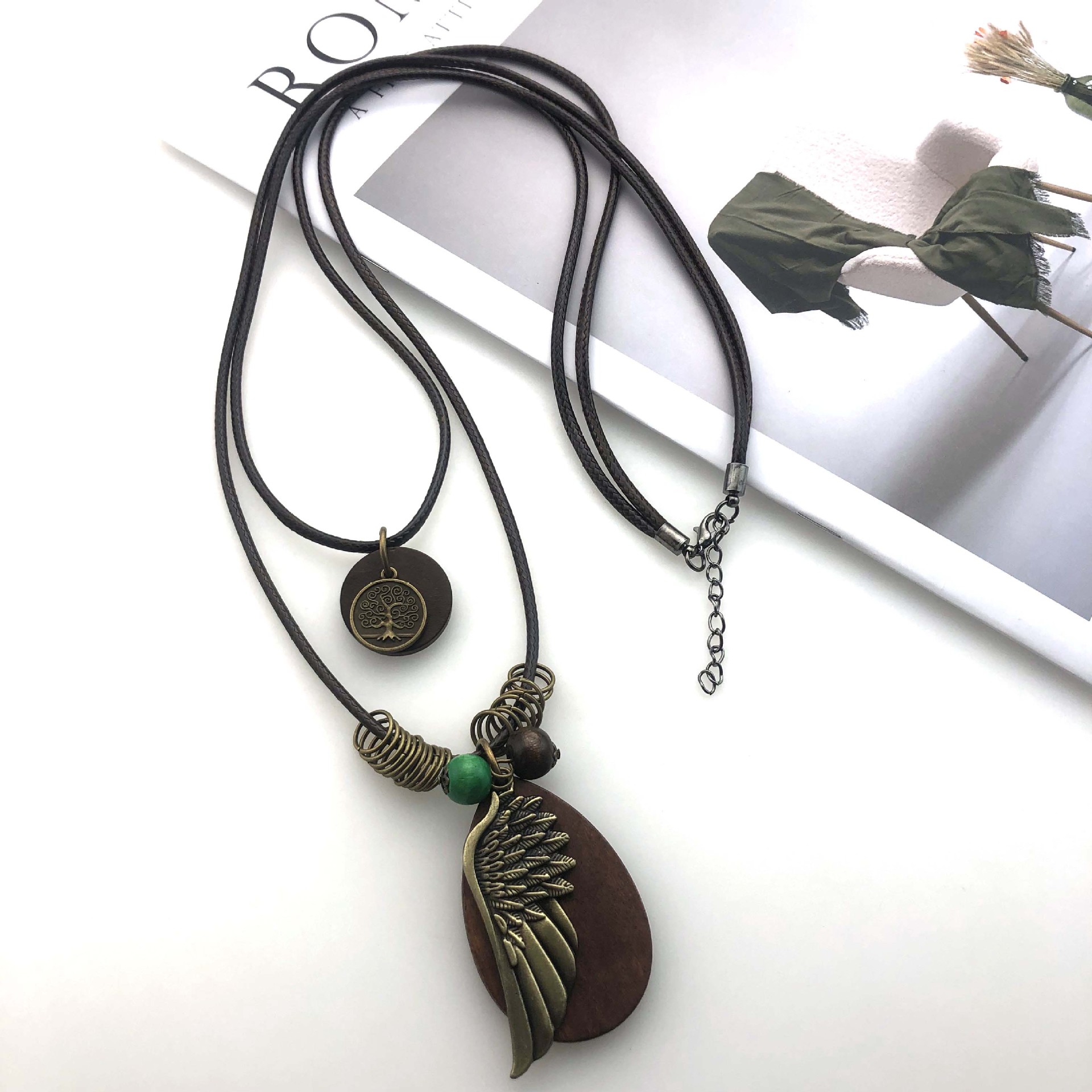 民族风小众设计感复古木质毛衣链波西米亚风多层叠戴长款贝斯项链