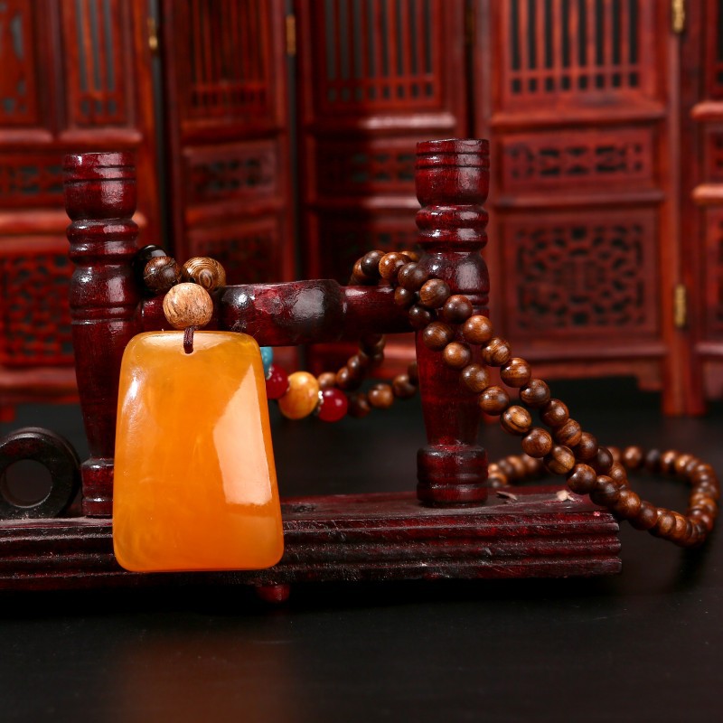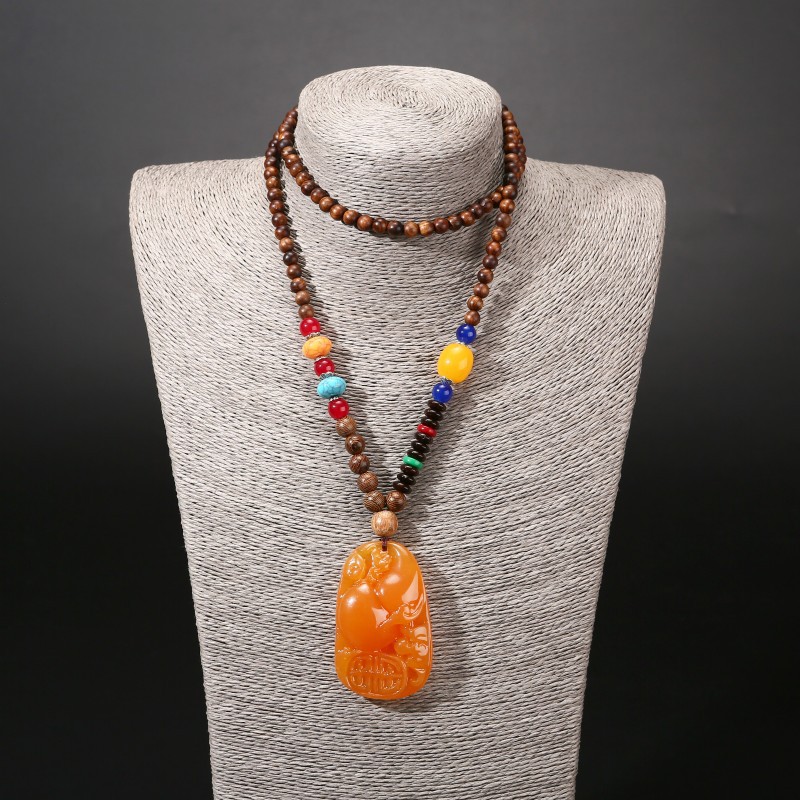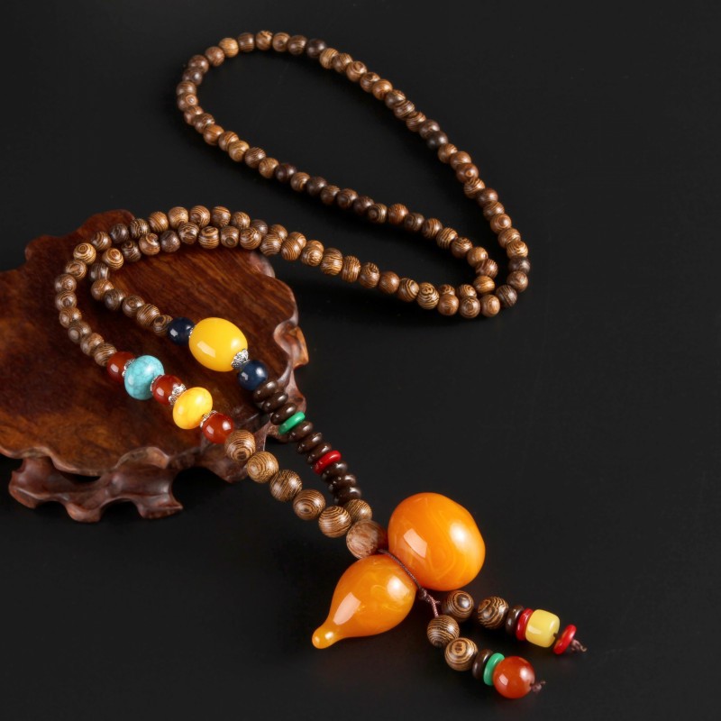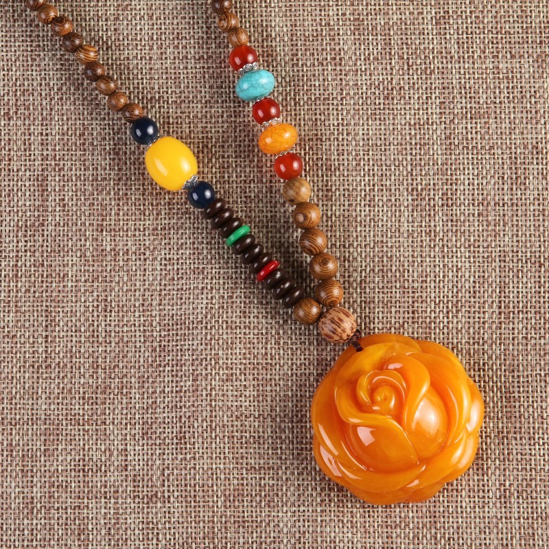 复古项链男女民族风毛衣链长款简约百搭蜜蜡吊坠衣服配饰木质挂件