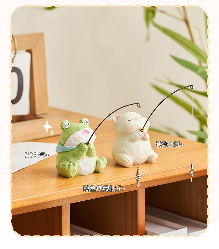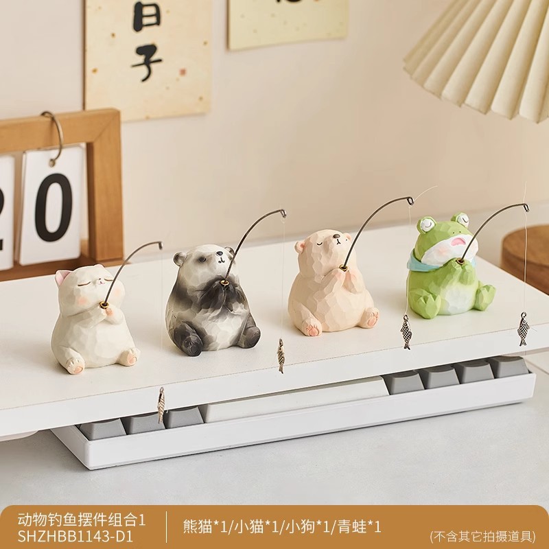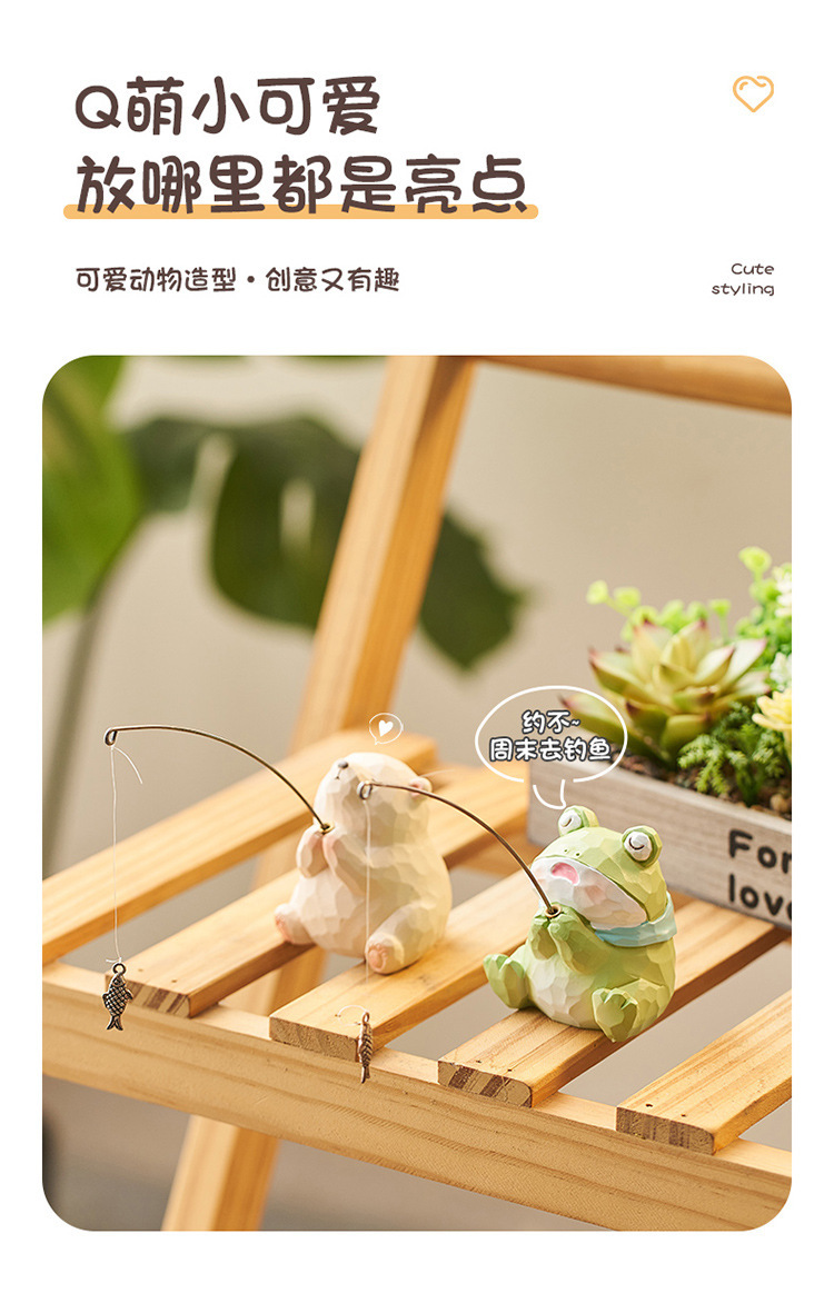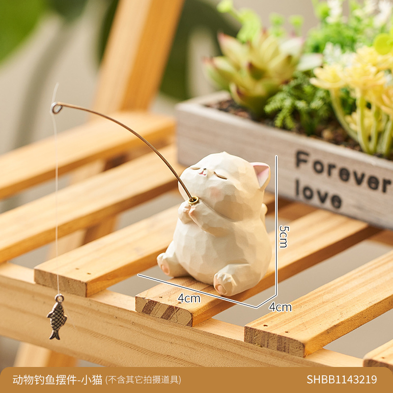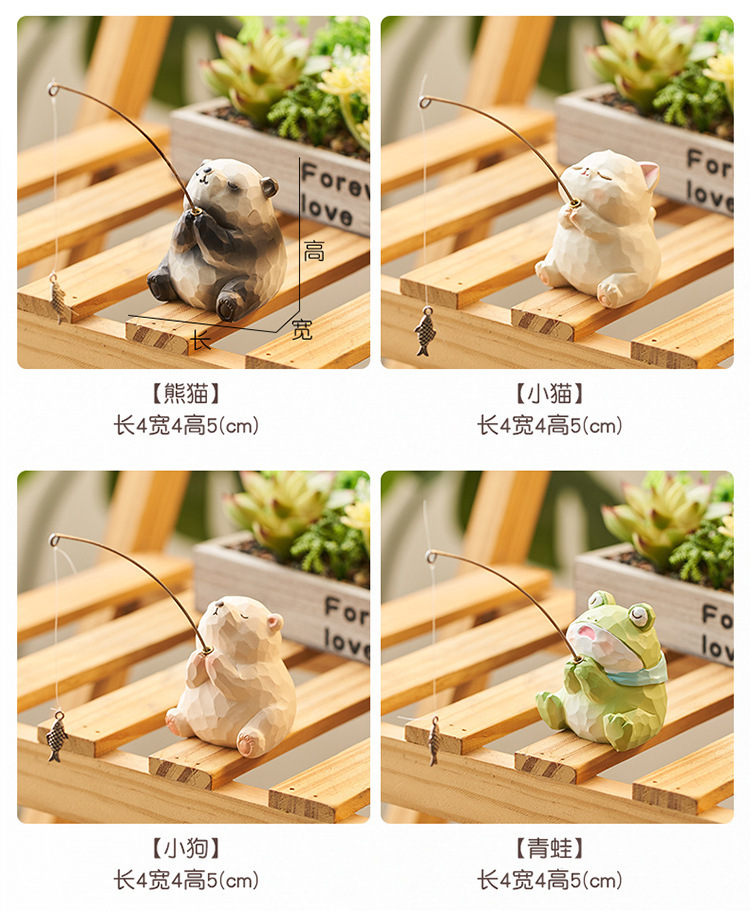 创意眯眼动物钓鱼摆件生态鱼缸造景装饰品龟缸可爱动物微景观