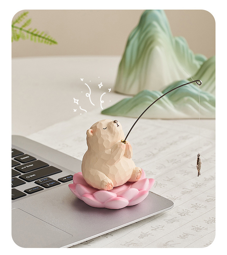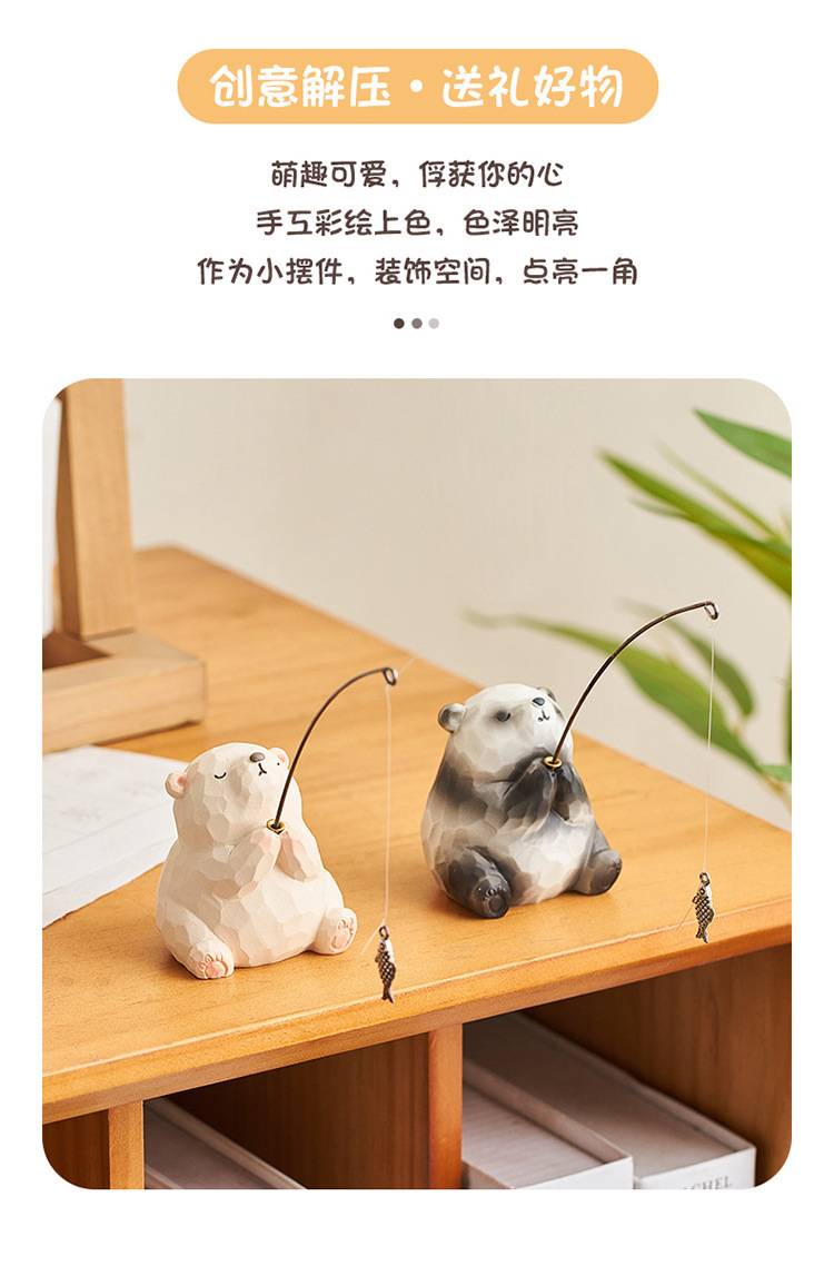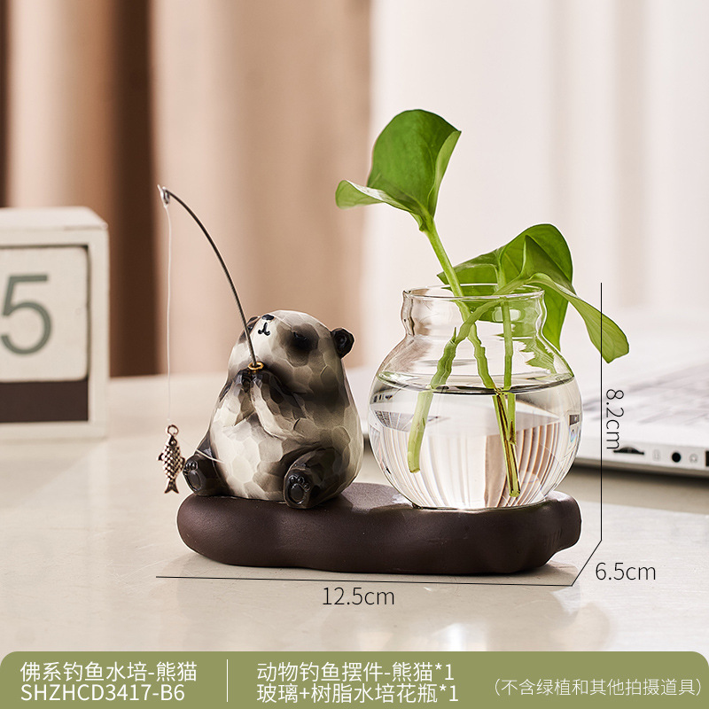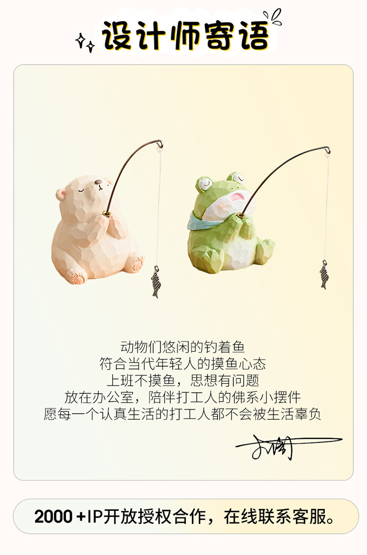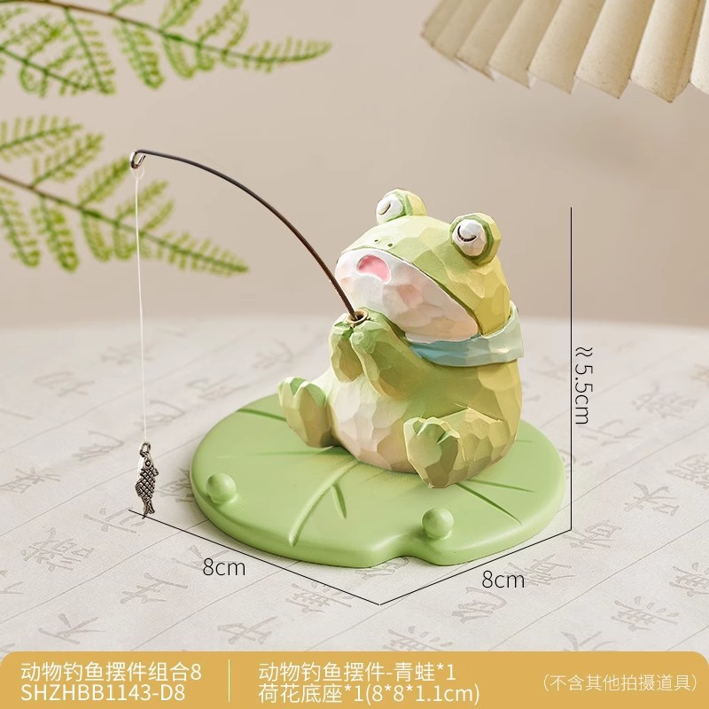 创意眯眼动物钓鱼摆件生态鱼缸造景装饰品龟缸可爱动物微景观