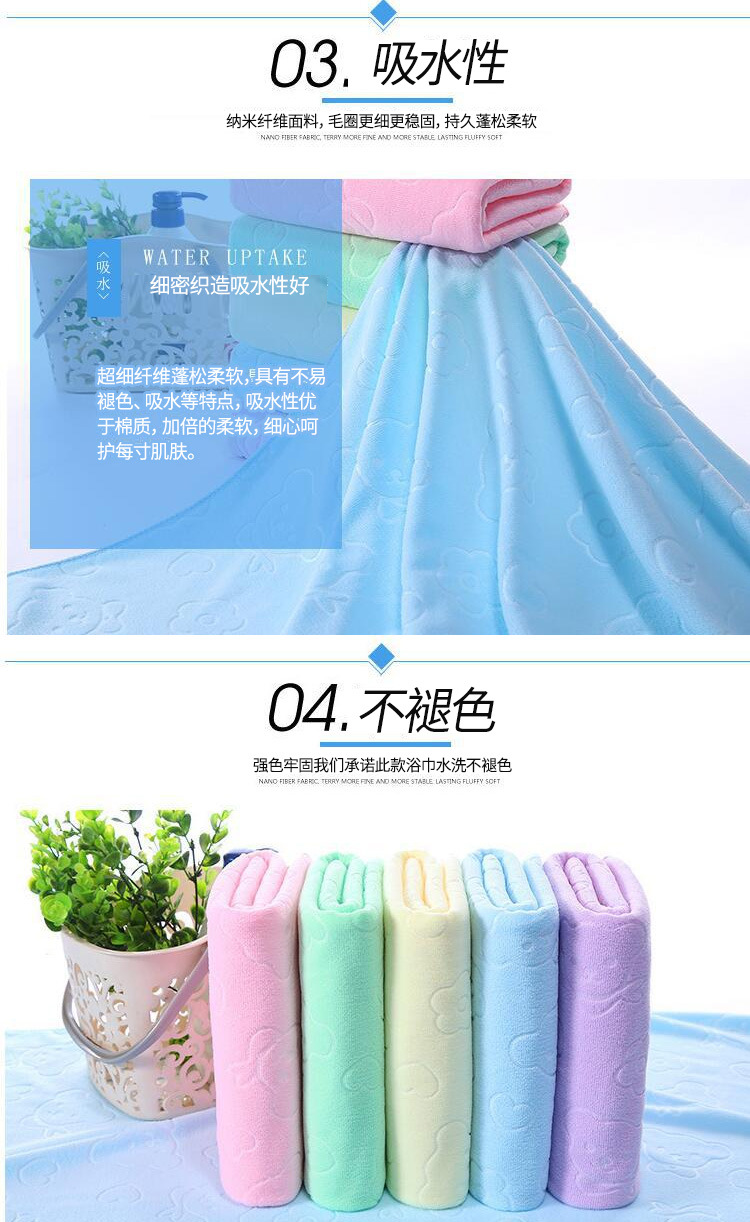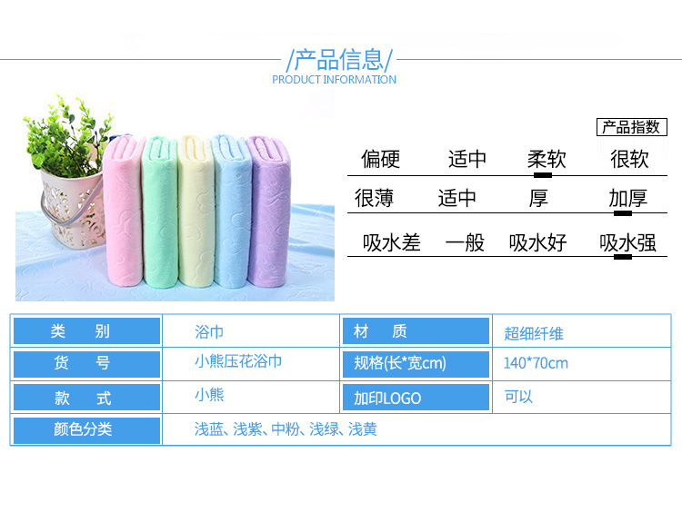 厂家批发超细纤维压花小熊70*140吸水浴巾三秒快干沙滩巾礼品浴巾