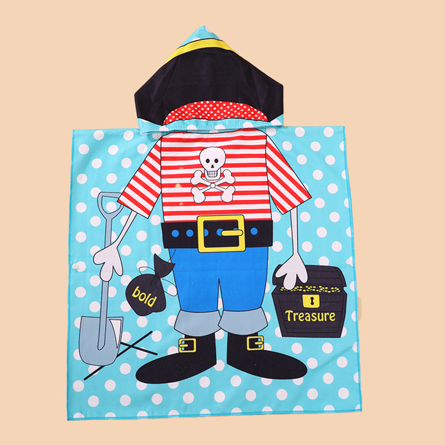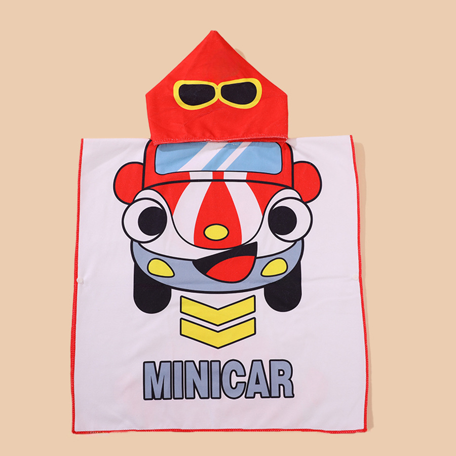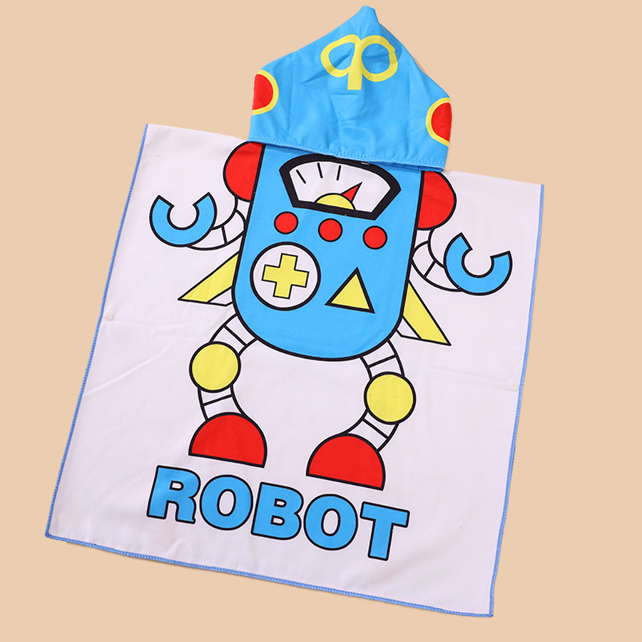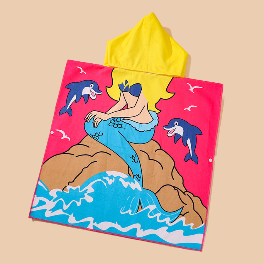 儿童浴巾斗篷浴袍柔软速干卡通印花超细纤维连帽披风沙滩巾跨境