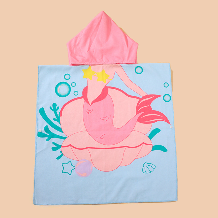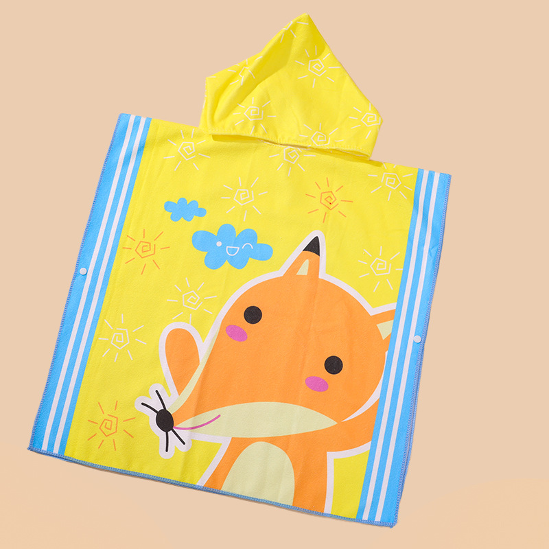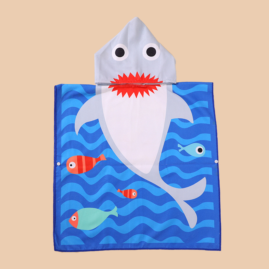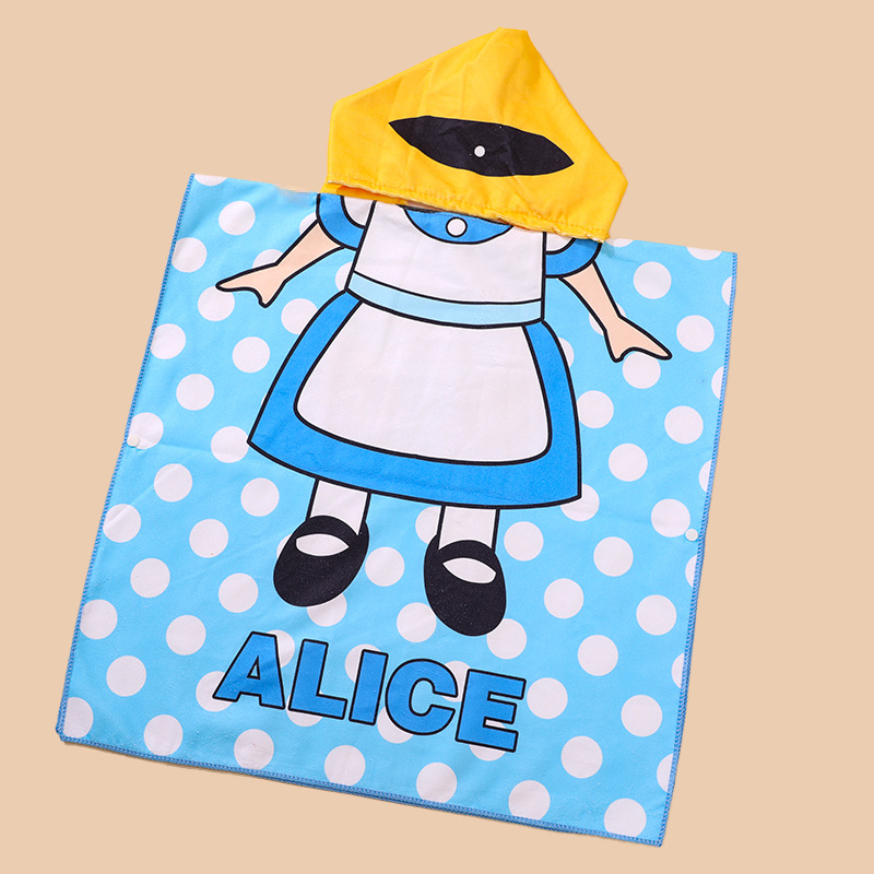 儿童浴巾斗篷浴袍柔软速干卡通印花超细纤维连帽披风沙滩巾跨境