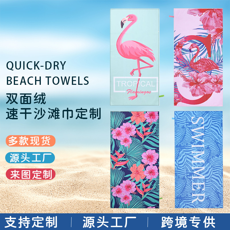 厂家双面绒速干浴巾数码热转移游泳吸水可收纳用品带扣印花沙滩巾