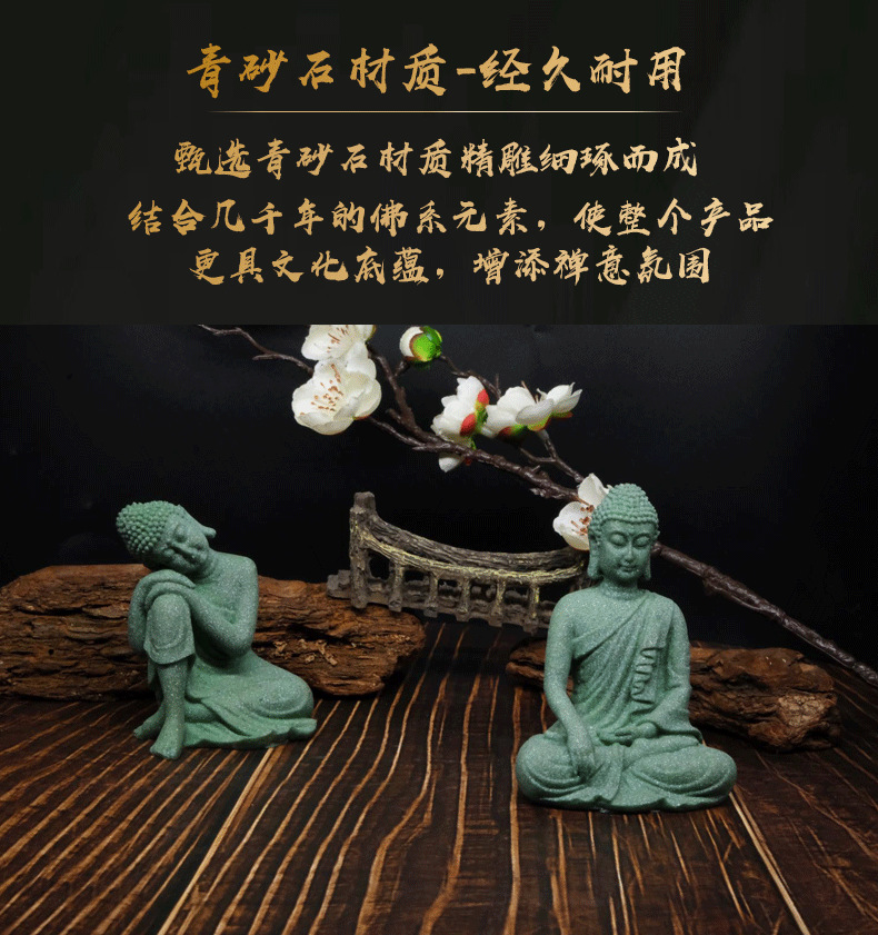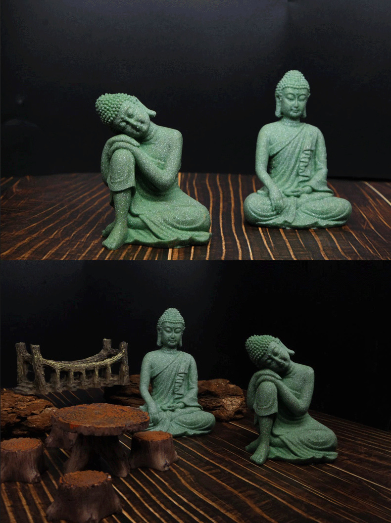 青砂石佛像工艺品鱼缸造景树脂摆件禅意家居玄关装饰新中式摆设