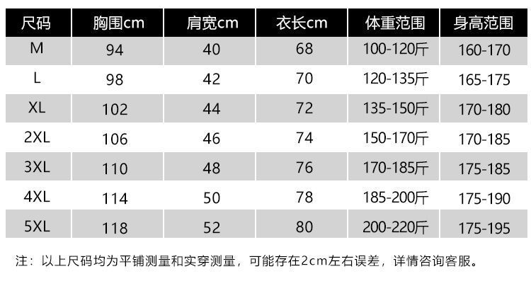 | 5xl recommended 200-110.00kg(5XL建议200--220斤) | USD $9.21 | 999999 piece available |