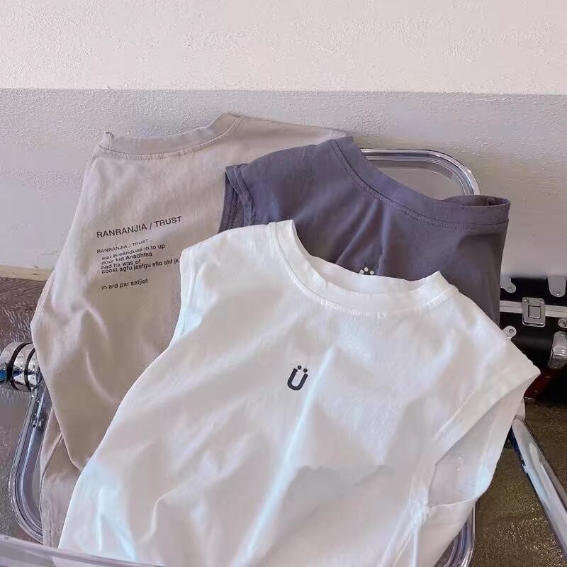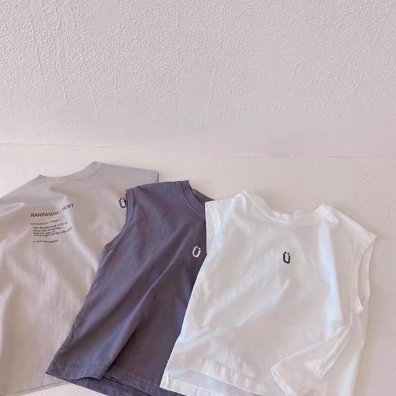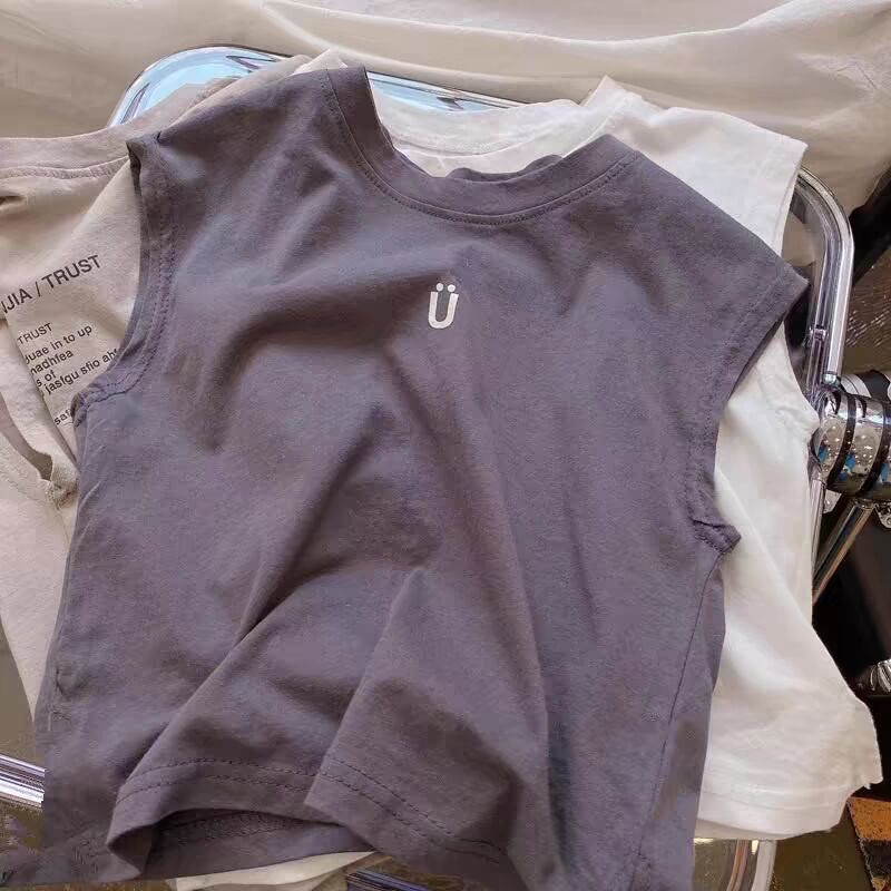 100%纯棉韩版夏季儿童背心外穿男童T恤无袖新款童装女童简约上衣