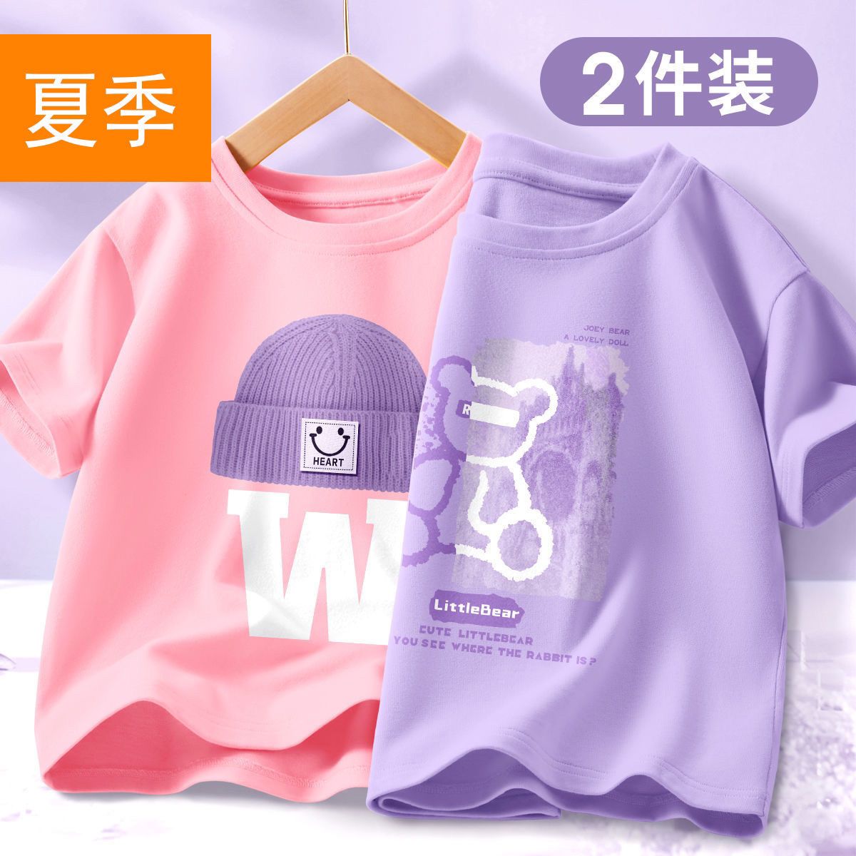 纯棉儿童t恤2024新款夏季中小童体恤吸汗透气女童半袖上衣爆款