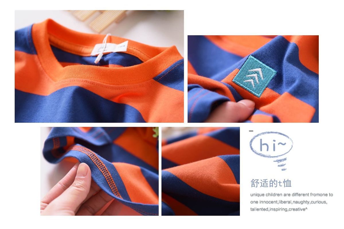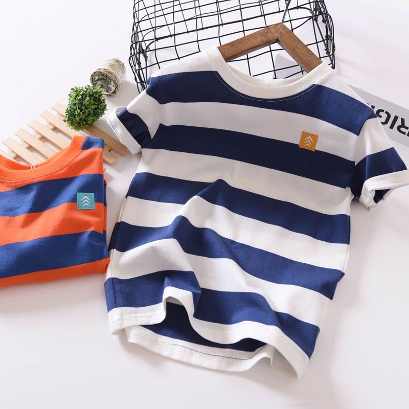 男童短袖t恤宝宝夏装2023新款儿童条纹薄款半袖衫潮洋气休闲上衣