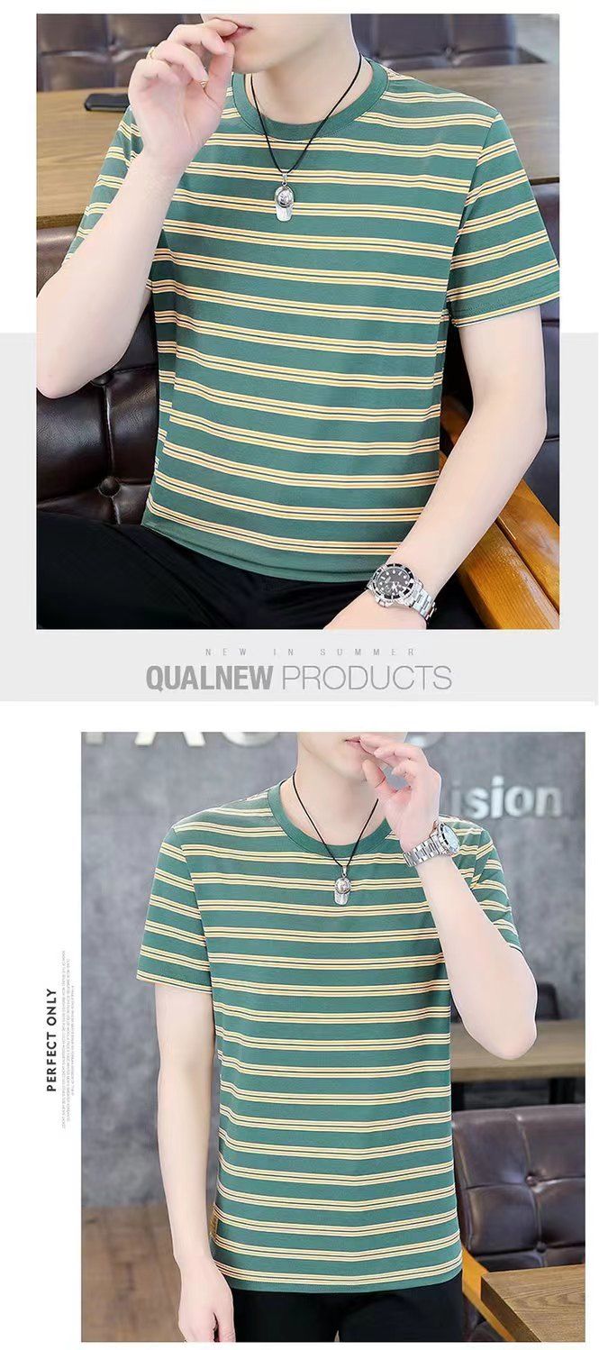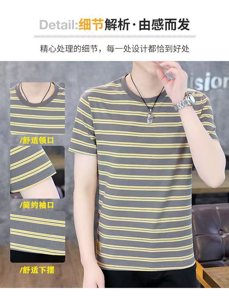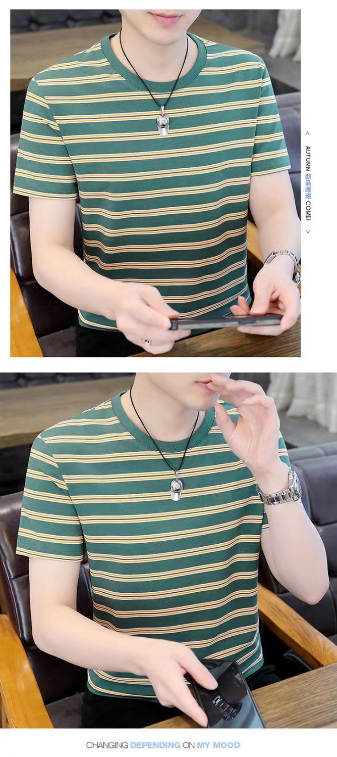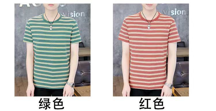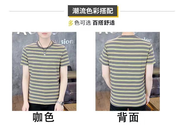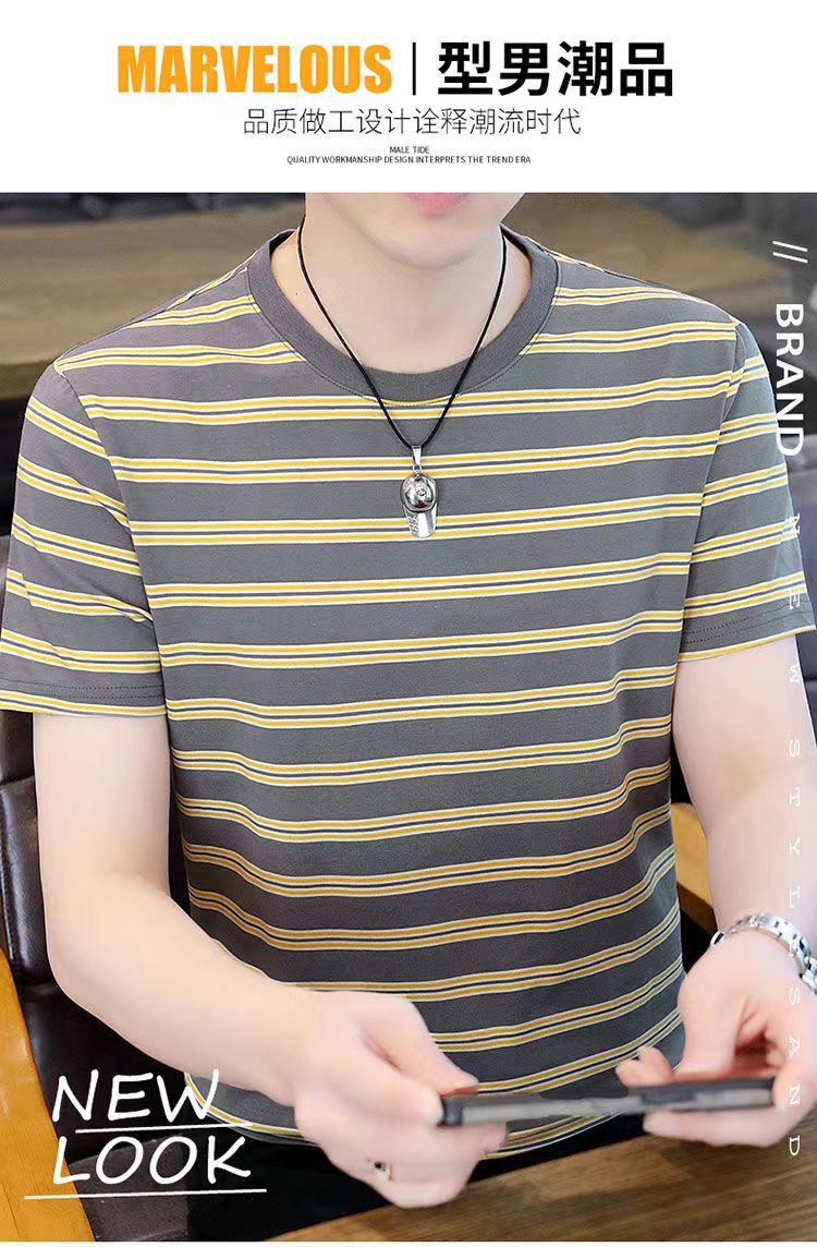 条纹t恤男士短袖t恤短袖夏季潮牌宽松圆领半袖韩版青少年上衣打底
