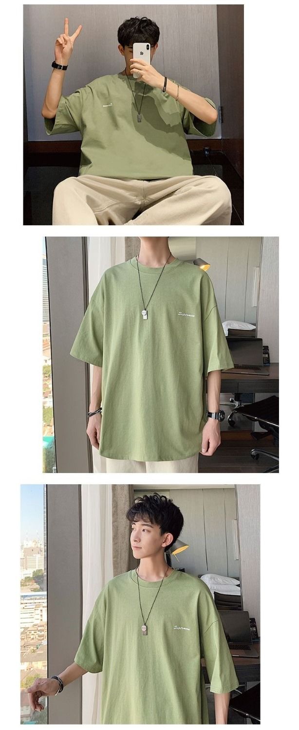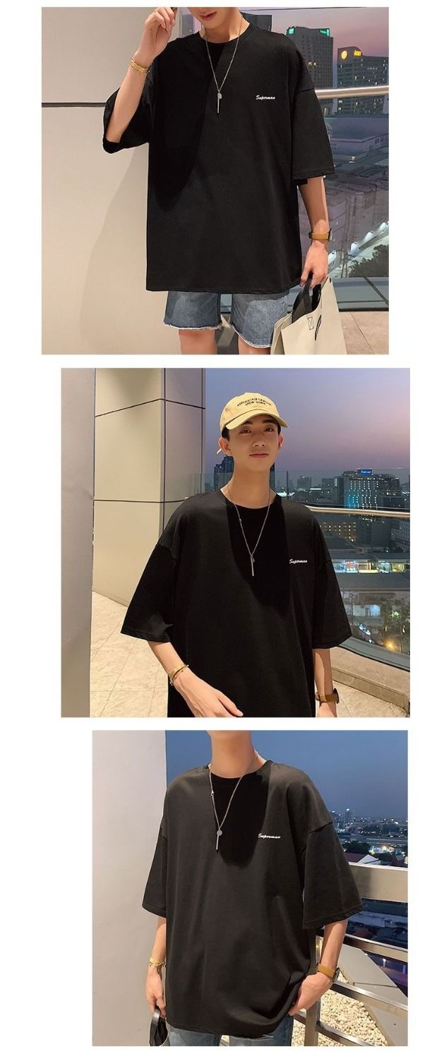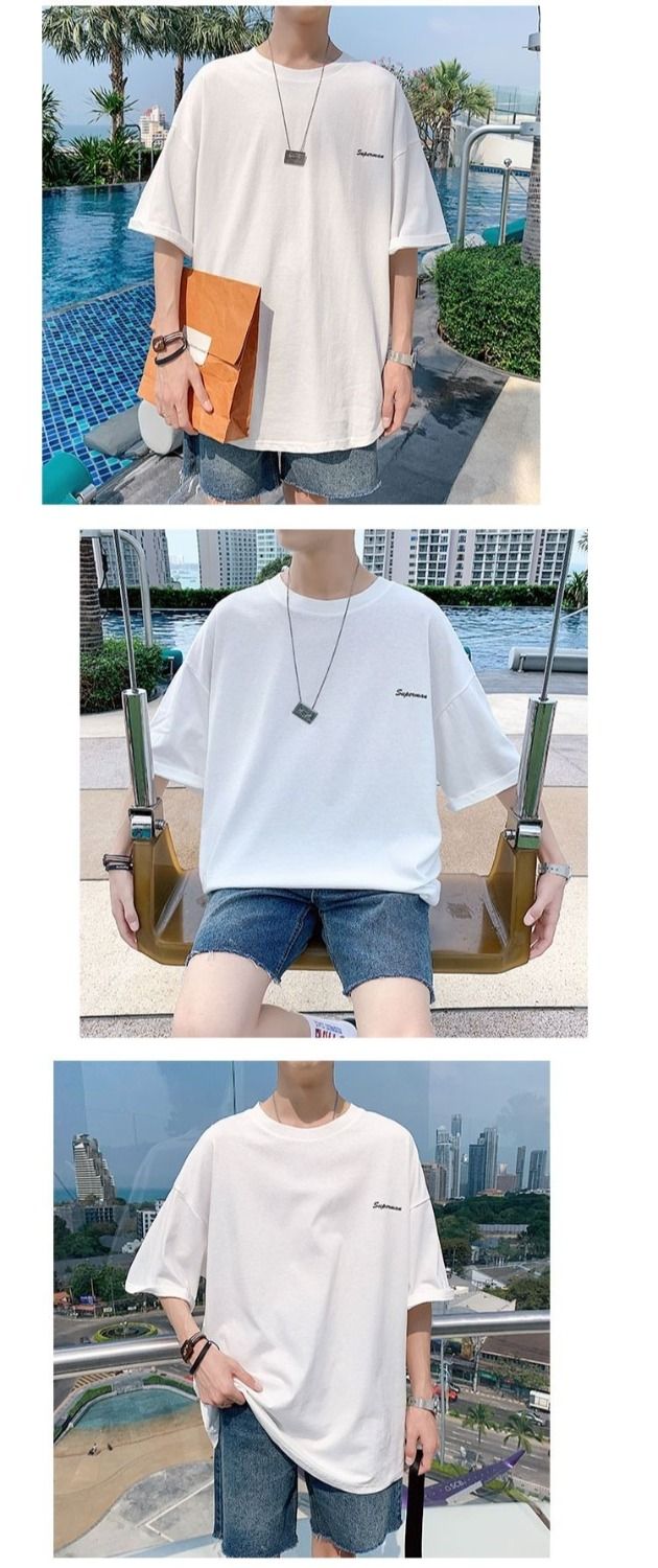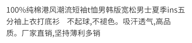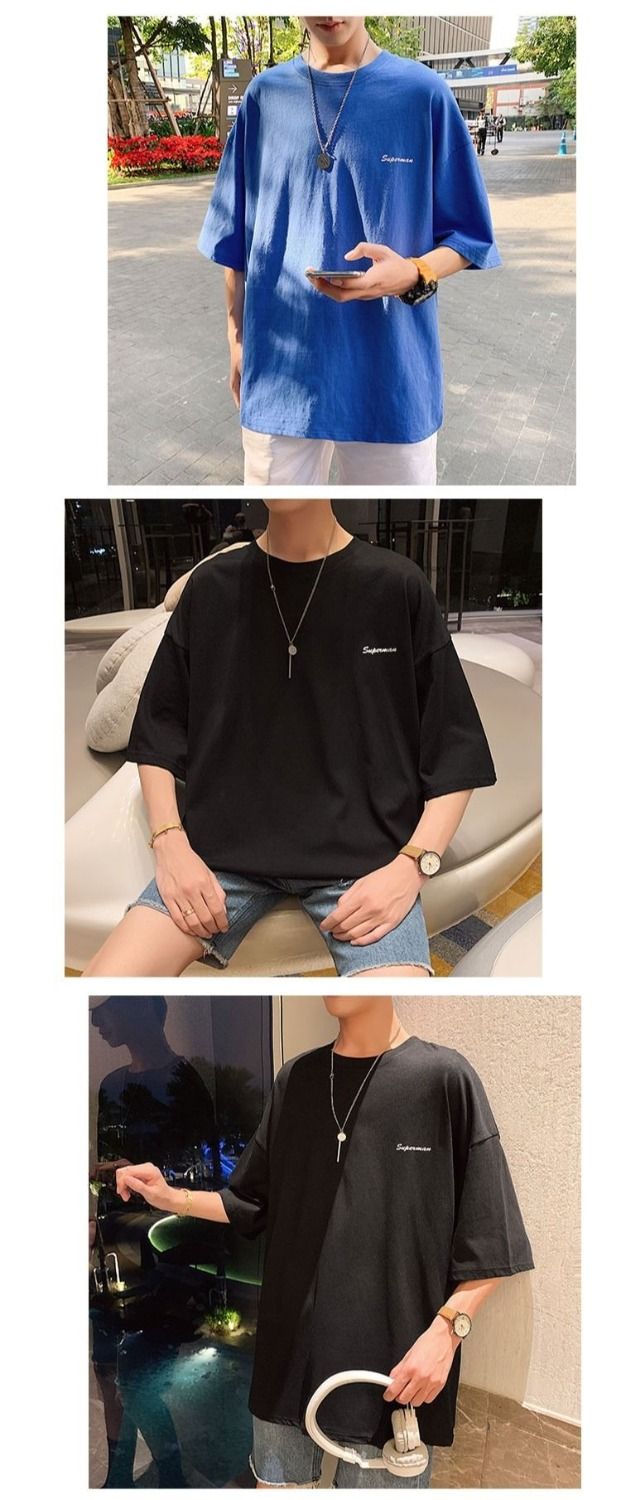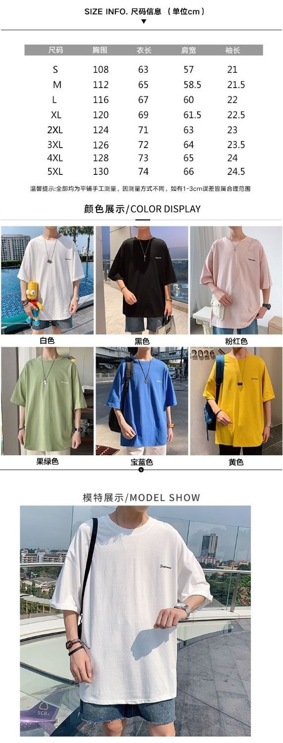 100%纯棉港风潮流短袖t恤男韩版宽松男士夏季ins五分袖上衣打底衫