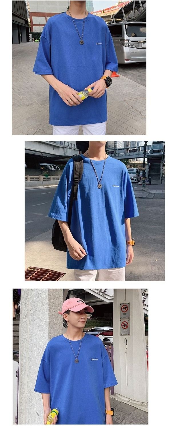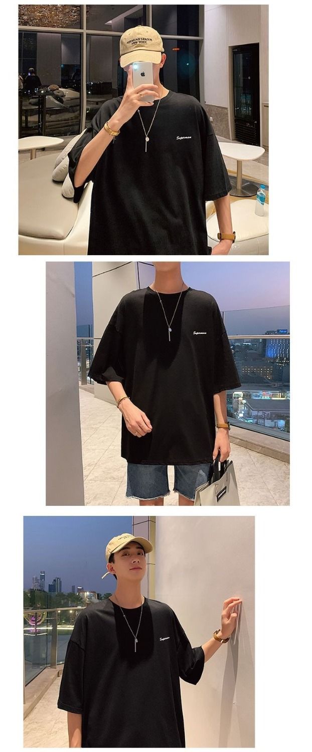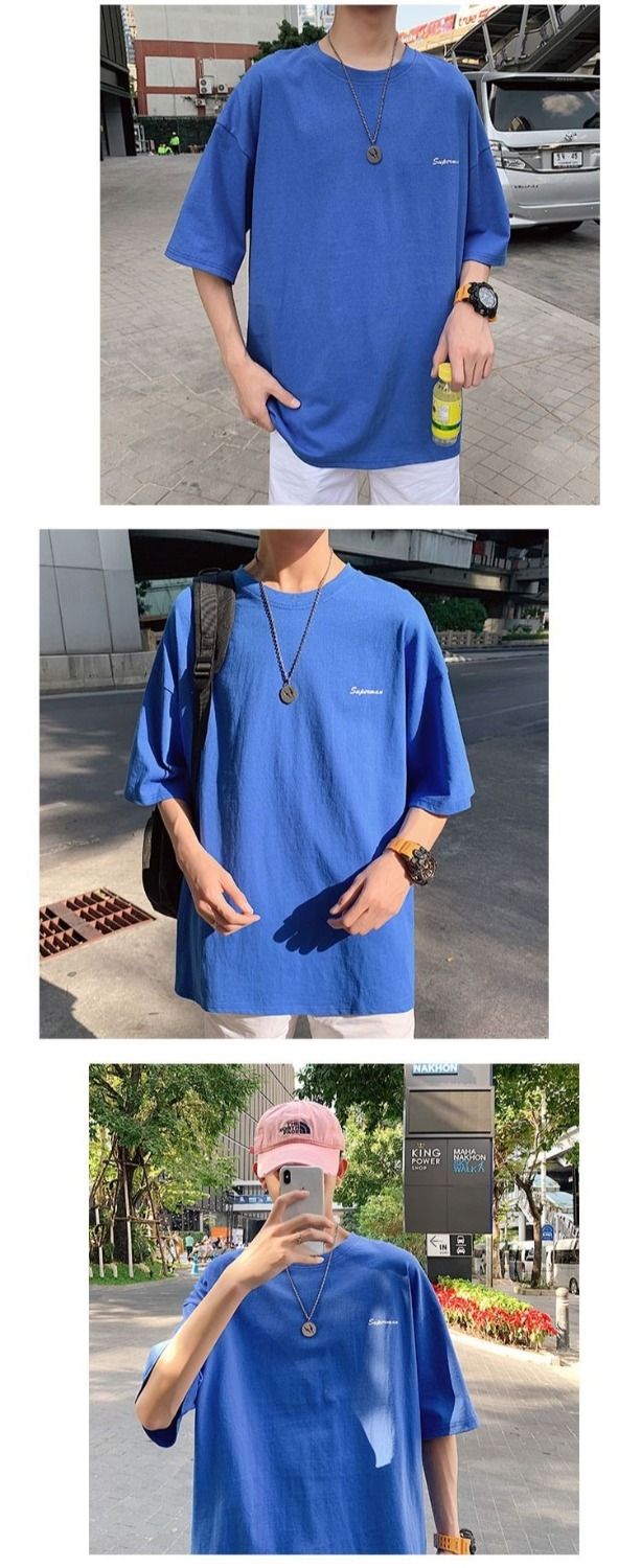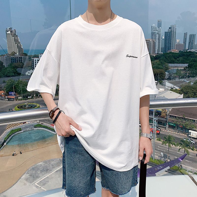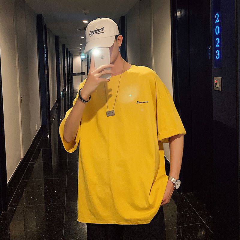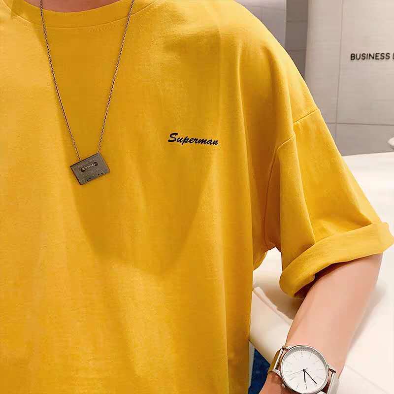 100%纯棉港风潮流短袖t恤男韩版宽松男士夏季ins五分袖上衣打底衫