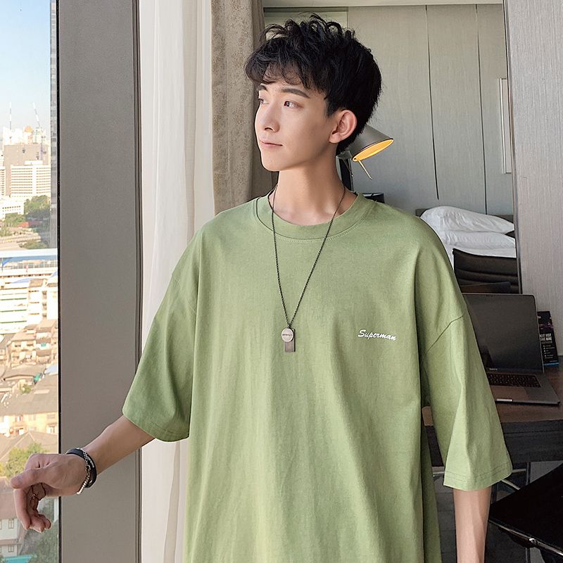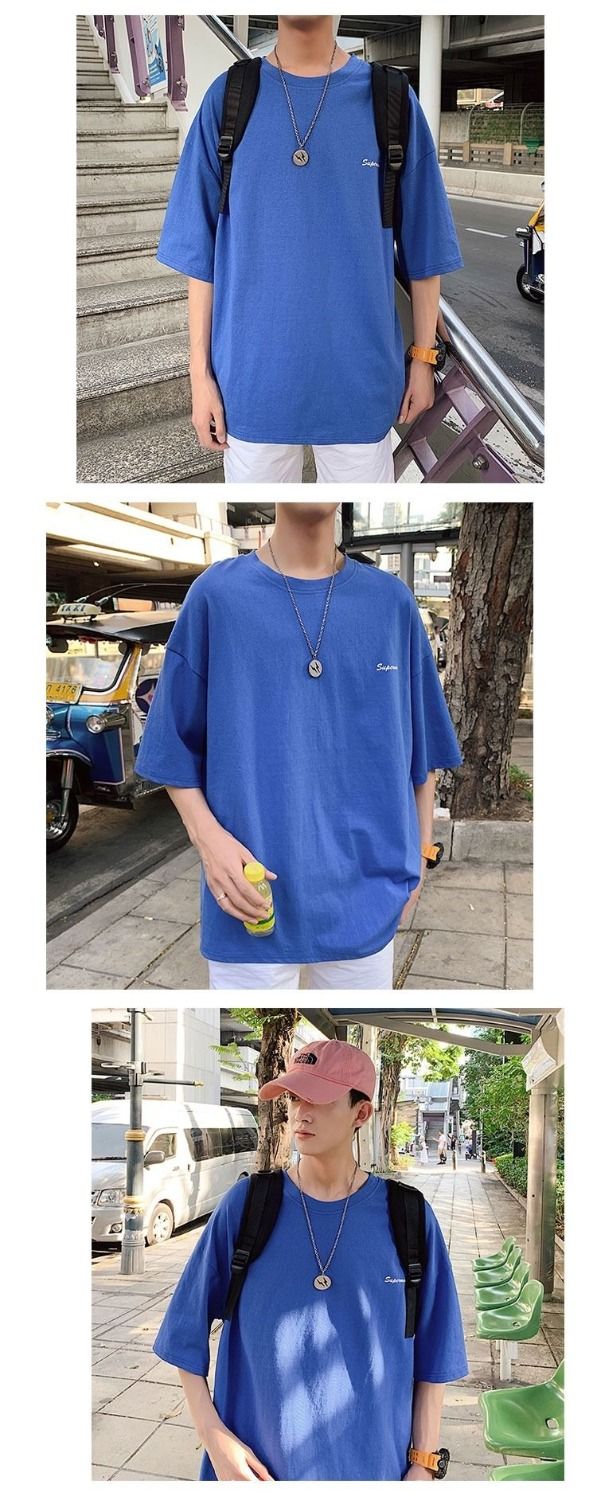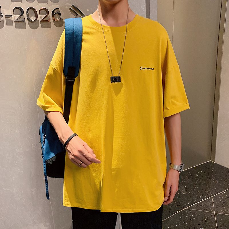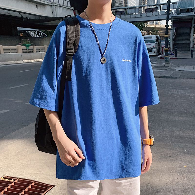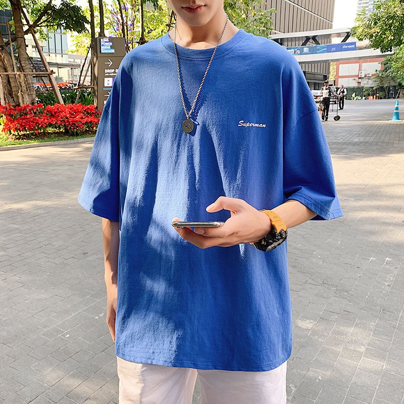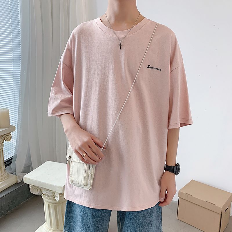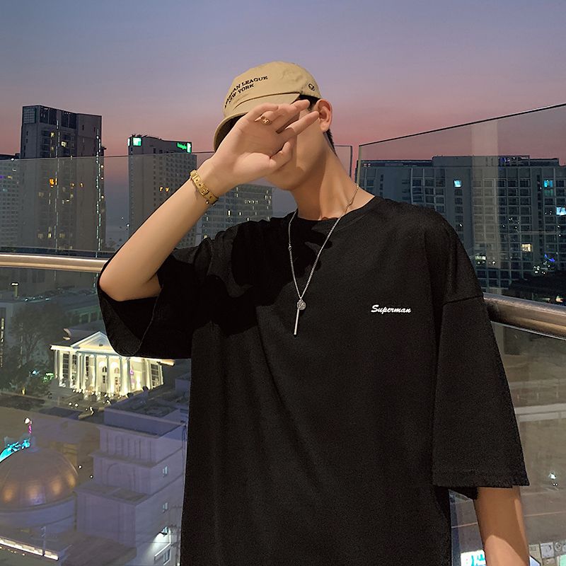 100%纯棉港风潮流短袖t恤男韩版宽松男士夏季ins五分袖上衣打底衫