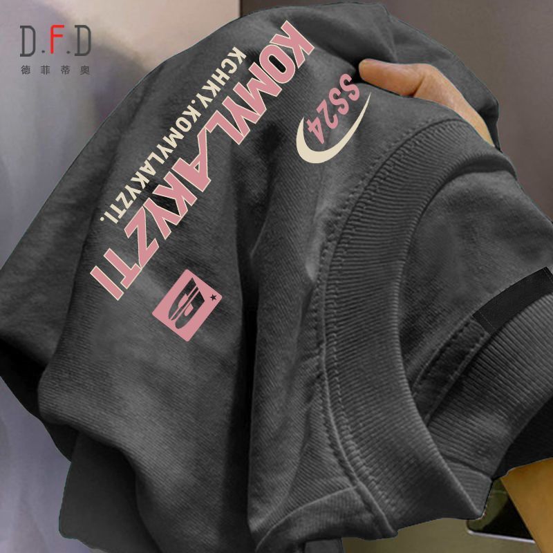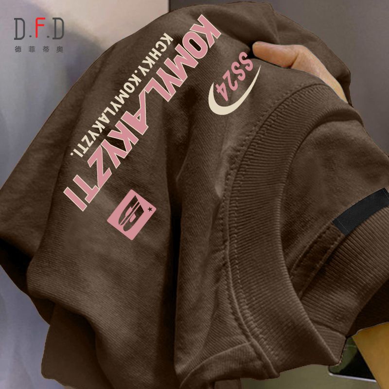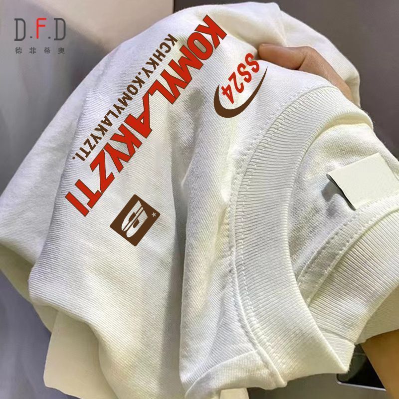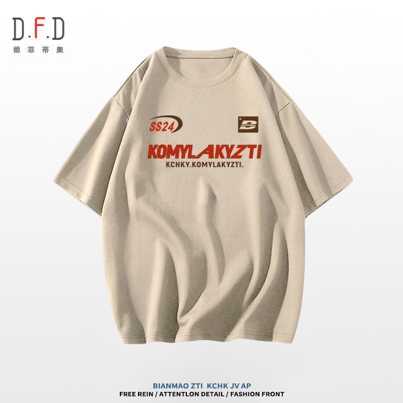 夏季不起球重磅卡其色短袖t恤男款美式休闲ins潮牌高街字母半袖
