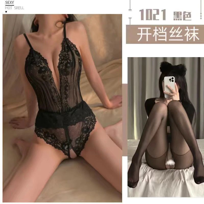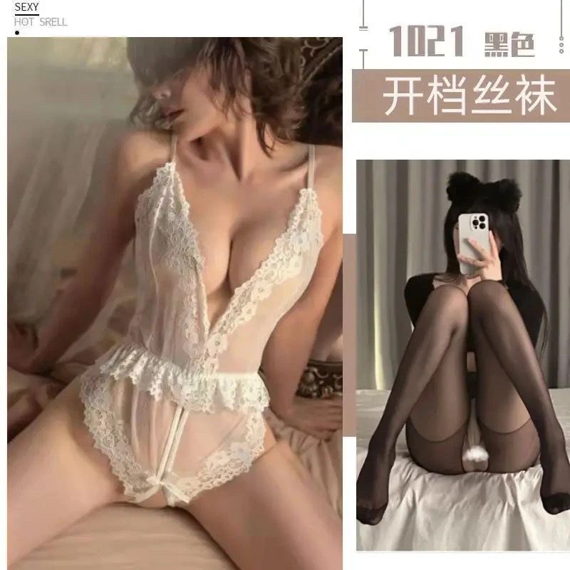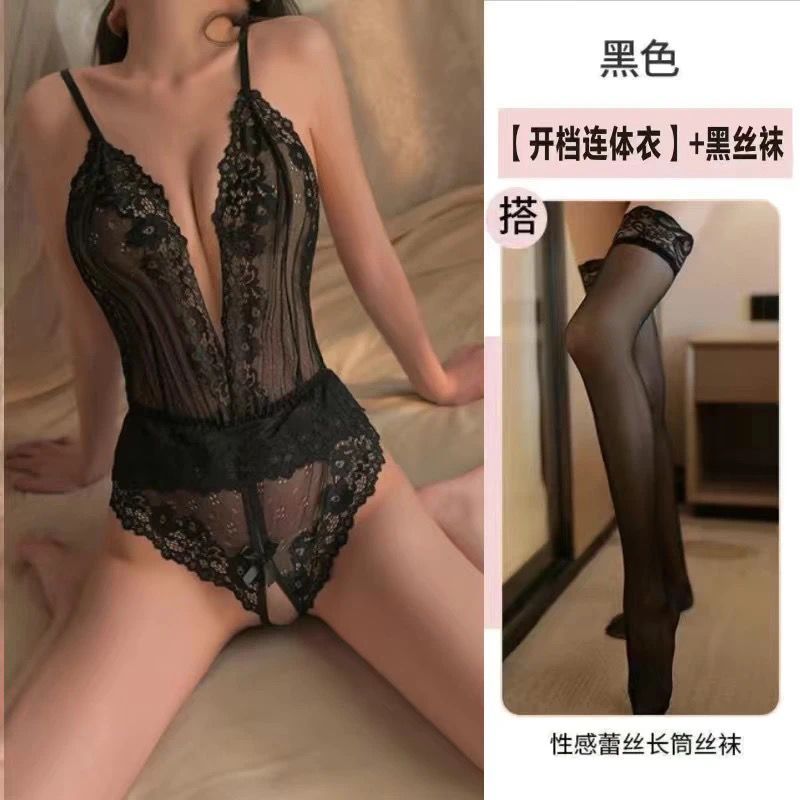 性感女睡衣蕾丝开叉裤女比基尼超小浪漫亲子装一家三口短袖前扣