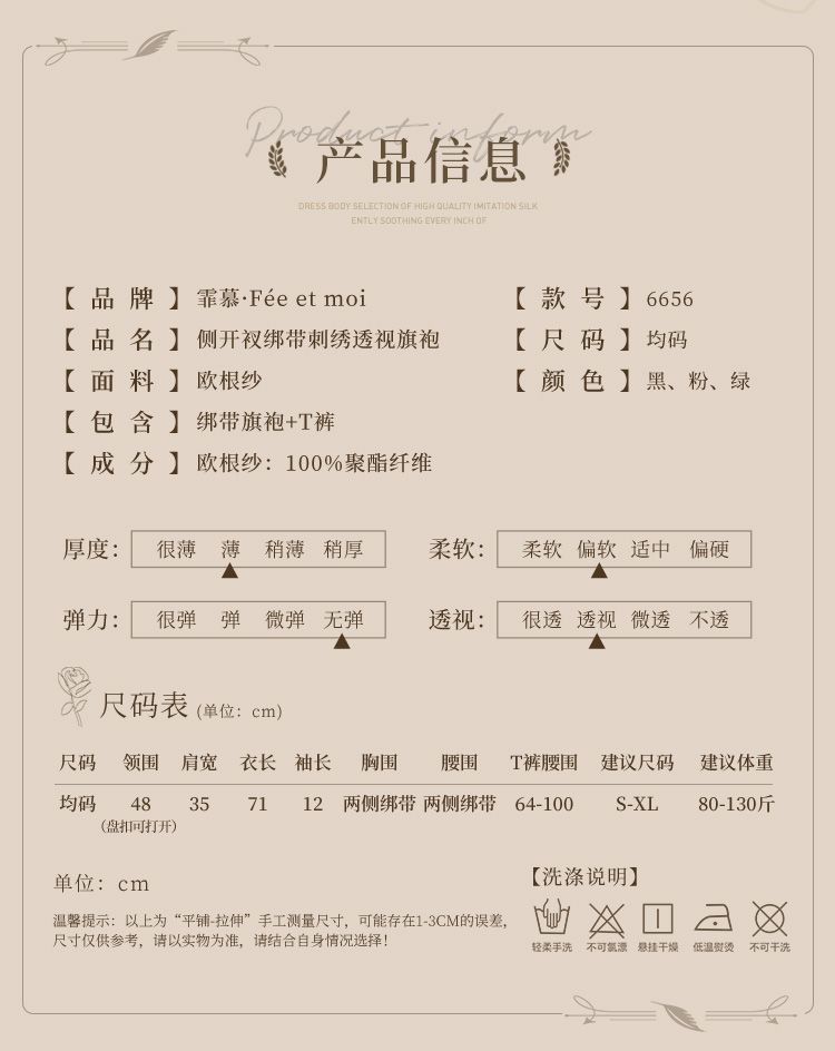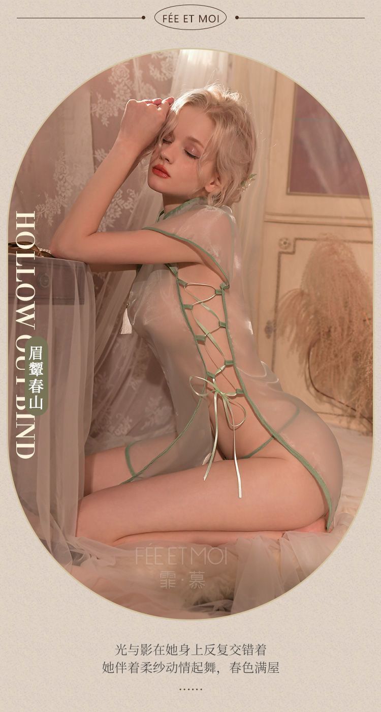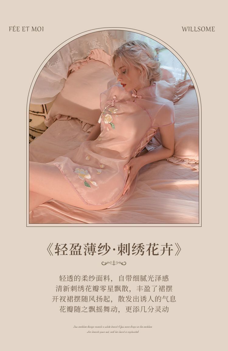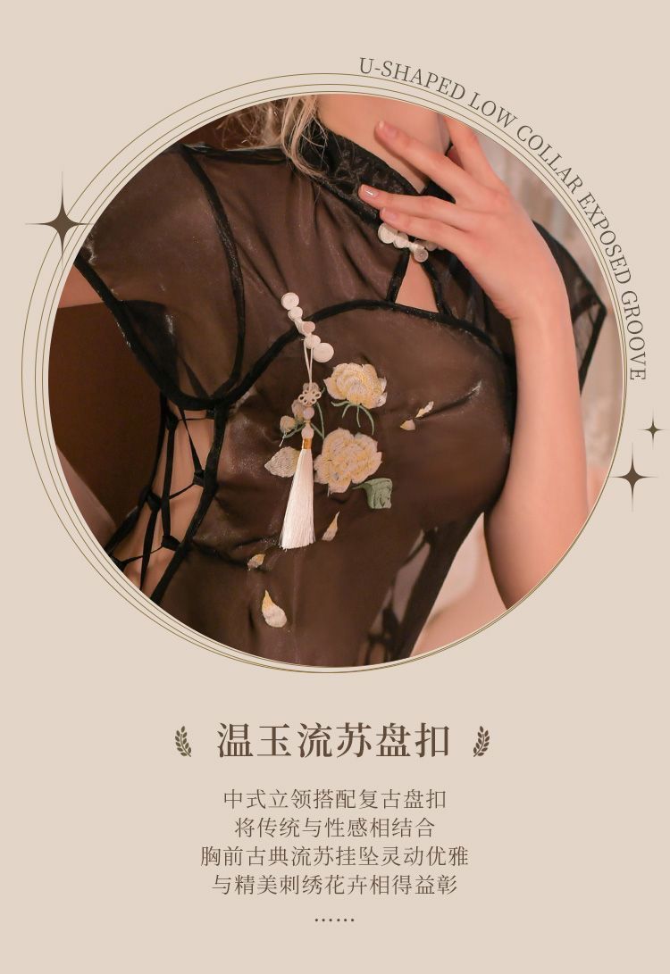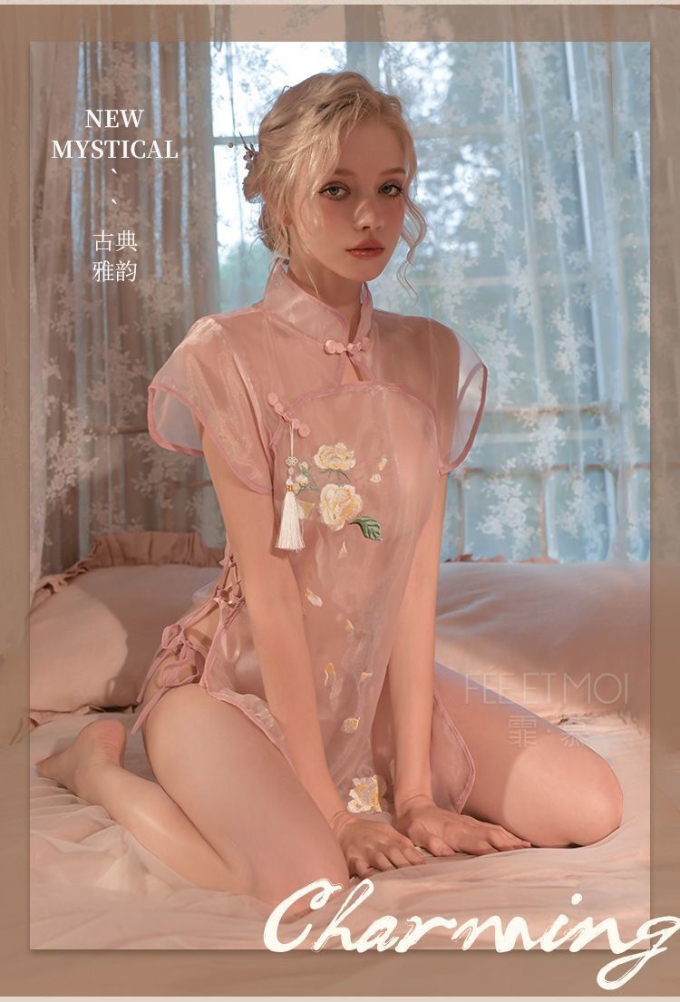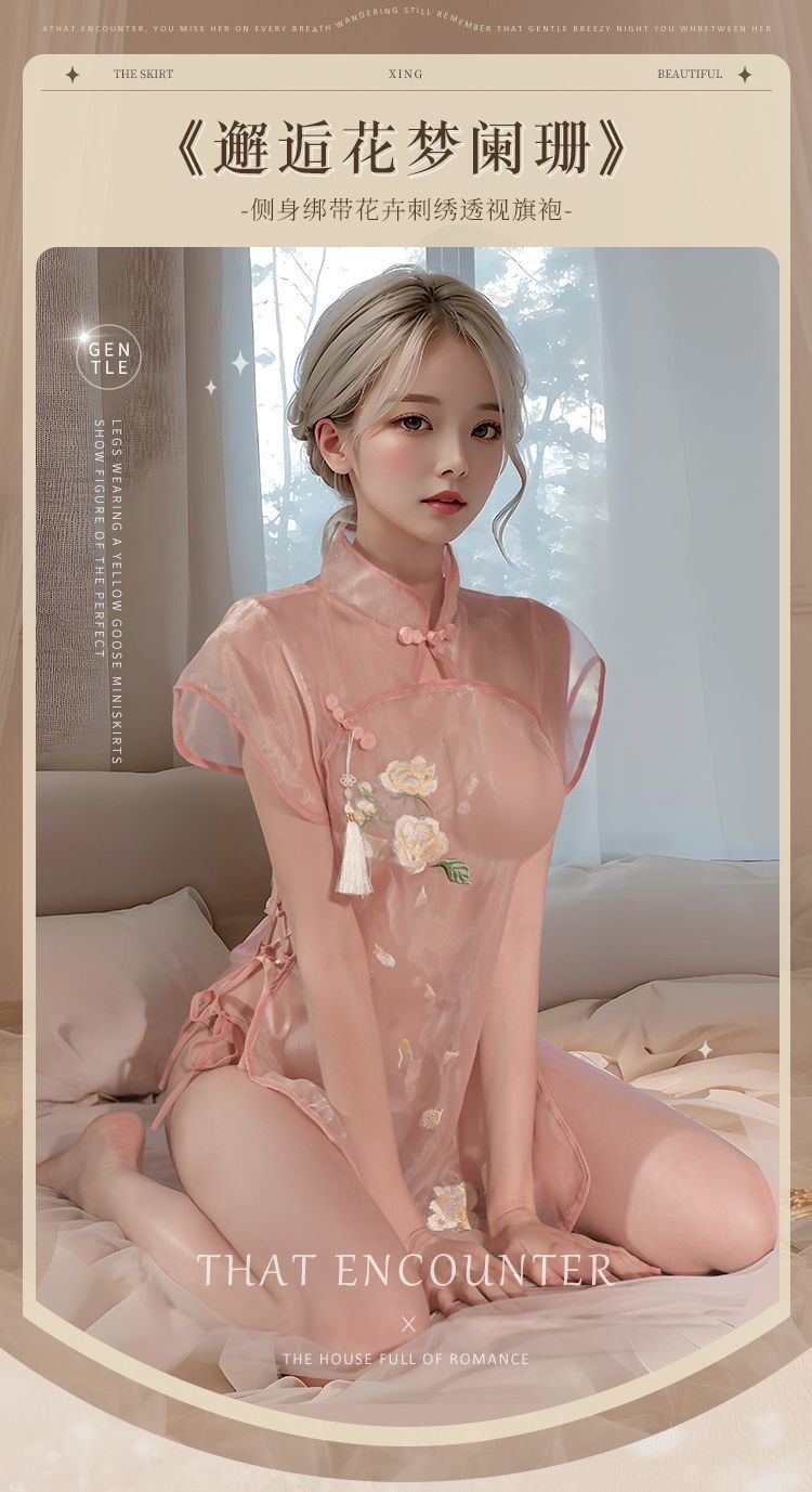 纯欲风甜美镂空透明冰丝高开叉旗袍制服古典刺绣玫瑰火辣旗袍裙ol