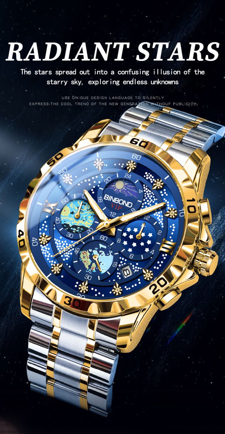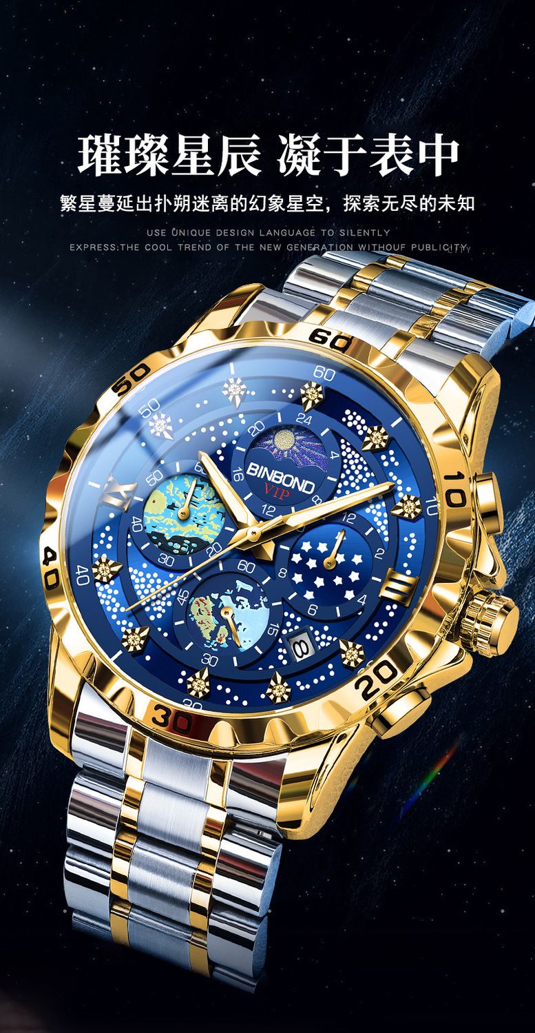 时尚新款星辰大海男士石英手表夜光防水满天星高颜值魅影钢带男款