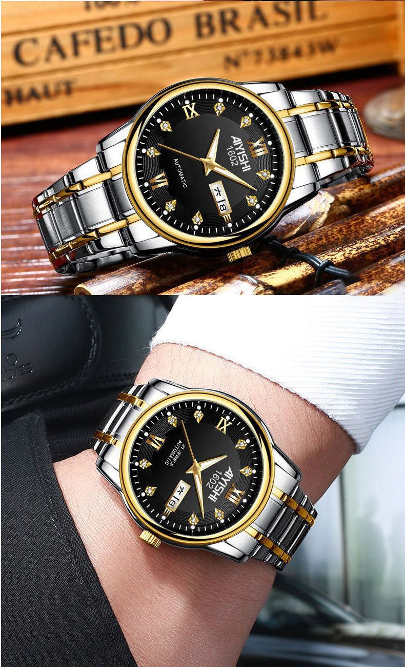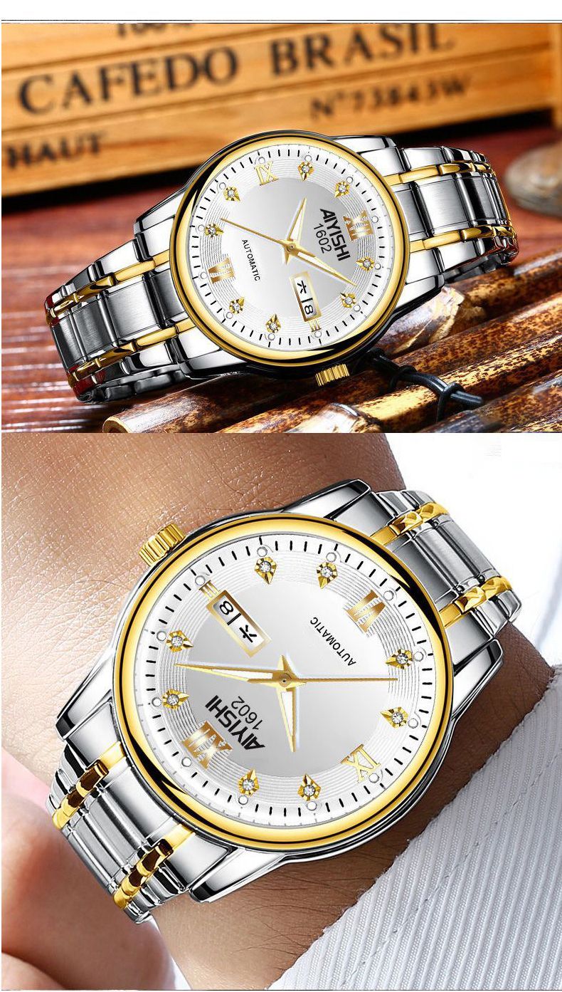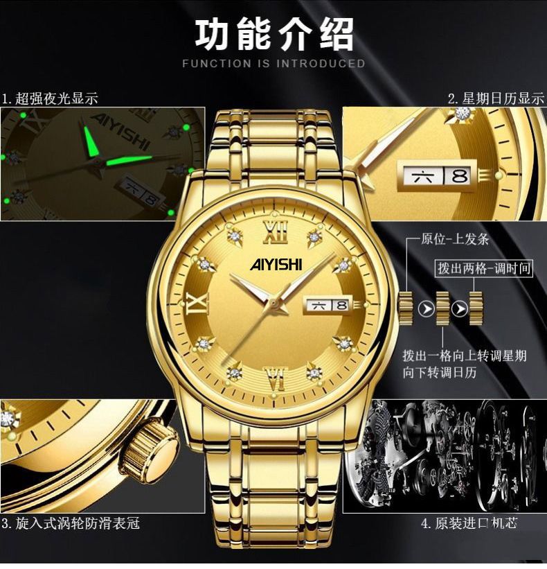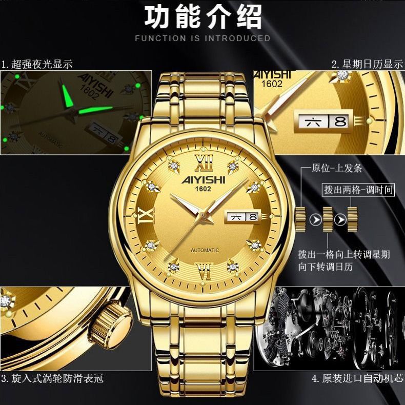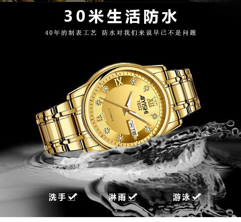 瑞士全自动机械表男士夜光防水镶钻高档名牌专柜日历精钢原装轻奢