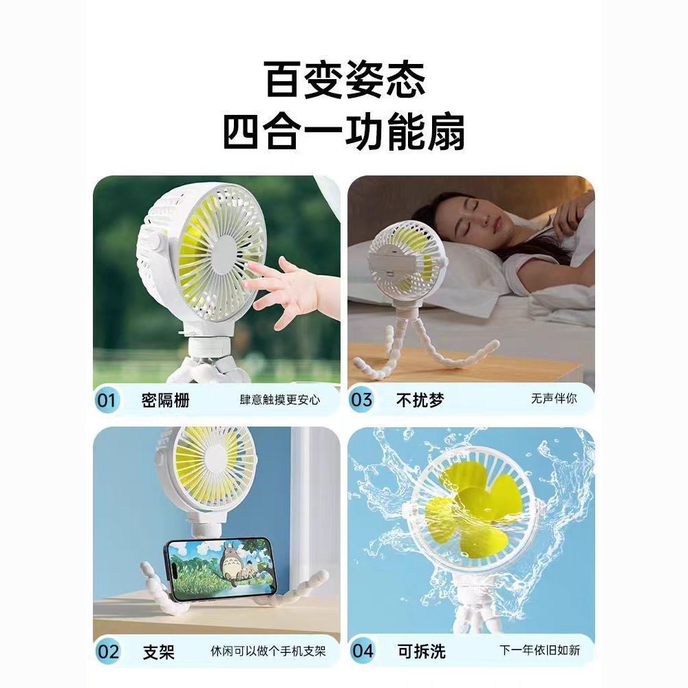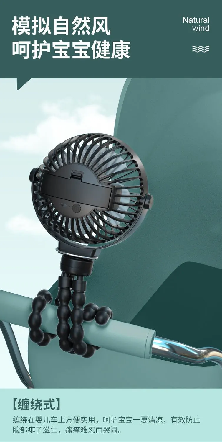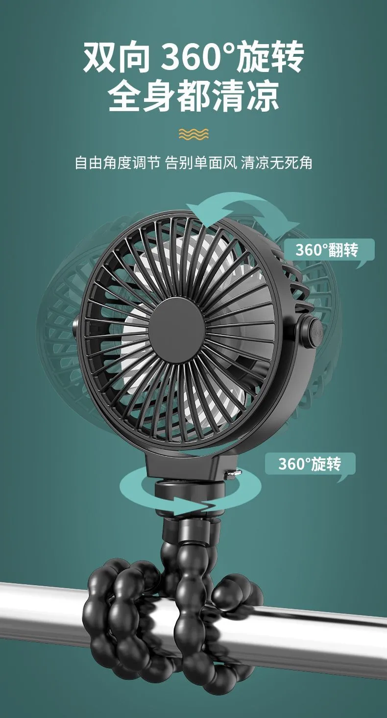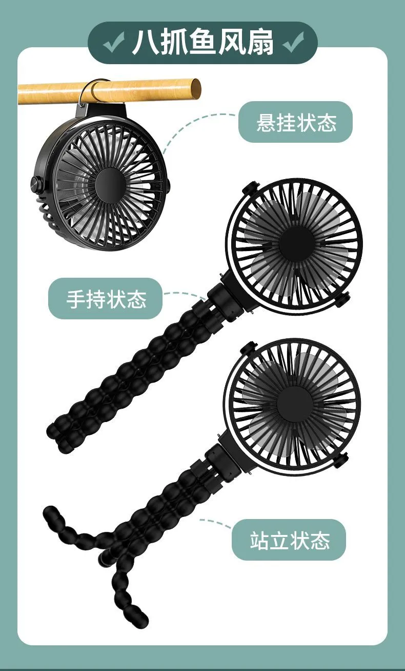 婴儿车悬挂USB充电夹子风扇桌面长续航八爪鱼静音儿童宝宝风扇