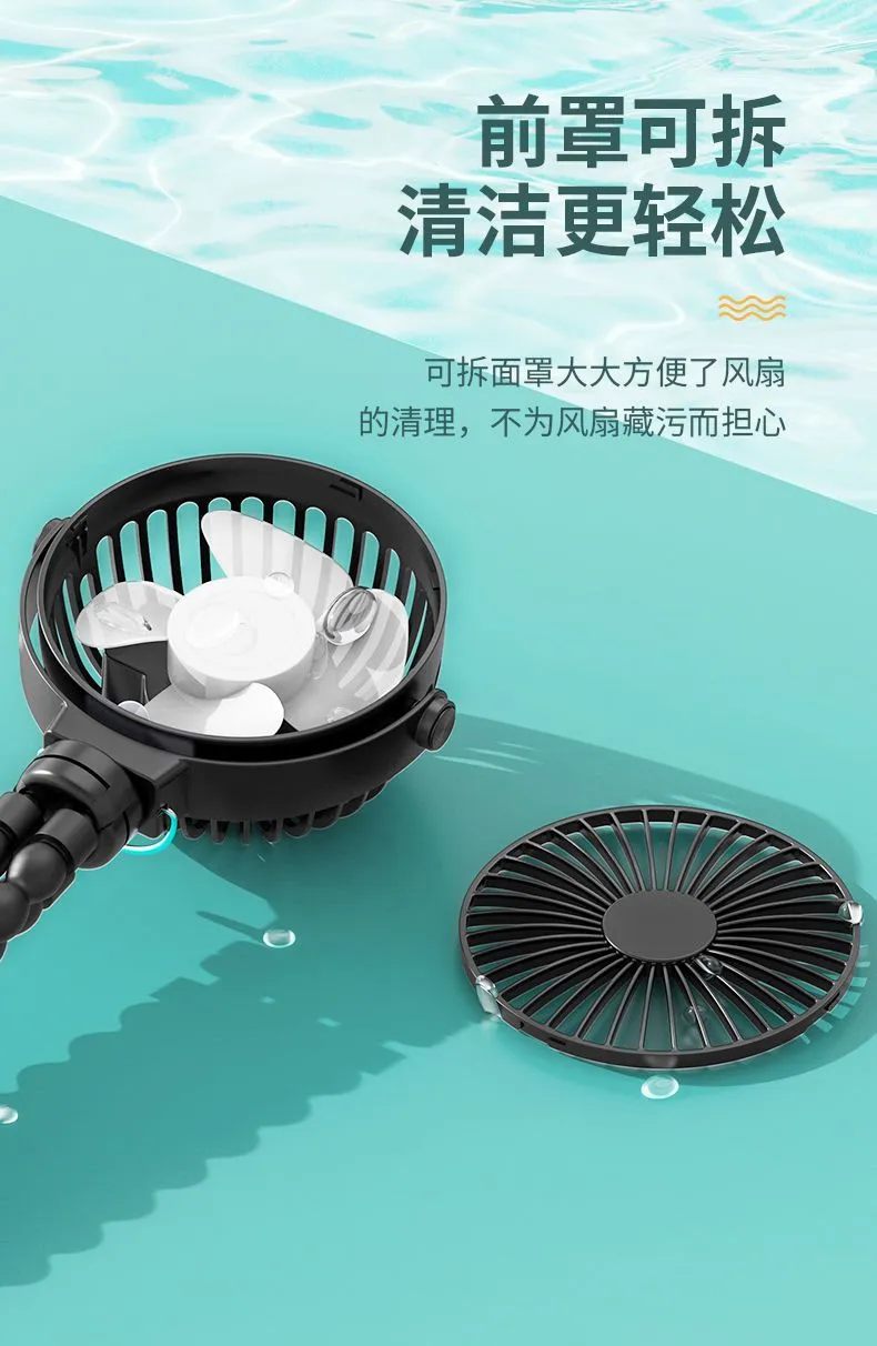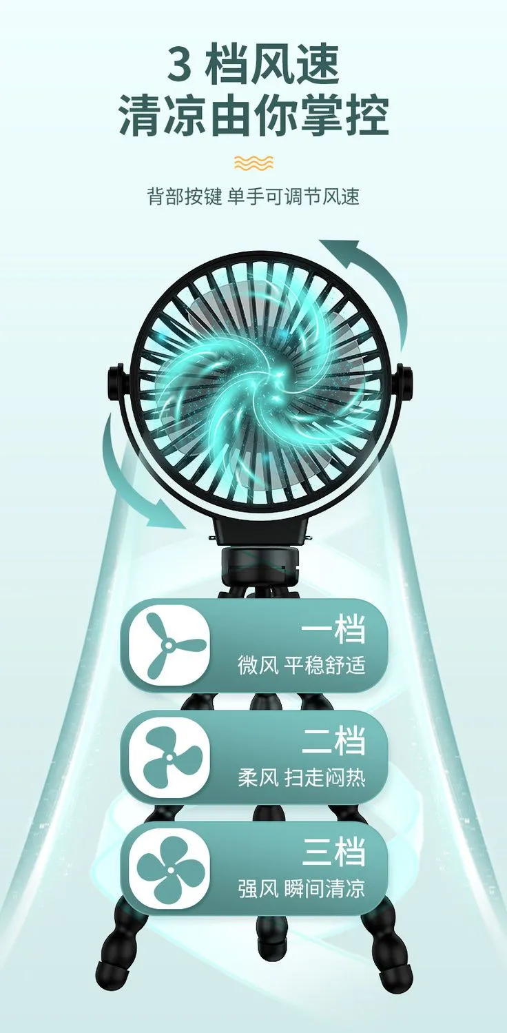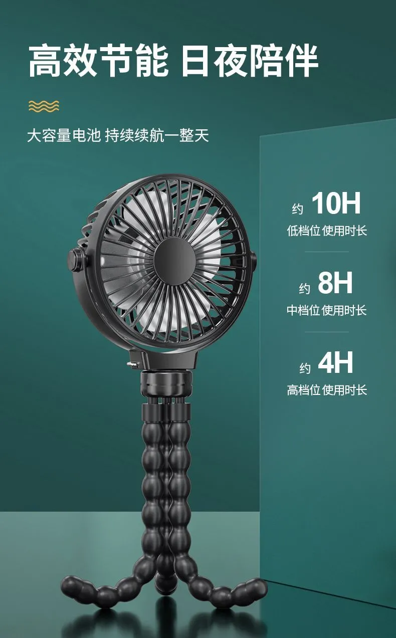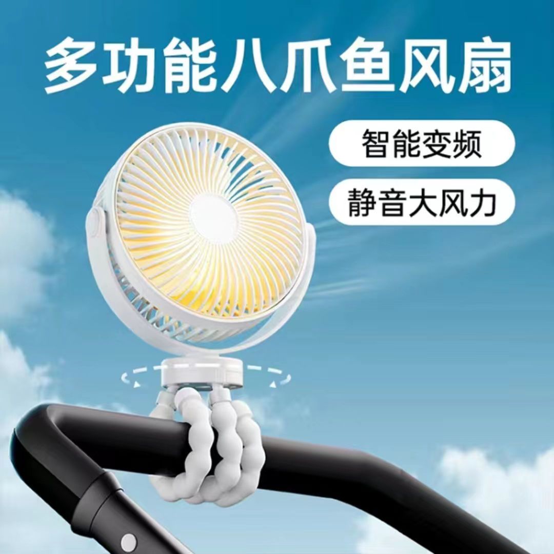 婴儿车悬挂USB充电夹子风扇桌面长续航八爪鱼静音儿童宝宝风扇