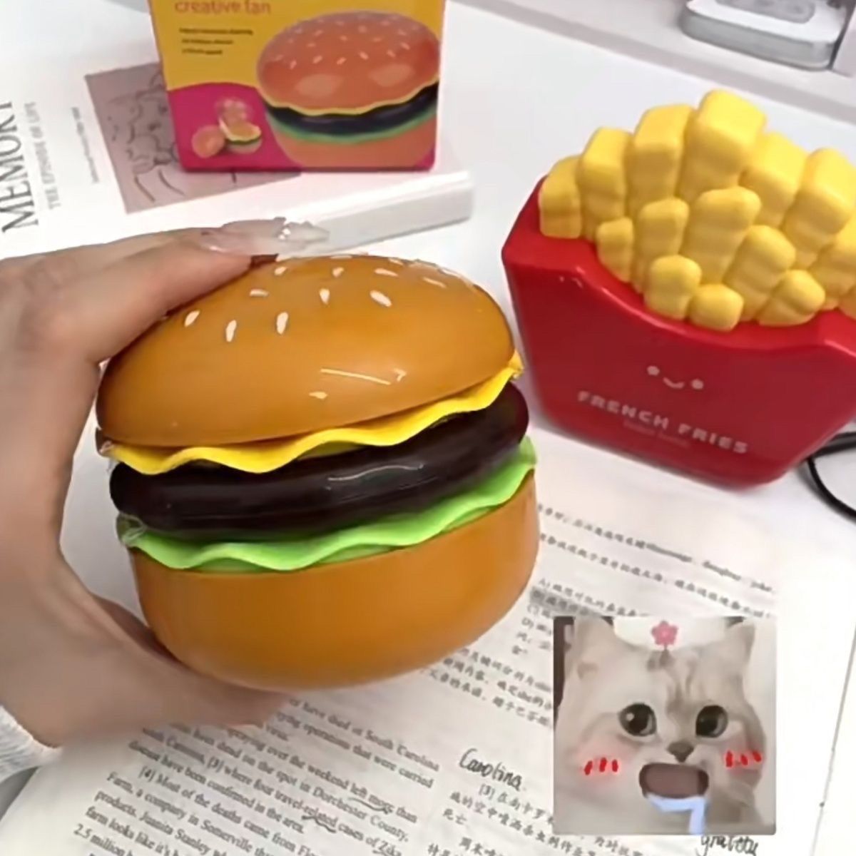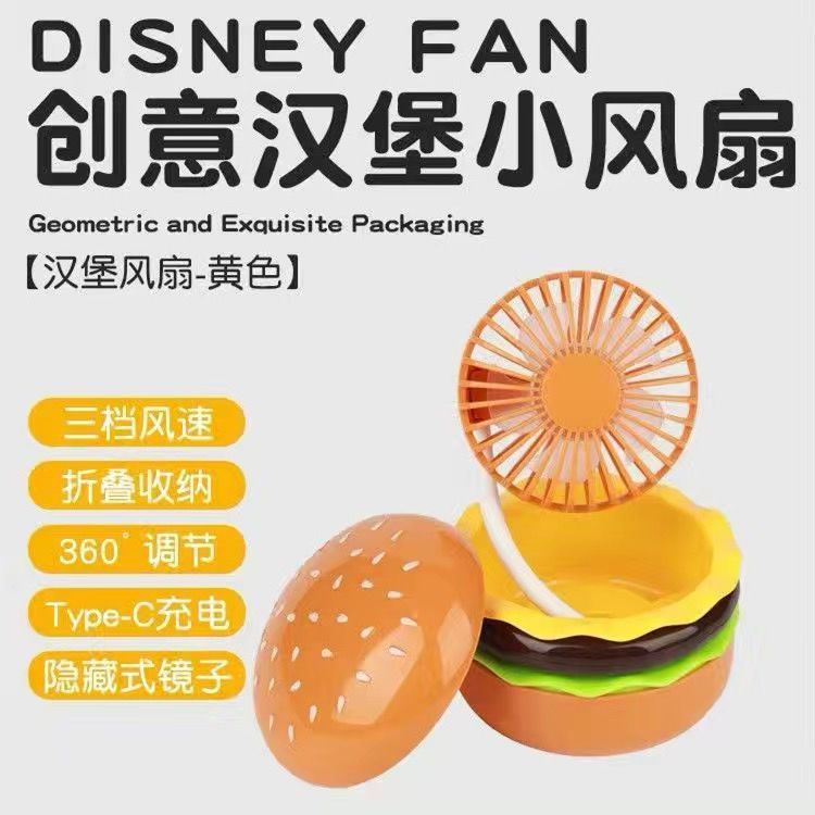 汉堡多功能手持风扇办公桌面便携学生宿舍usb充电小风扇静音送礼