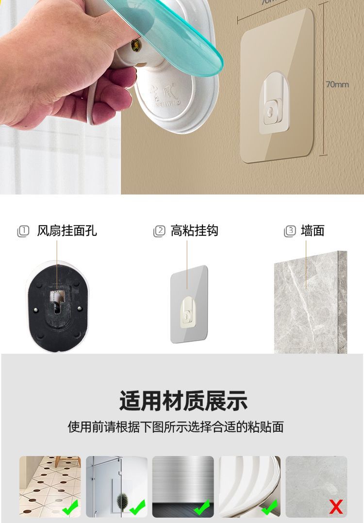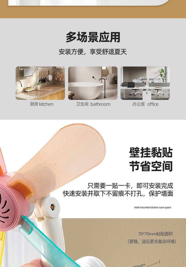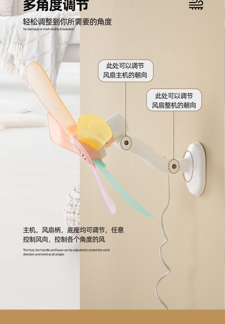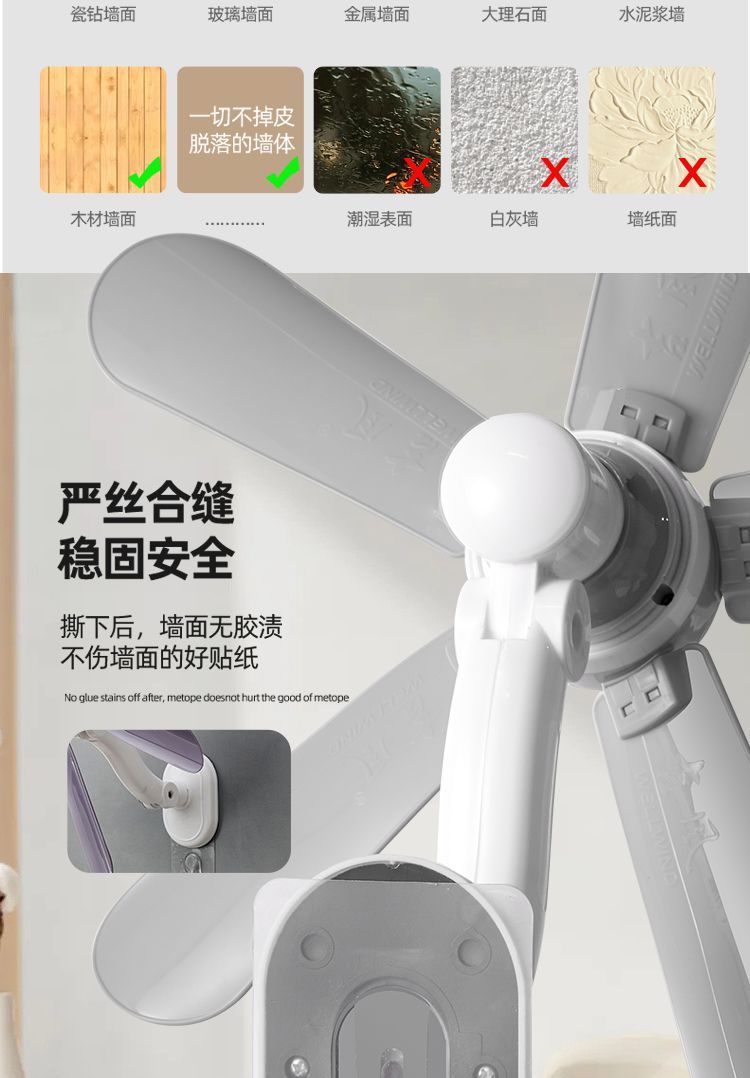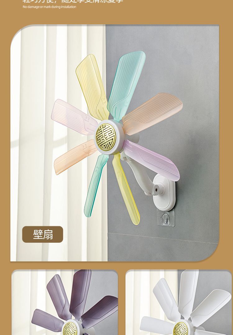 风扇壁挂挂壁迷你家用学生宿舍床头厨房卫生间免打孔免安装小风扇