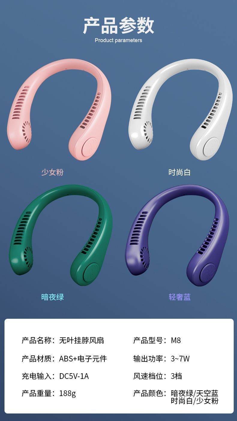 新款风扇高颜值懒人挂脖制冷风扇无叶静音usb充电风扇挂脖子风扇