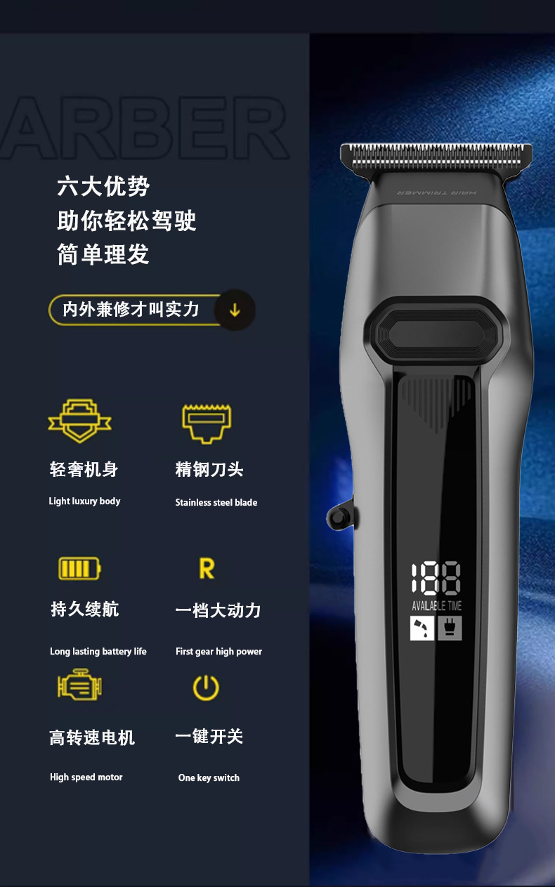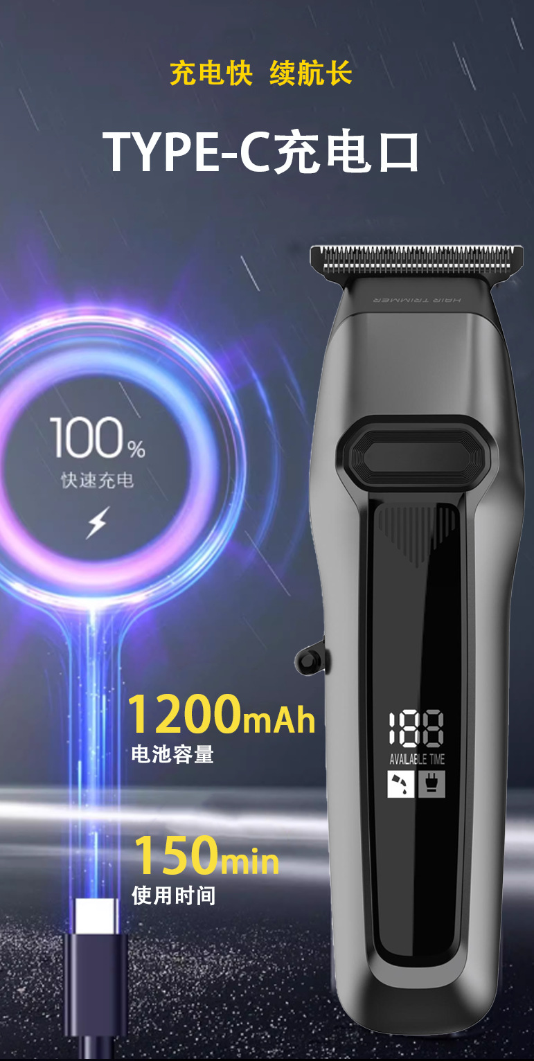 跨境电动理发器液晶数显电推子发廊理发店推荐油头光头神器type-c