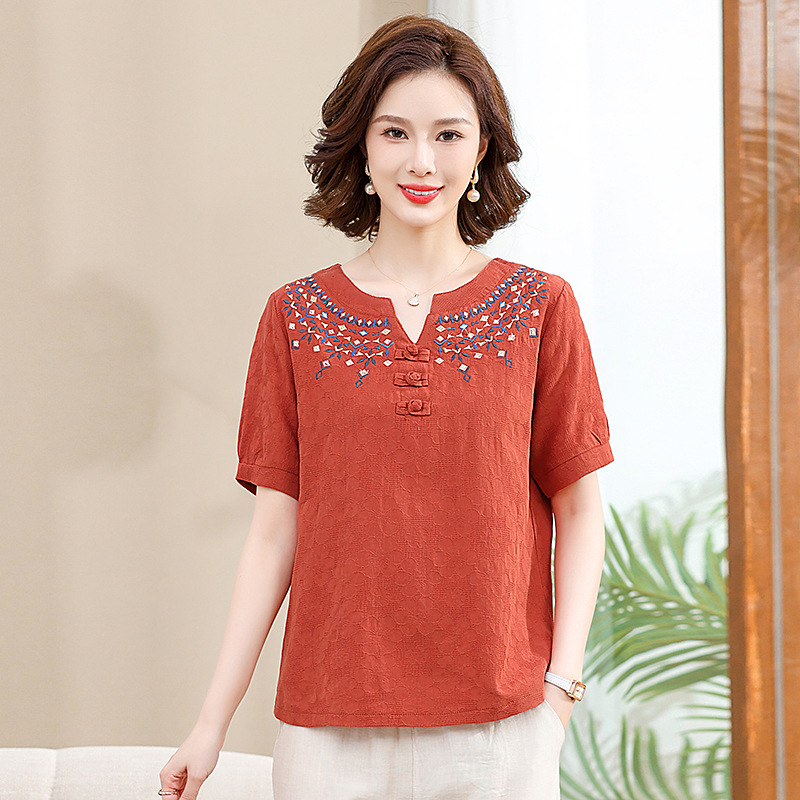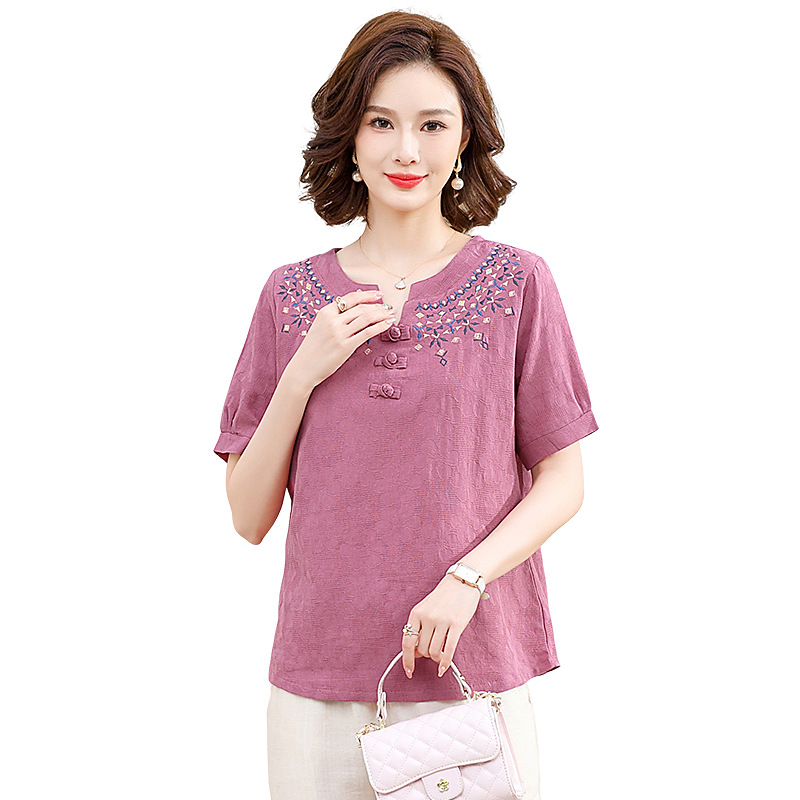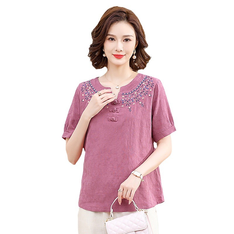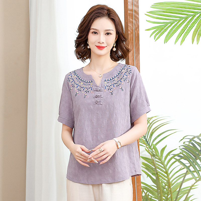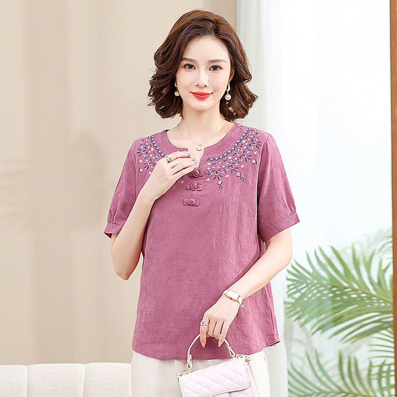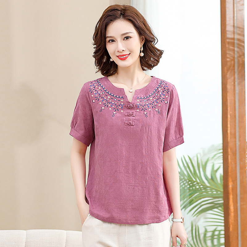 新款短袖中老年夏天棉布妈妈休闲套装女士夏季加大码两件套妈妈装