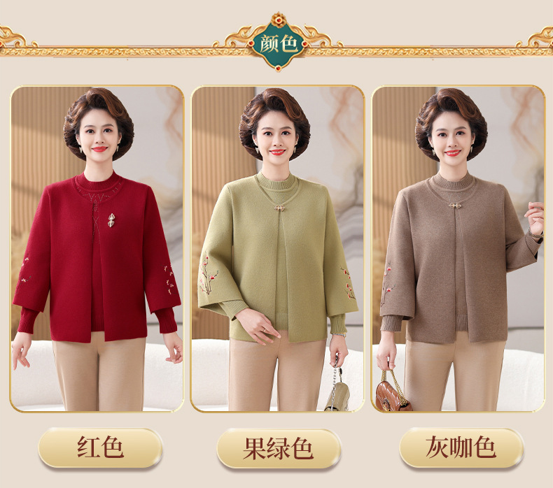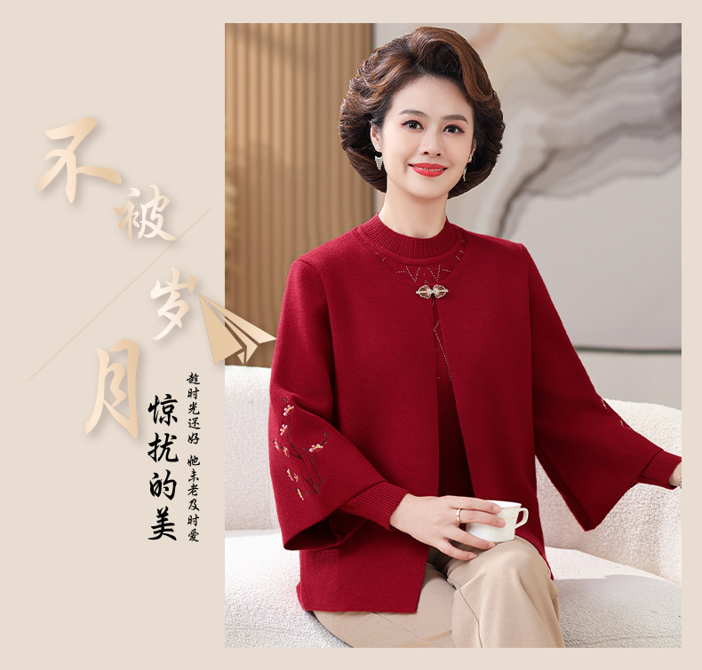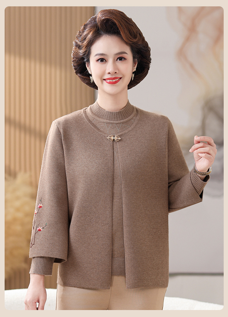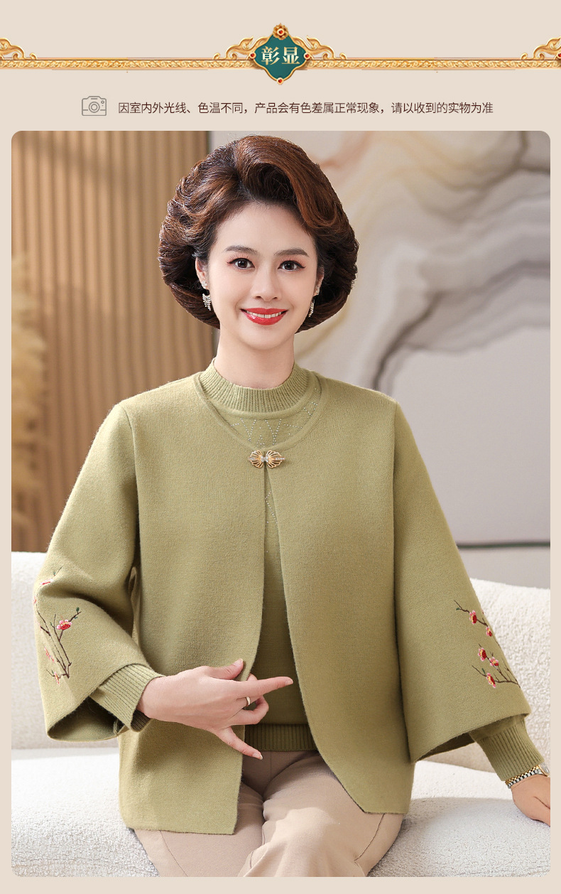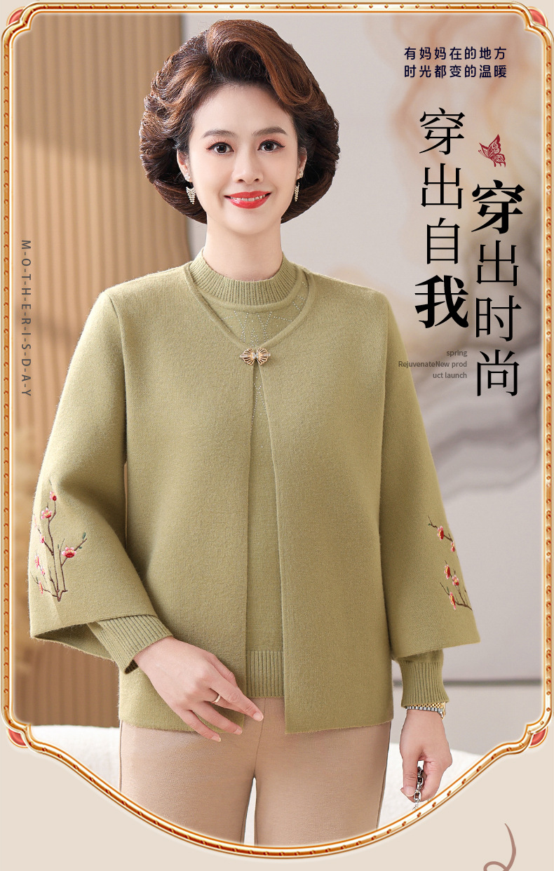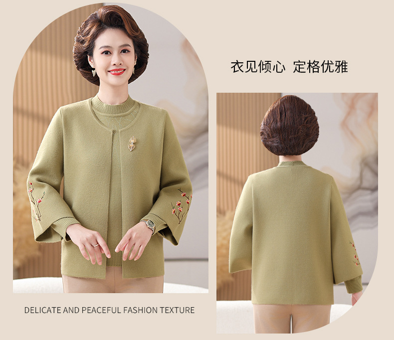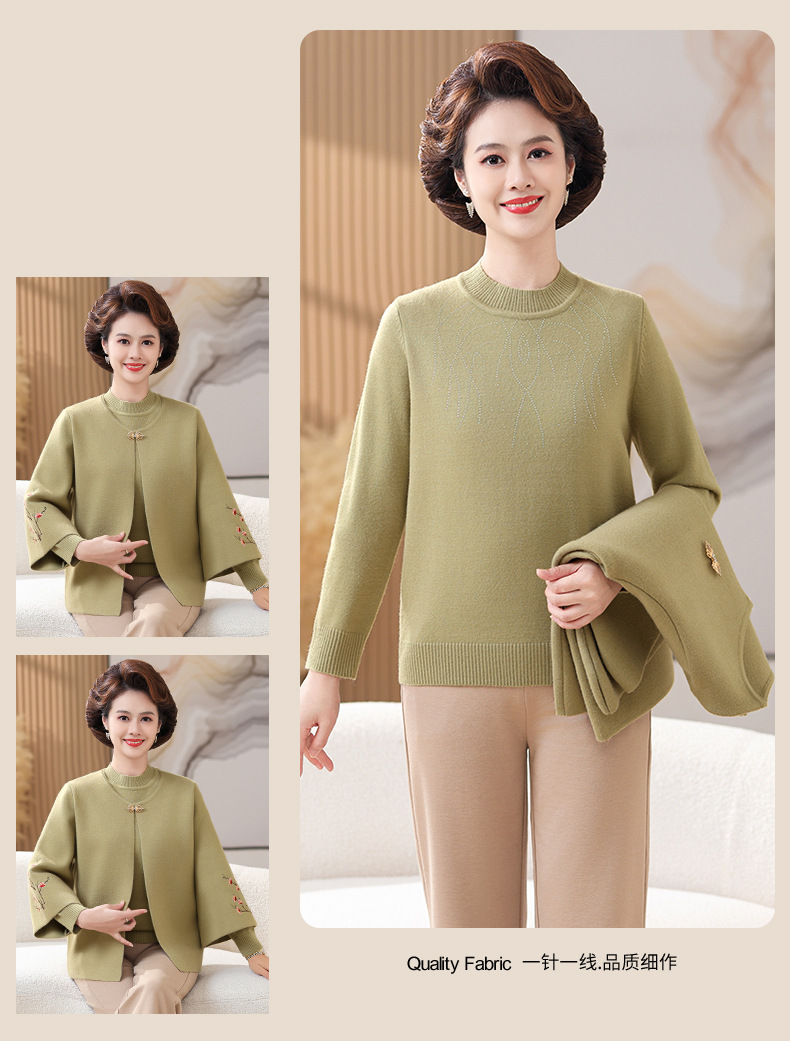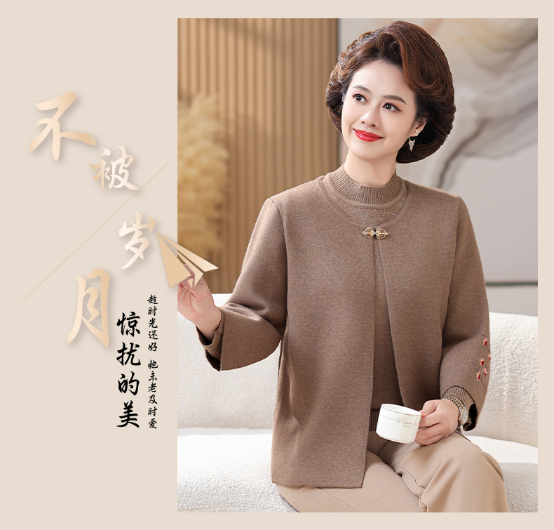 妈妈春秋装洋气时尚毛衣外套新款洋气百塔两件套中年显瘦修身开衫