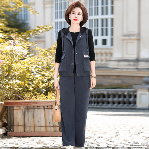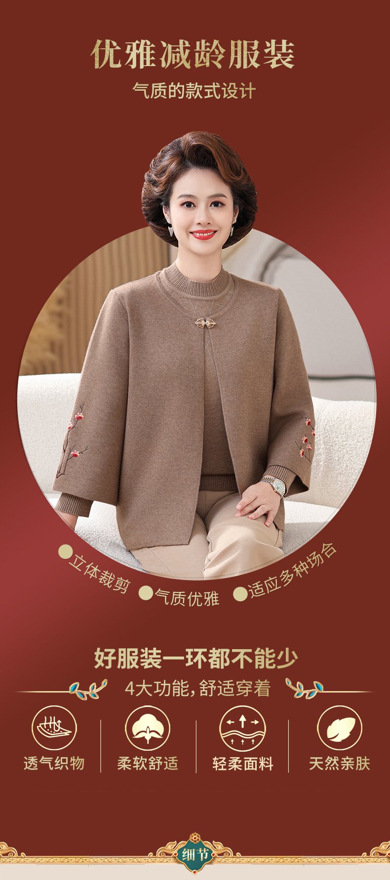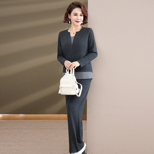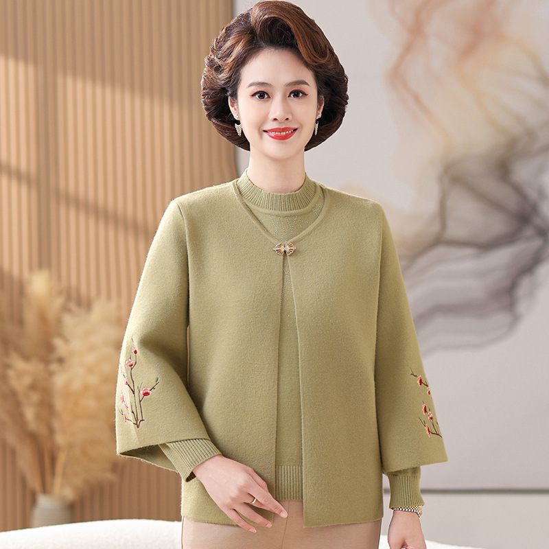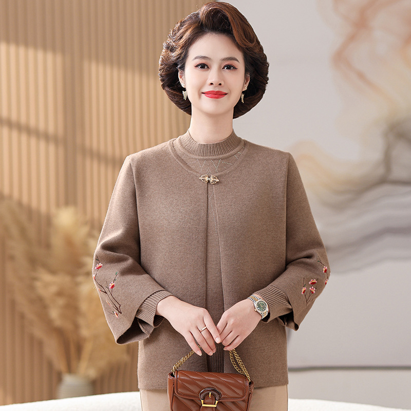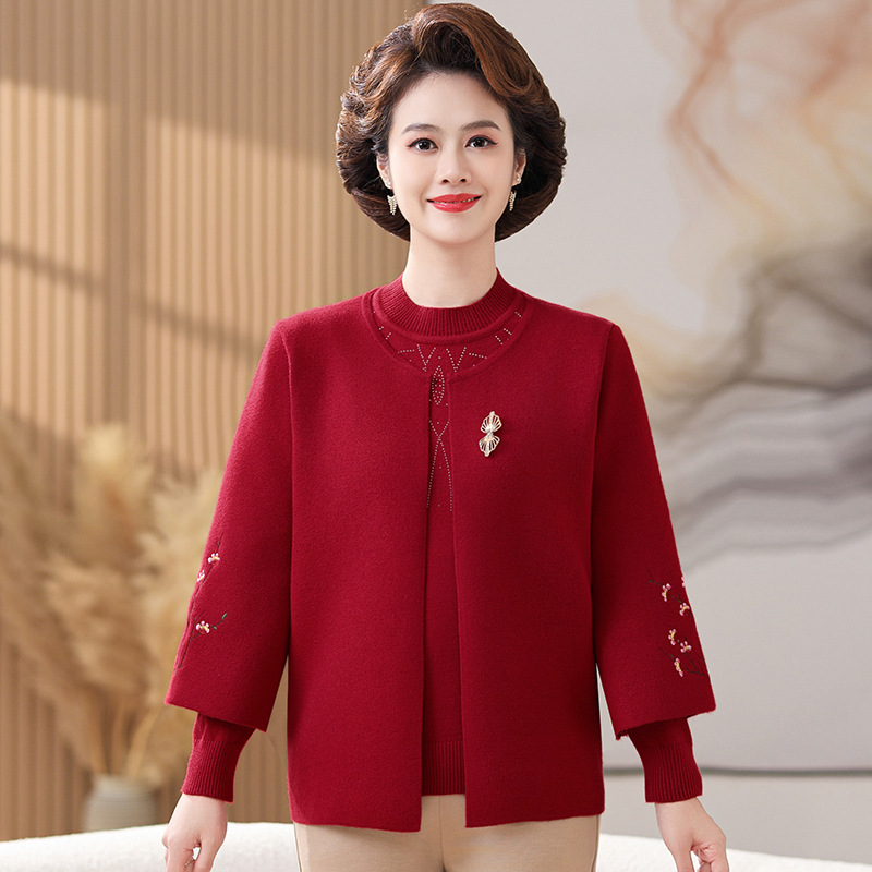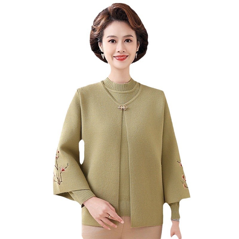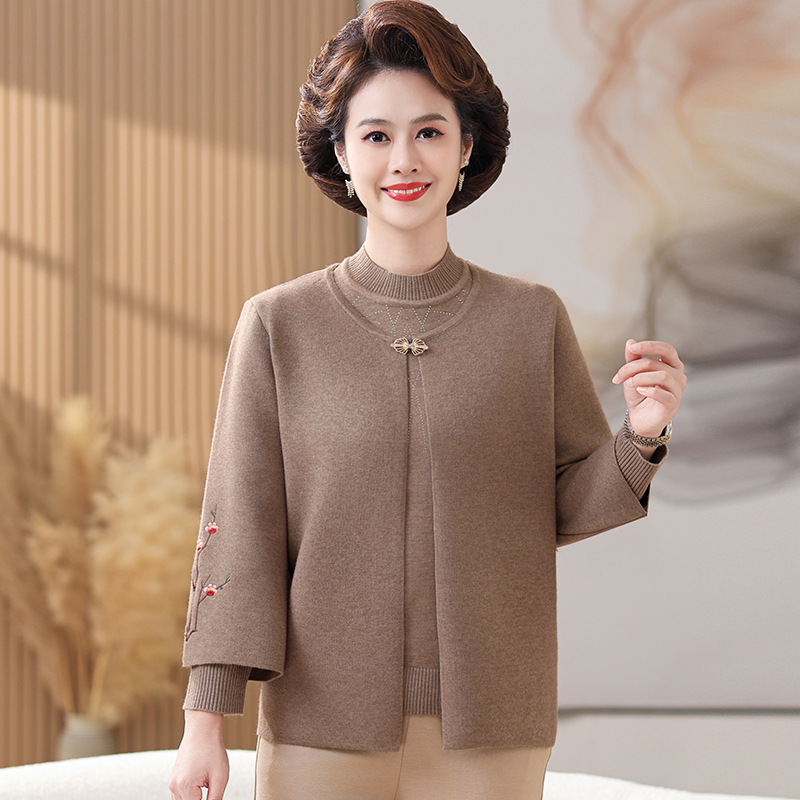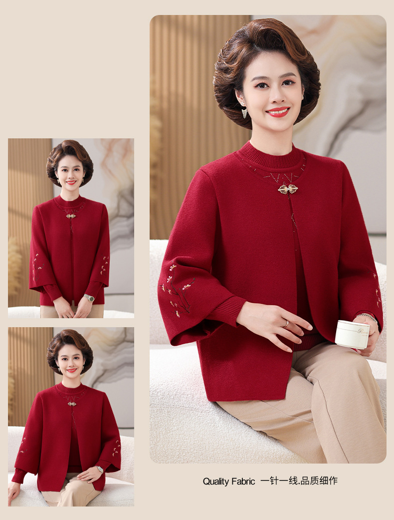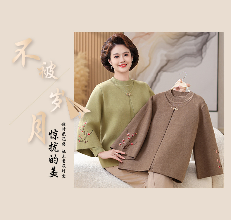 妈妈春秋装洋气时尚毛衣外套新款洋气百塔两件套中年显瘦修身开衫