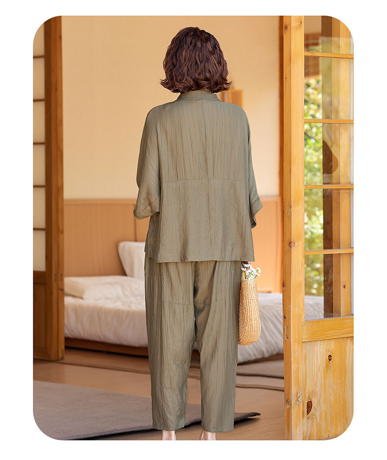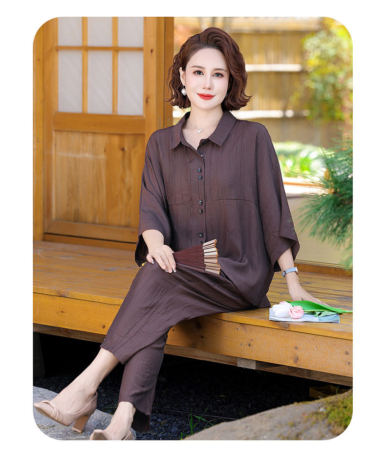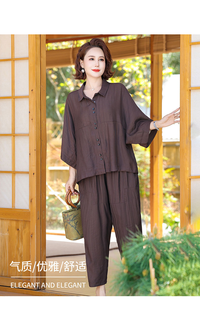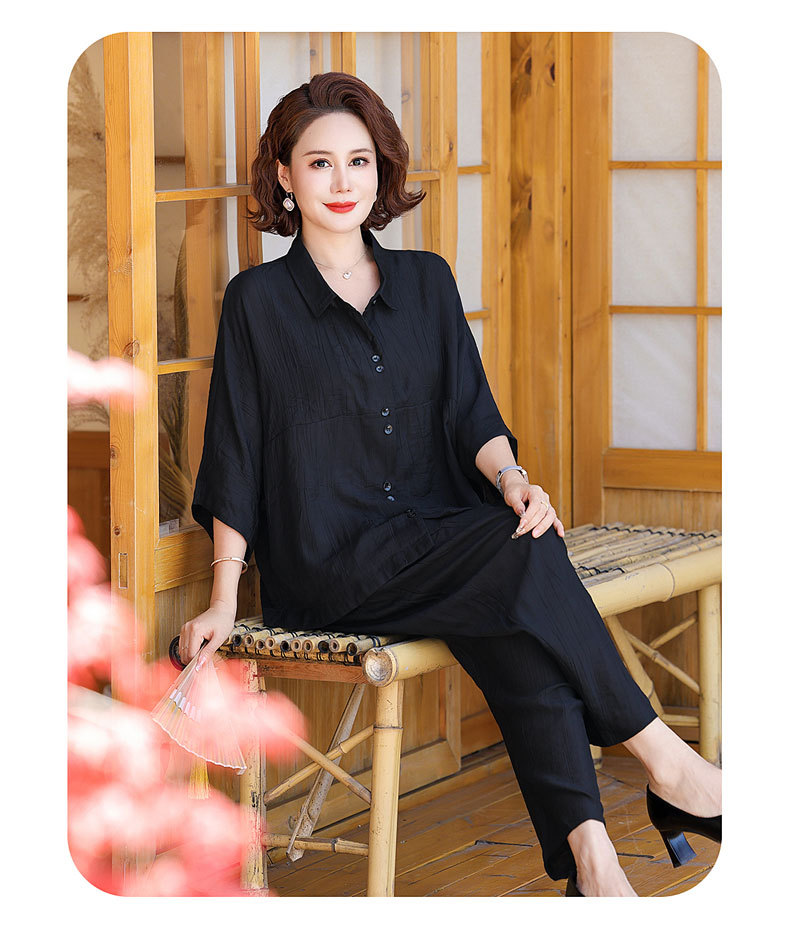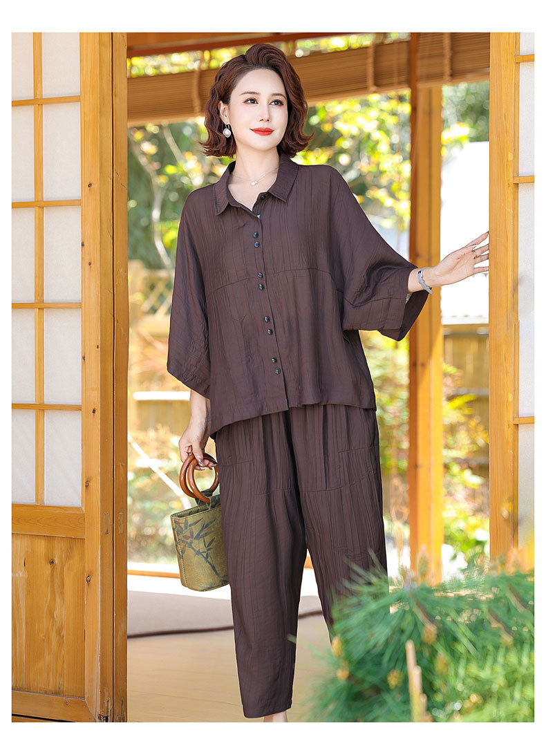 中老年女装九分裤子新款夏装宽松翻领衬衫气质大码妈妈装两件套装