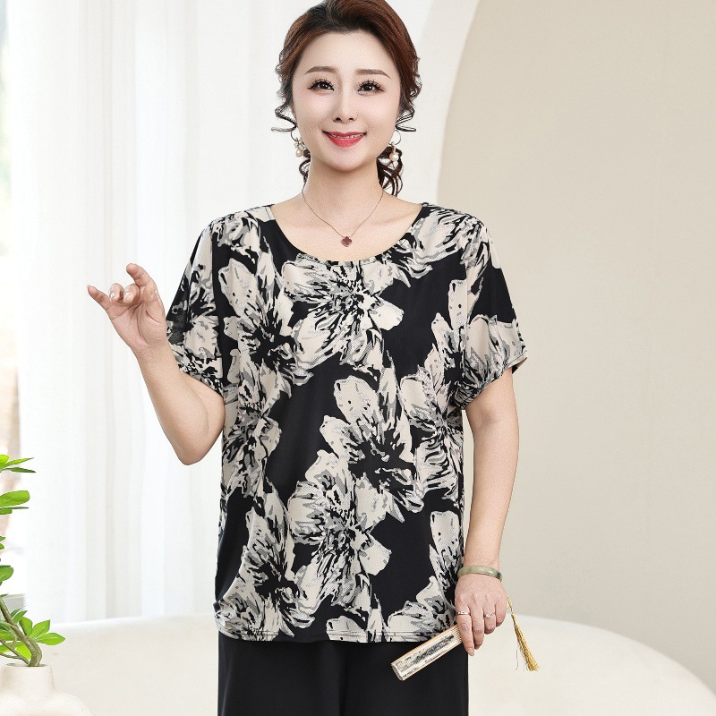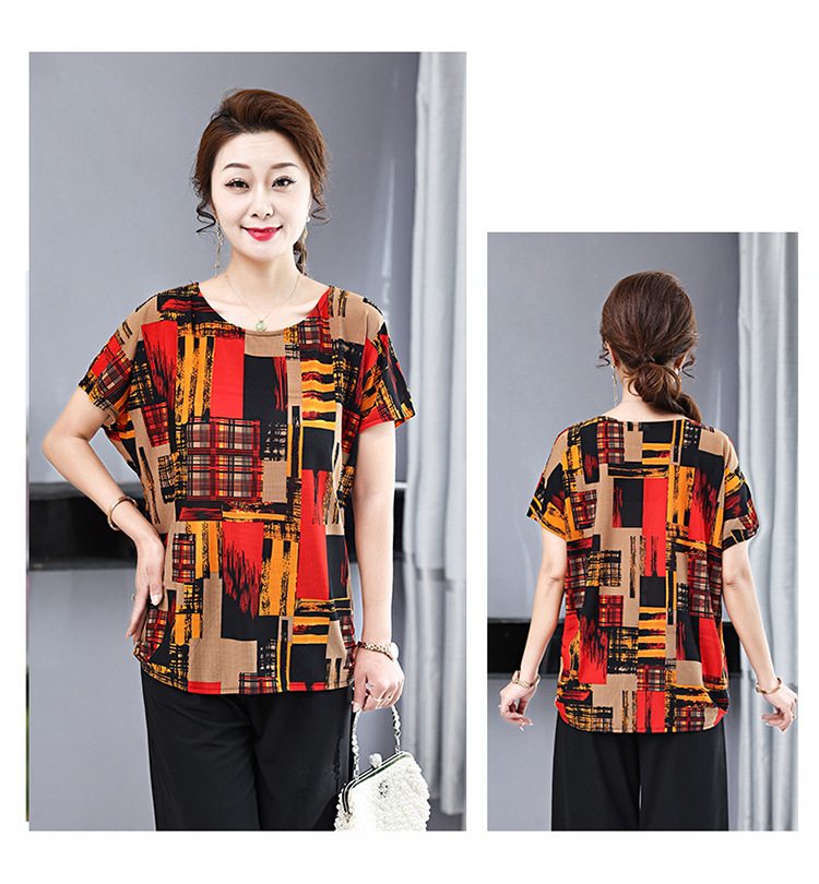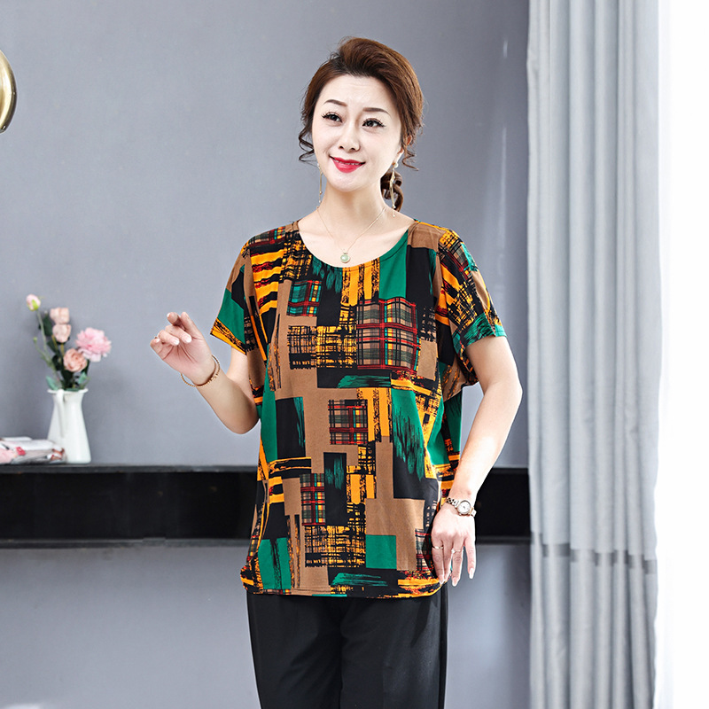 中老年夏装加大码宽松短袖批发 妈妈薄款T恤衫摆地摊衣服老人夏季