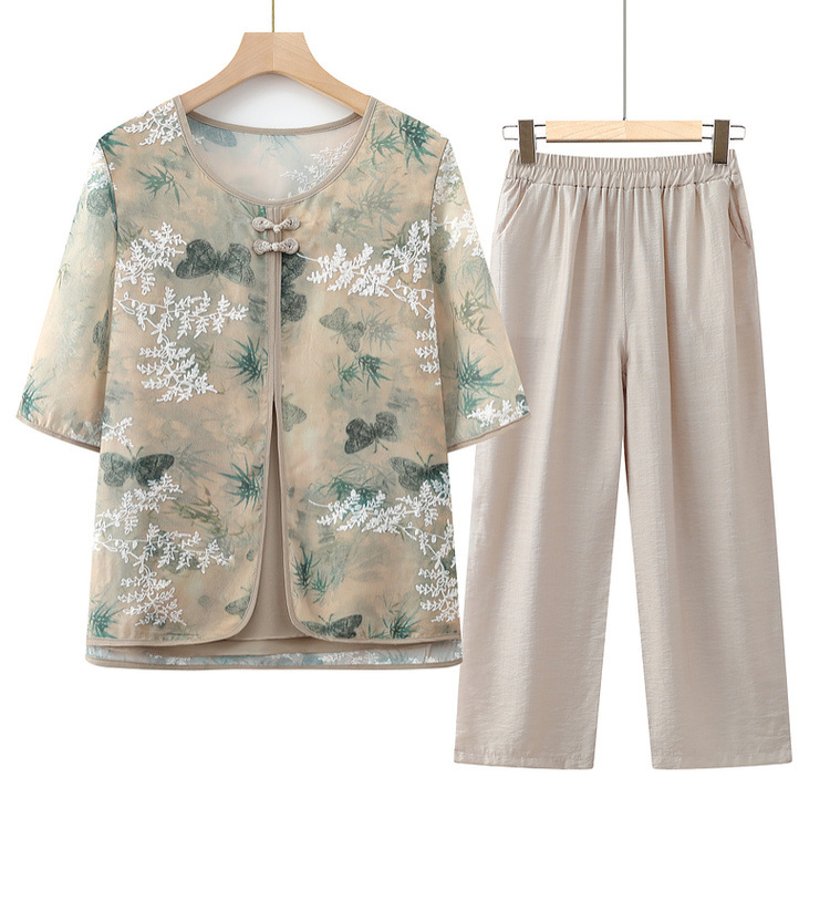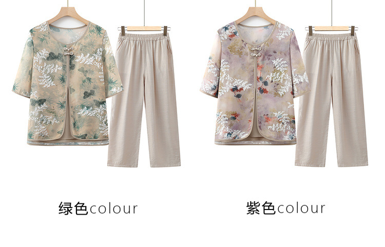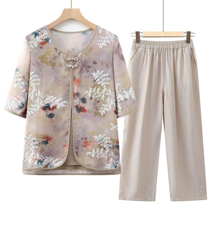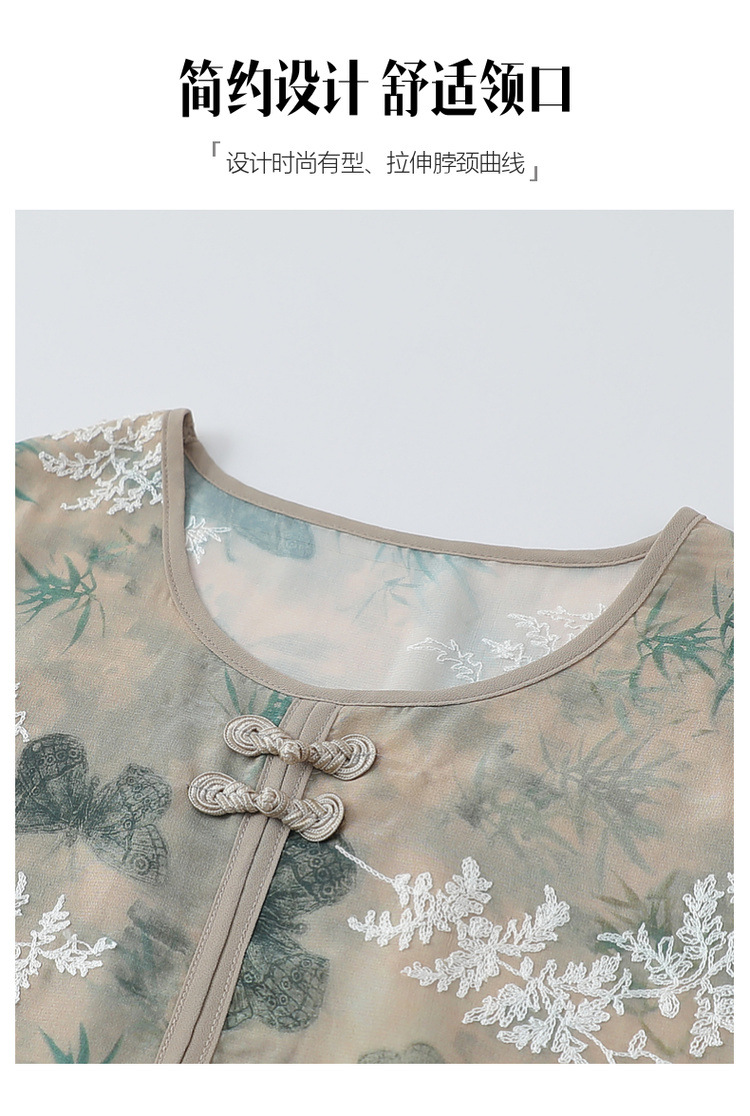 奶奶2024新款假两件衬衫中老年春装国风印花上衣女妈妈春夏季小衫