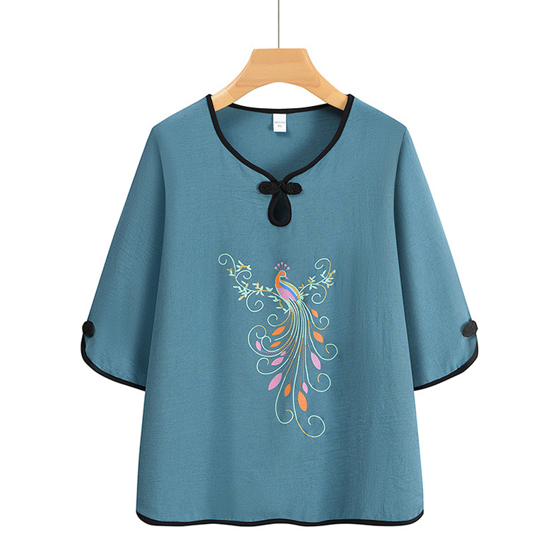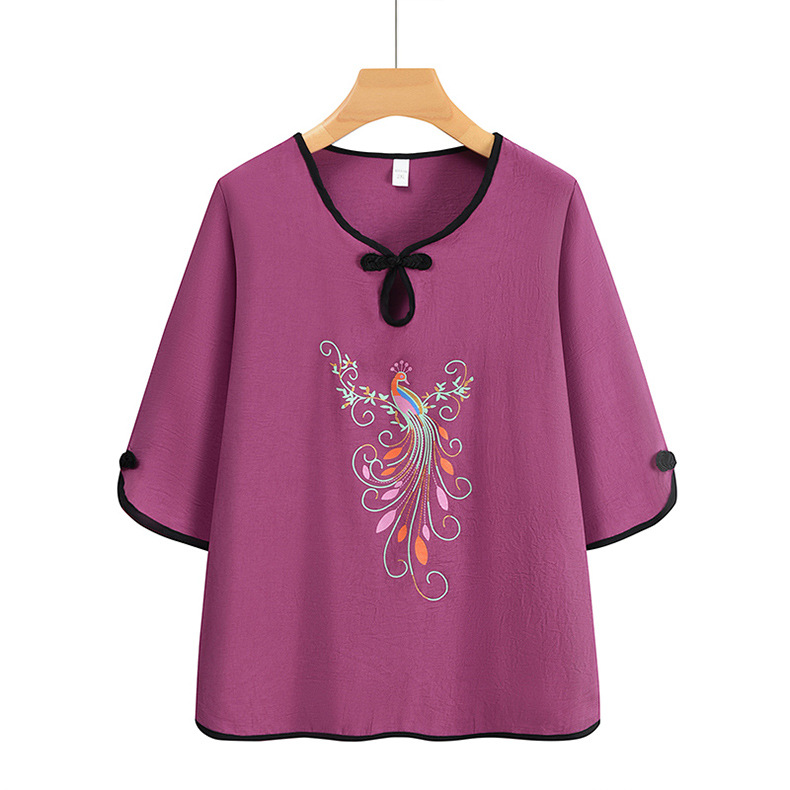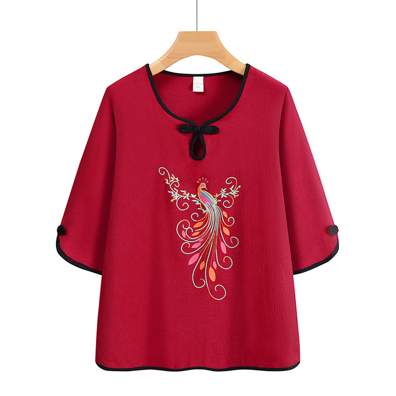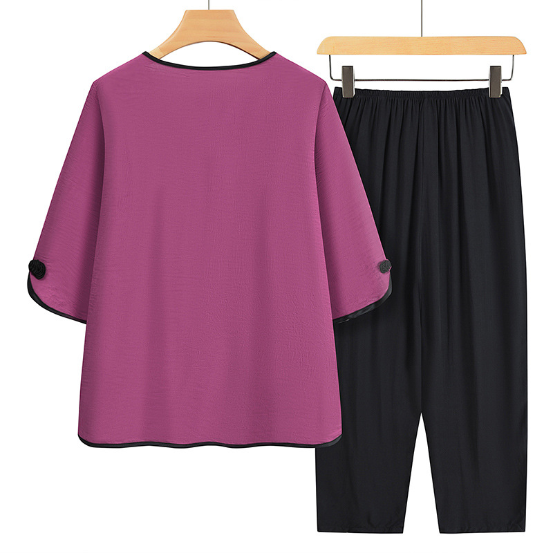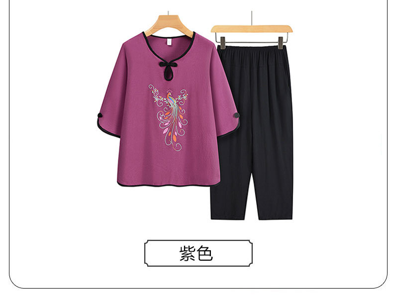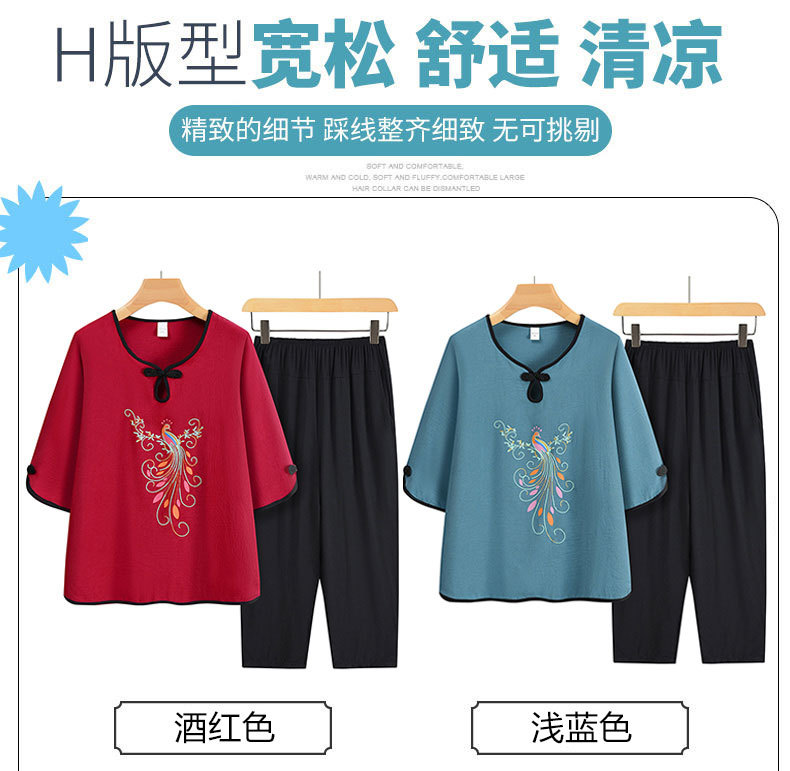 夏装中老年人女奶奶宽松套装妈妈印花t恤老太太上衣服两件套定制