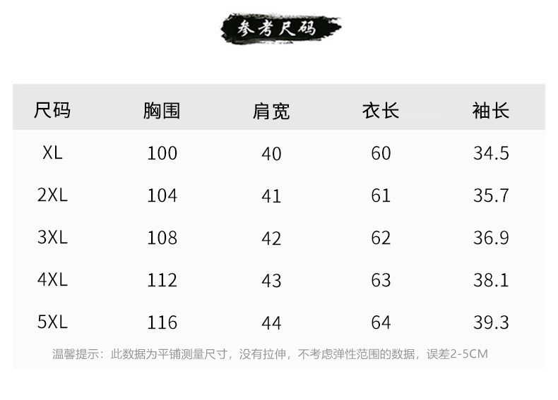 | 5xl (82.50 kg-92.50 kg(5XL(165-185斤)) | USD $3.34 | 99992 set available |